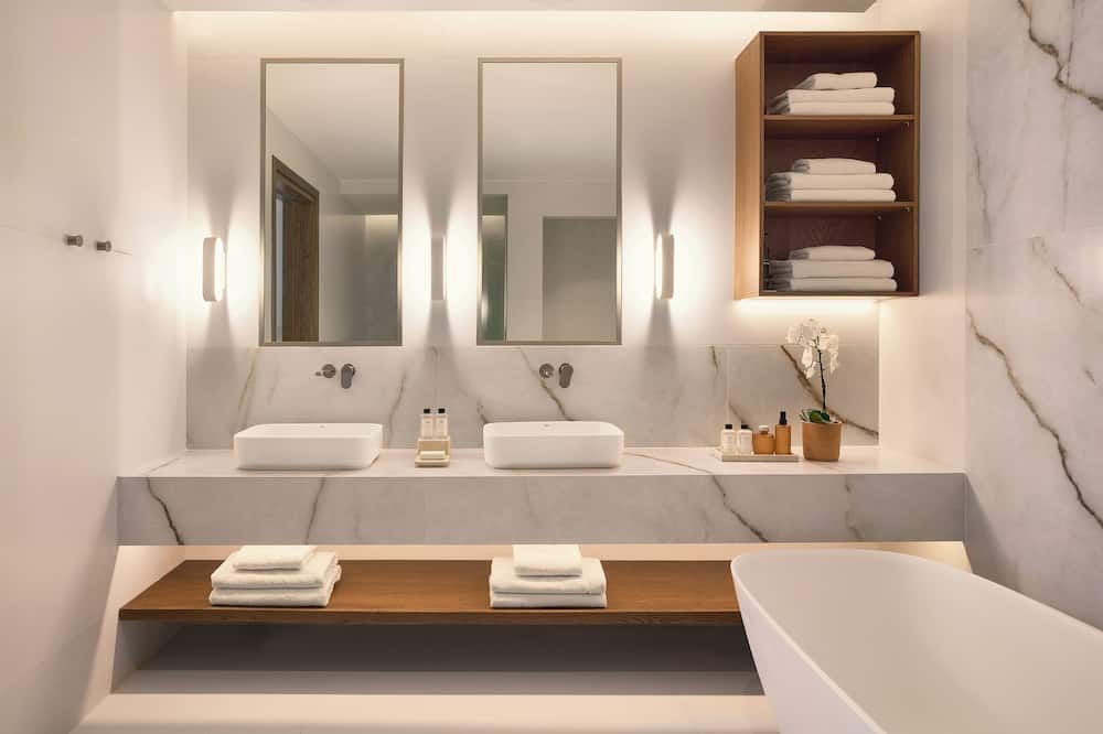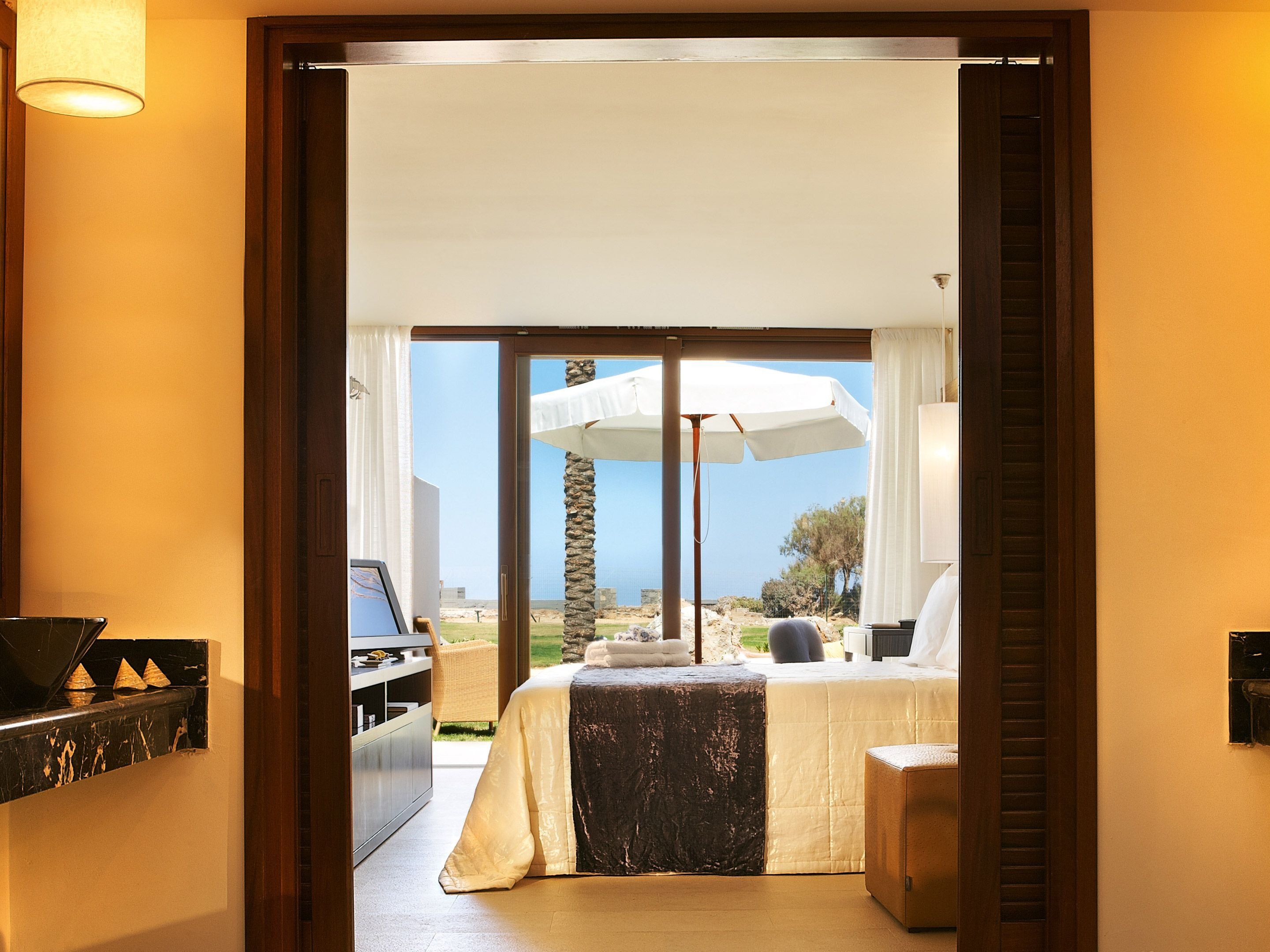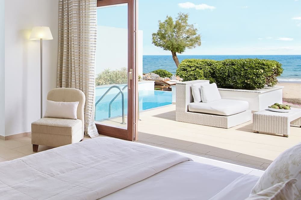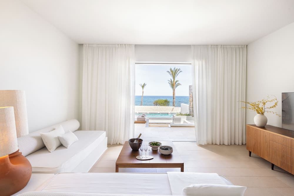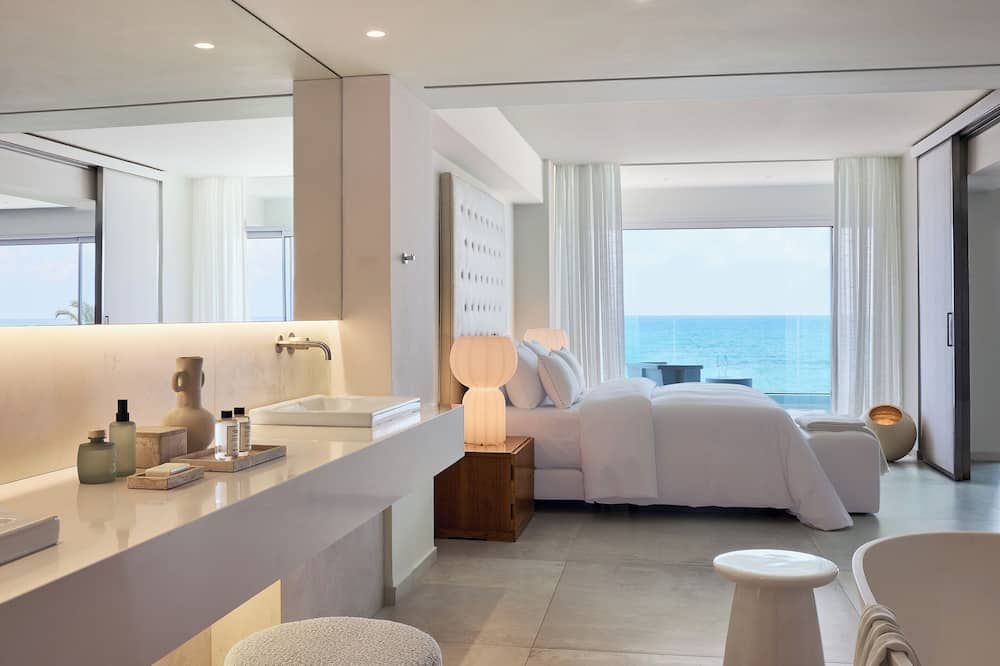 The rooms, suites, villas and bungalows of Grecotel Amirandes are fitted with floor-to-ceiling windows, soft colours and designer furniture. Each is equipped with air conditioning, safe, flat-screen TV and mini bar. The en-suite bathrooms come with a bathtub, free toiletries, slippers and bathrobes. Some units offer private pools.