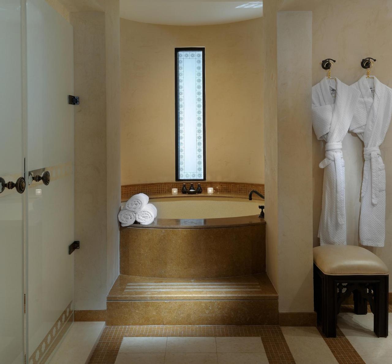 After a day of desert exploration, the outdoor pool surrounded with lounge chairs and palm trees provides a refreshing activity. Alternatively, guests can enjoy a relaxing massage at the Anantara Spa or try the authentic hammam.