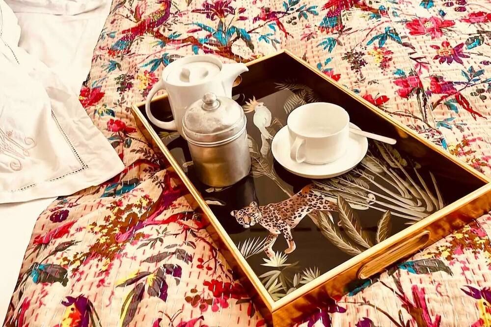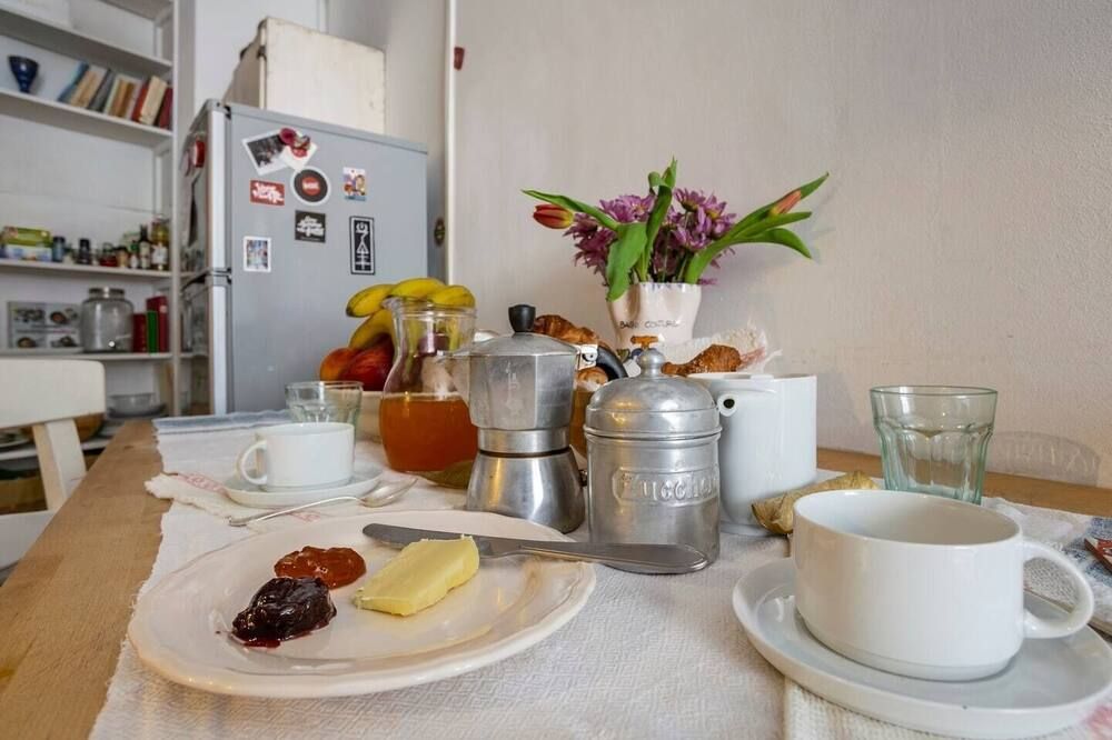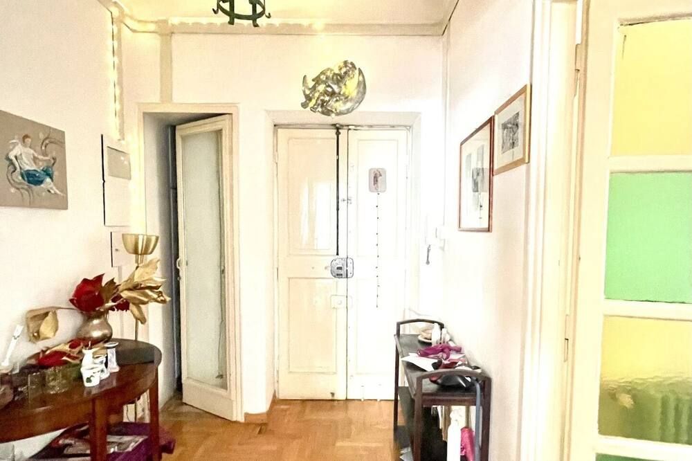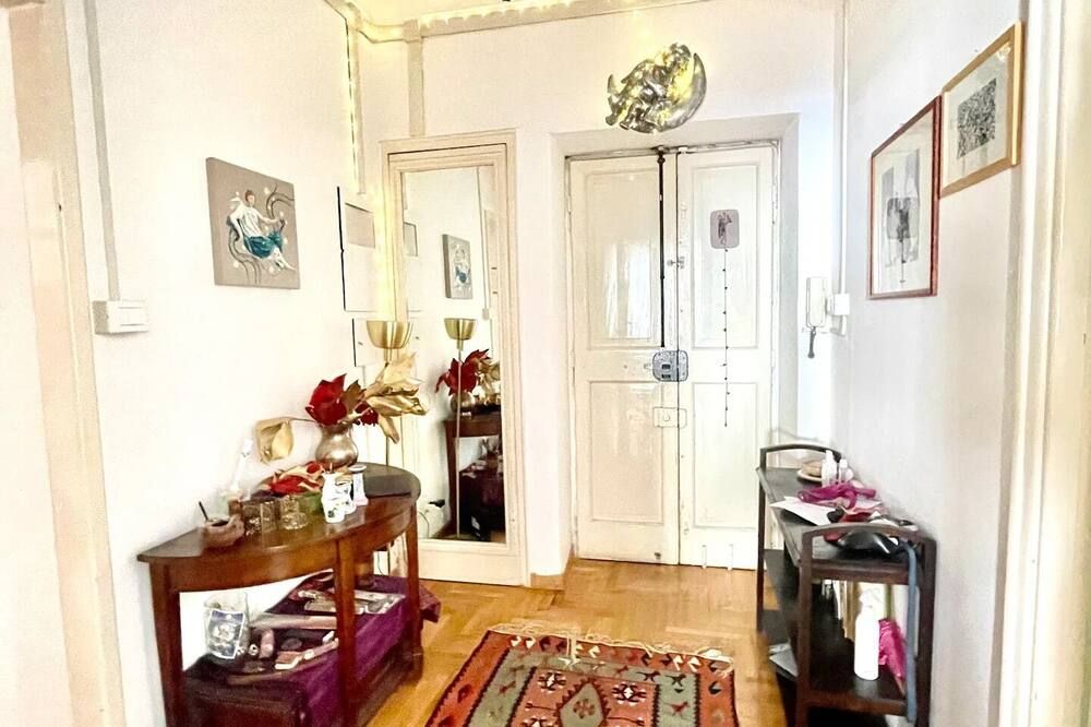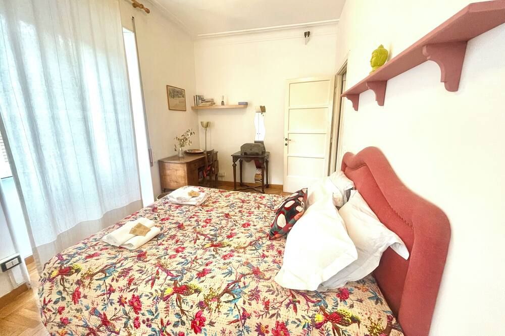 This beautiful home is the epitome of everything Roman. Stylish and sophisticated, it's been designed to represent what this city is all about. A mix of period features and a sleek, modern finish (particularly in the kitchen and bathrooms) have made for an upscale stay that’s brought to life with personal touches. The living space is comfortable and inviting, with an artificial fireplace that illuminates the space and a huge TV inset into the wall, a tall window and a wall painting at the dining end – making for the perfect spot to enjoy a few glasses of red together. Bedrooms are smart and bright, and the murals add character and recall the city’s many frescoes. Vatican City, Castel Sant’Angelo and Piazza del Popolo are all just a fifteen-minute walk away, while the Pantheon, Trevi Fountain and Campo di Fiori are just twenty-five minutes on foot. Plus, the immediate neighbourhood is known for its great shopping and its numerous cafes and bars.
