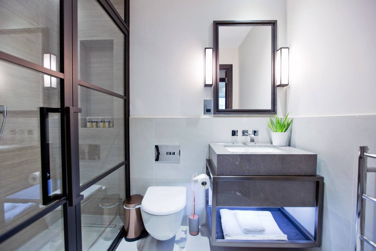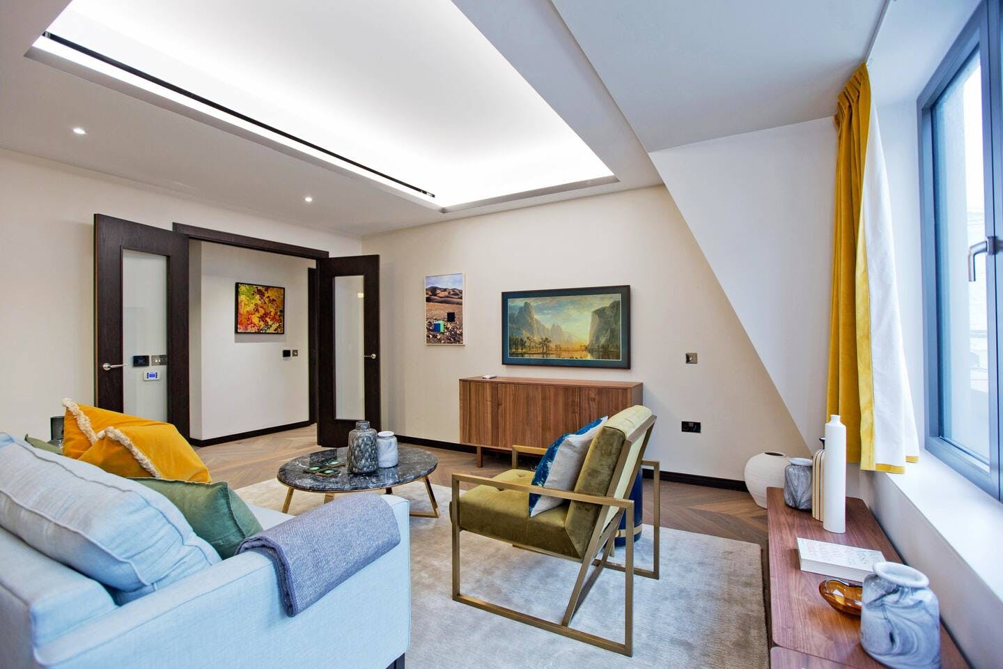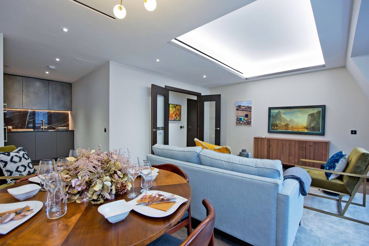 Featuring bespoke interior design from world-renowned design house, March and White, this stylish London home is ideal for a stay near fashionable Mayfair. Set against a neutral backdrop, brightly coloured furnishings pop out to greet you. Eye-catching pieces of art are showcased around the home, but be careful not to mistake the smart television in the living area for one. Not only can you expect the latest tech and high design, but a 24-hour concierge is on hand to cater to your every need.
