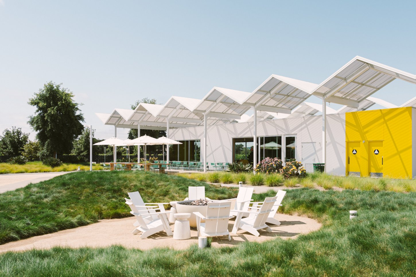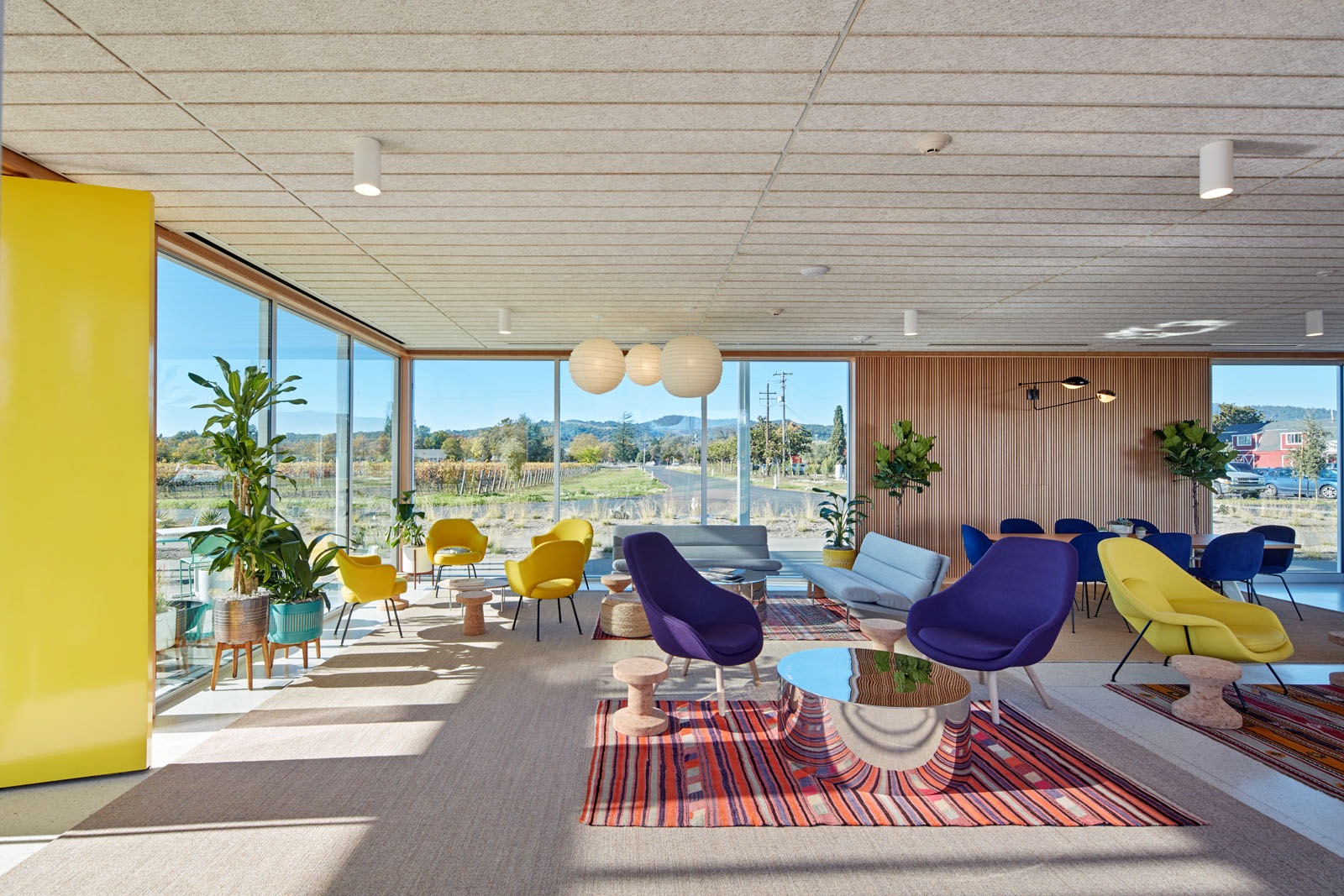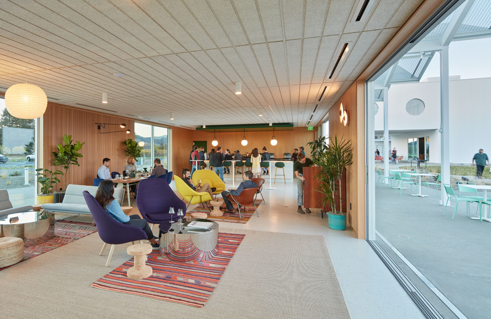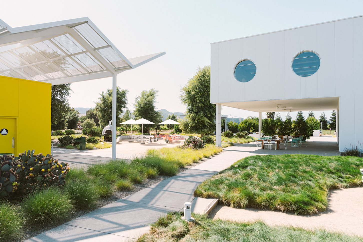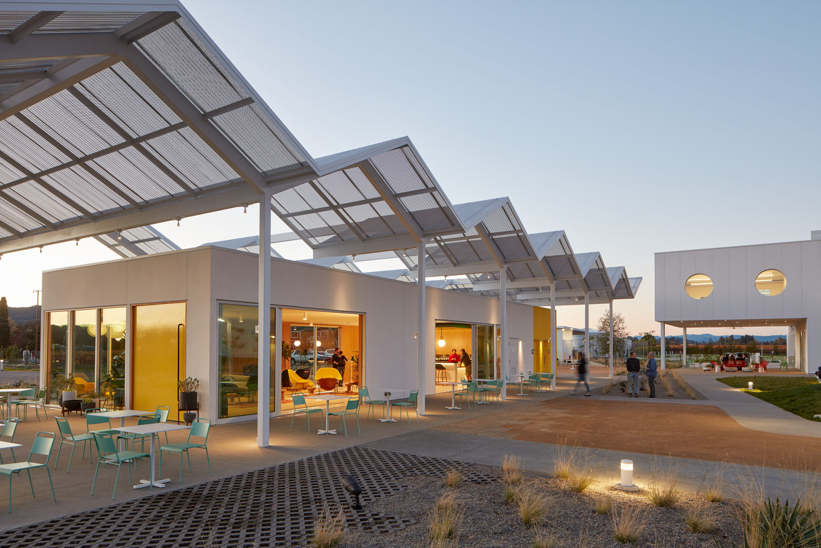 Located at the gateway of Napa Valley along its main artery, Highway 29, Ashes & Diamonds Winery’s mid-century approach extends to its architecture. As an homage, the iconic zig-zag roof and portholes are a few of the iconic references to the heritage of California mid-century modern design, seamlessly integrated with a state-of-the-art wine production facility surrounded by light, airy landscapes and playful, rolling berms.