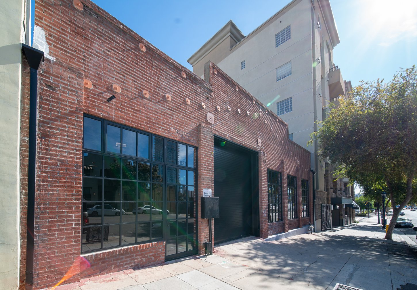 A newly restored historic brick warehouse building in downtown San Diego’s East Village District.