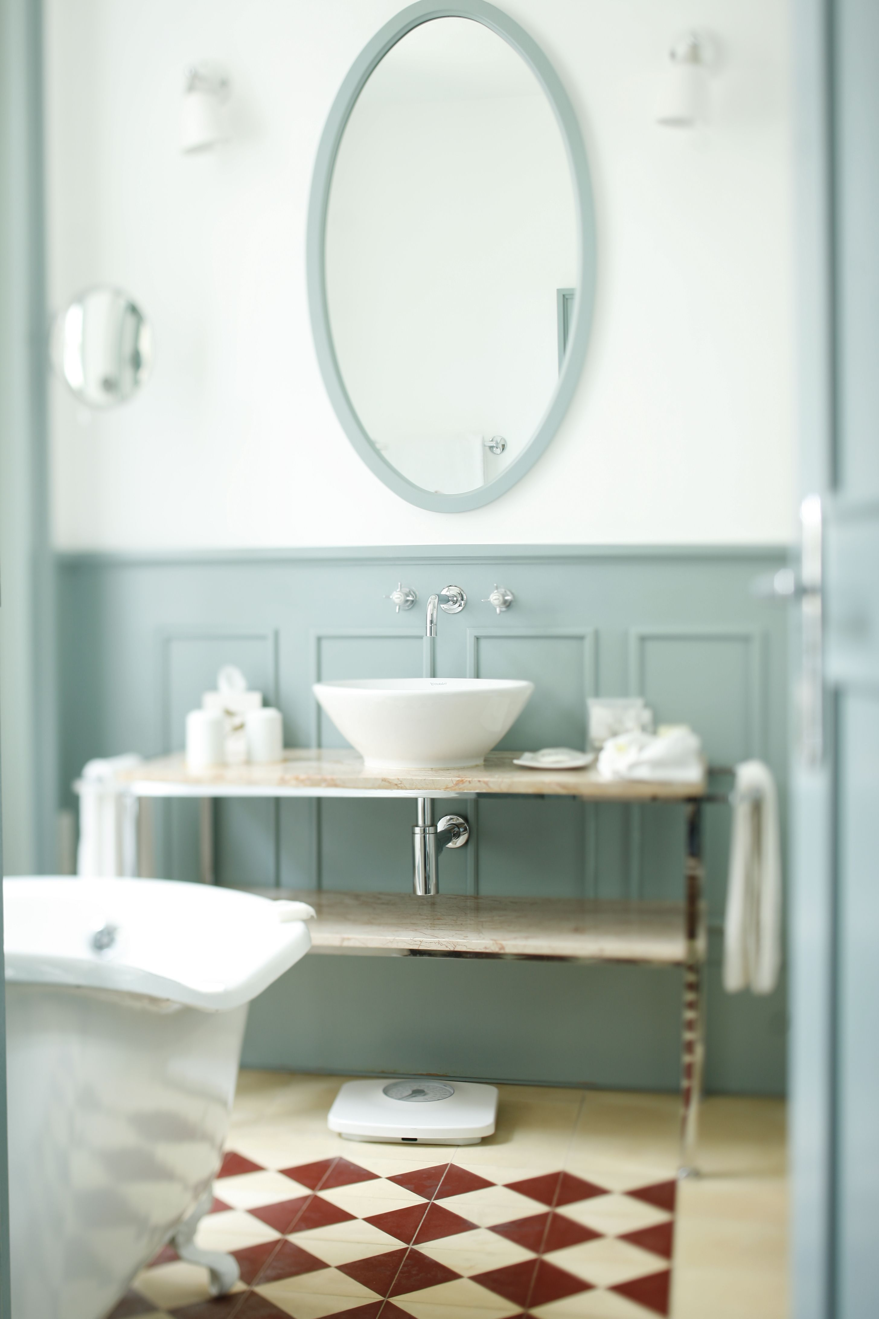 All bathrooms have an old roll-top bath where you can take a bath and invigorating time consuming and a separate shower area. All with windows facing the street.