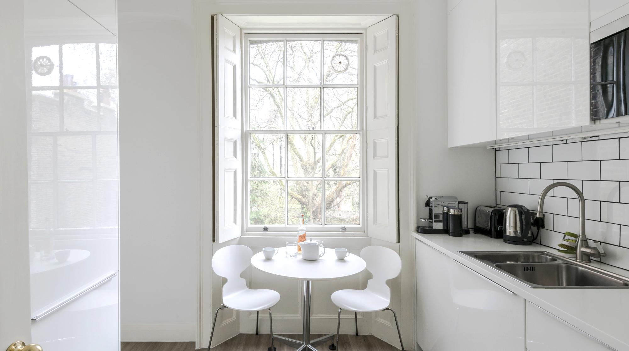 A home that packs a big punch of character with its distinct style. Often homes with old-world charm can feel heavy and cluttered but the space manages to maintain a freshness with the help of contemporary touches such as the Japanese wardrobes in the master bedroom. Amid the impressive furnishings it feels the kitchen dining table was a little forgotten as it does not match the quality of the rest of the home, unfortunately. Apart from this, the home offers a unique space in a pleasant and convenient Islington location.