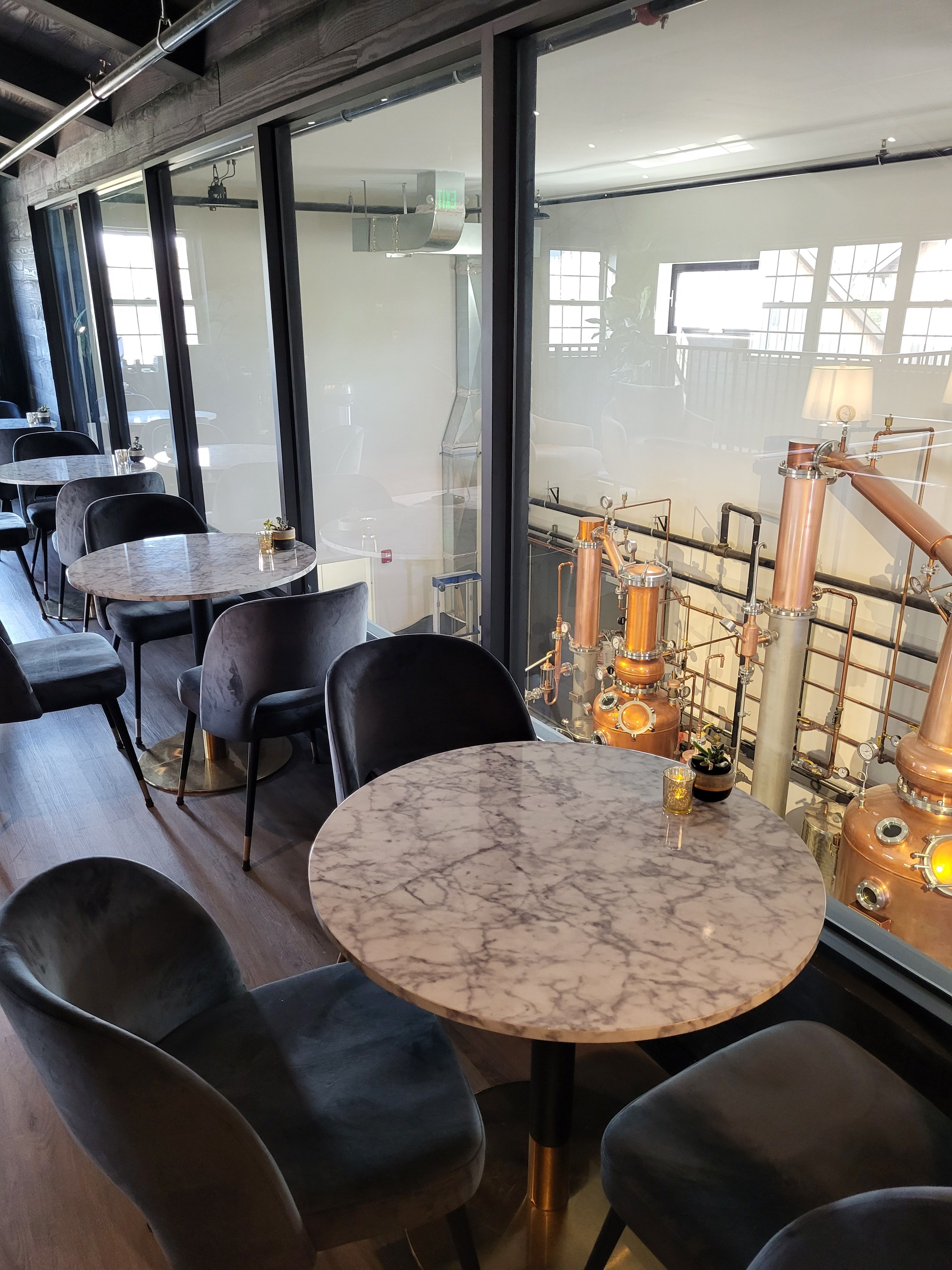 Join us for a tasting or cocktail made with our grain to glass spirits. We do not have a kitchen, but you can bring your own food or order in. Enjoy a drink outdoors on our sunny patio (weather dependent, must request in notes), watch the bartenders at work in our tasting room bar area, or relax in the upstairs cocktail lounge overlooking the distillery. Table assignements are made soley based on group size and availability. We are unable to accomodate small groups at larger tables due to our limited seating capacity. You may request specific seating in your booking but we cannot guarantee availability. We will not combine multiple reservations. No standing room. Groups of >10 MUST call/text 609-578-9874 to book. For first floor or ADA seating please write a note when making your reservation. The second floor is only accessible via stairs. Last call 30 minutes before close. Later reservations may have limited time. Dogs are not permitted indoors or on the patio.