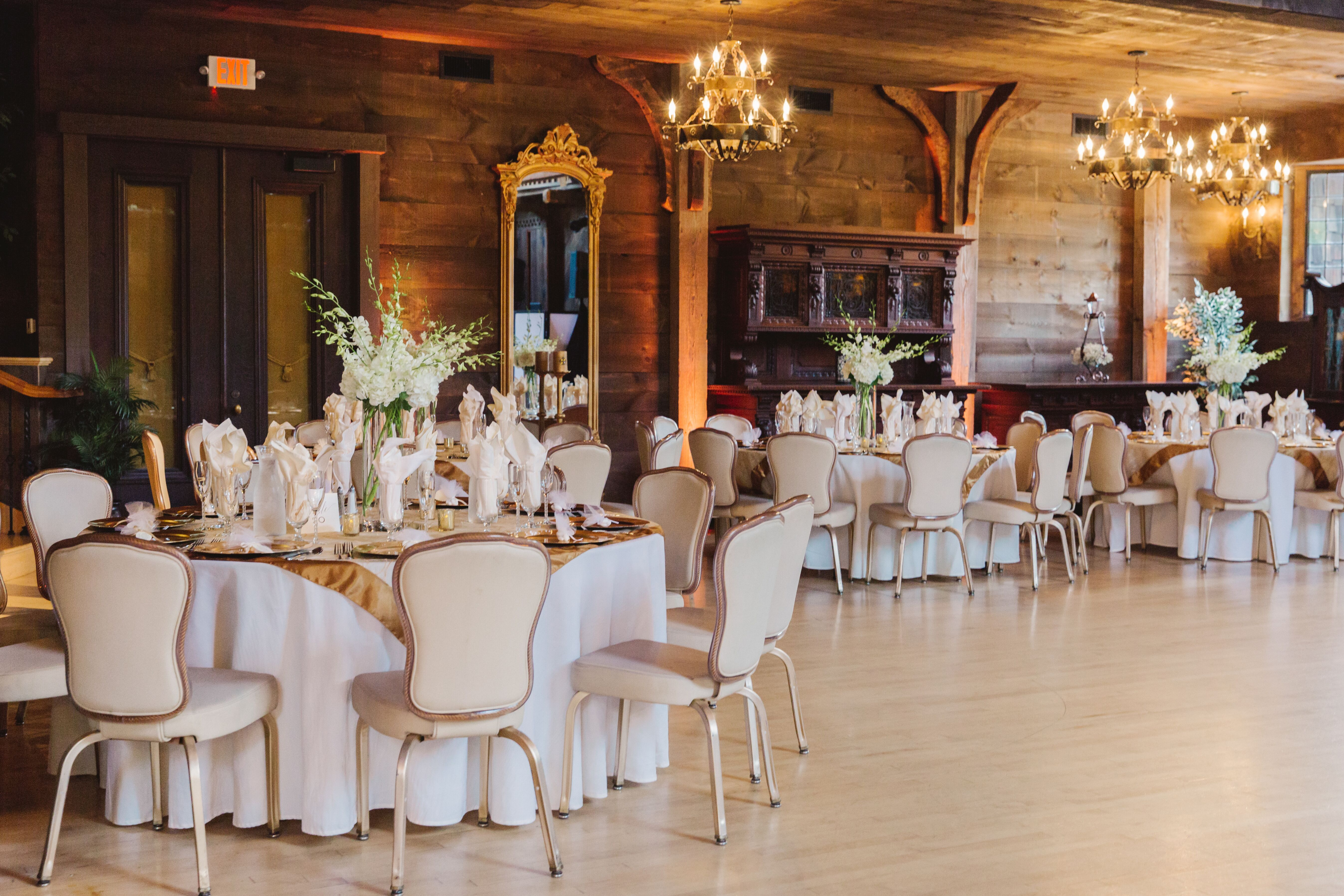 Bill Miller's Castle can accommodate up to 250 wedding guests, with indoor and outdoor spaces. The indoor ballroom offers an enormous dance floor and three-story fireplace. For outdoor locations, the picturesque Castle gazebo has a large deck to host cocktail hour and the Trellis under the trees is ideal for ceremonies. Bill Miller's Castle hosts only one event per day, ensuring privacy and exclusive access to the facility.