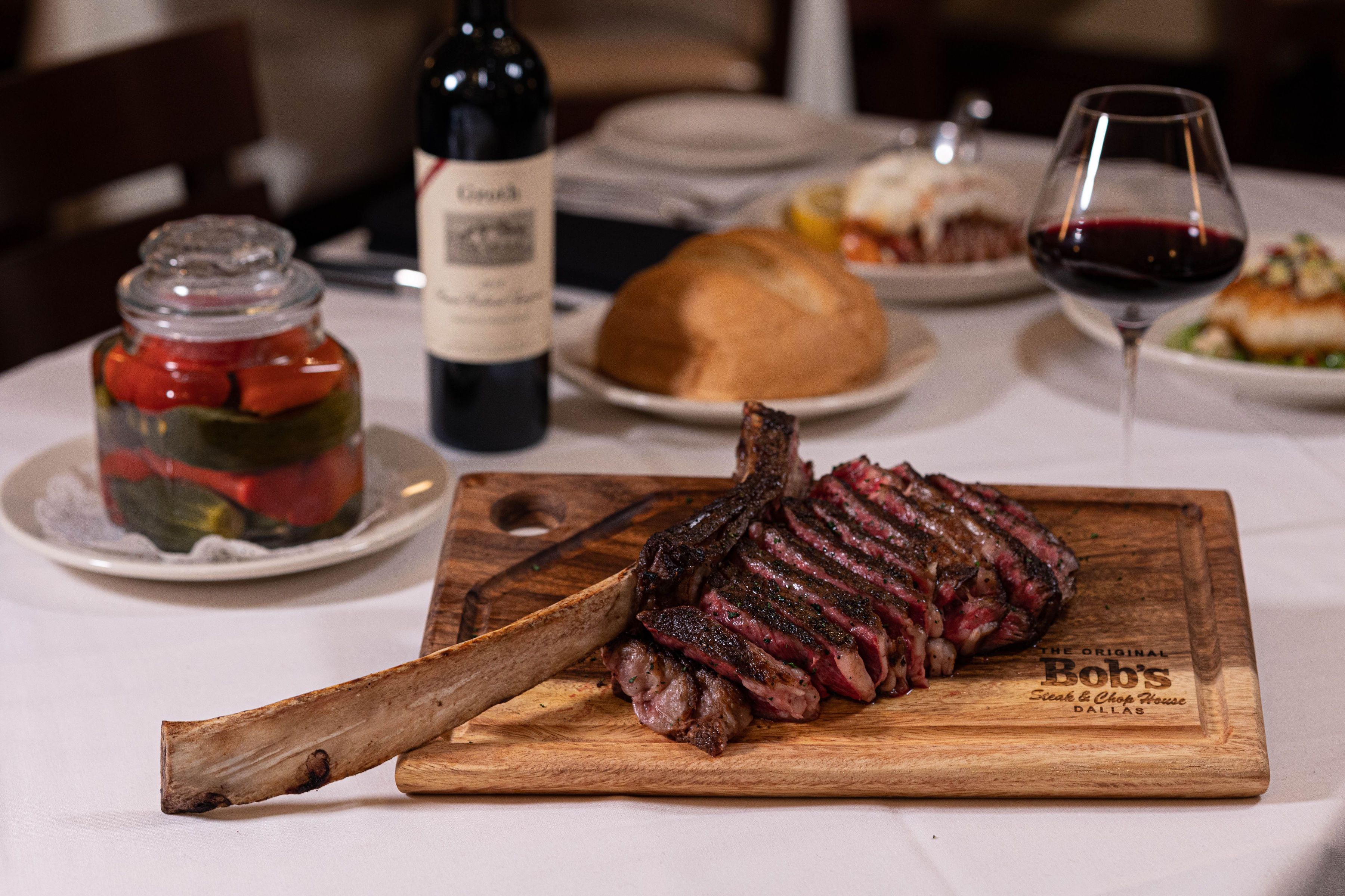 As Texas’ No.1 Steakhouse, Bob’s Steak & Chop House gives steak lovers what they want, great food and plenty of it. Beef rules in the richly appointed dining rooms of mahogany and red, with crisp white table cloths and cozy booths. The perfect atmosphere for business or pleasure.DRESS CODE: We do not allow ball caps in the restaurant. We consider tank tops, flip flops, boldly logoed clothing, gym and athletic attire, and provocative clothing too casual for Bob’s Steak & Chop House.