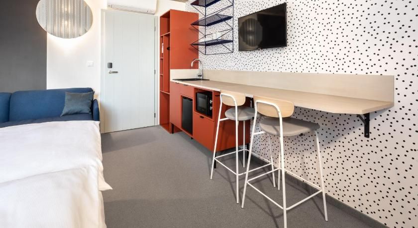 Situated in Hradec Králové, Hradec Kralove region, Boutique Hotel Mezi švy is located 39 km from ZOO Dvůr Králové nad Labem. With a restaurant, the 4-star hotel has air-conditioned rooms with free WiFi, each with a private bathroom. The property is allergy-free and is set 41 km from The Grandmother's Valley. All guest rooms at the hotel come with a flat-screen TV and a safety deposit box. All rooms include a kettle, while selected rooms also offer a kitchen with a fridge, a dishwasher and an oven. At Boutique Hotel Mezi švy the rooms have bed linen and towels. A Full English/Irish breakfast is available every morning at the accommodation. The nearest airport is Pardubice Airport, 25 km from Boutique Hotel Mezi švy.