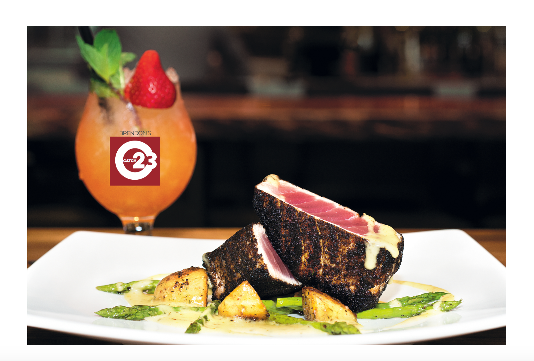 Brendon's Catch 23 features the freshest seafood flown in daily, with steak, low country and hand held options, as well as signature craft cocktails.For your special events or corporate meetings, Brendon's Catch 23 offers five (5) exclusive private dining rooms. The private dining rooms are equipped with HDMI hookups and mobile projection capabilities. Our largest private dining room features a double-sided fireplace for that elegant and relaxing dining experience. The full menu or personalized menu packages are offered for groups. The bar features a soft seating lounge area for relaxing while enjoying our variety of hand crafted unique cocktails. Our Bachelor Fix and Brendon’s 1081 are two of our specialty cocktails and a great addition to any dining experience. Brendon’s Catch 23 Rare Reserve, and allocated wines is a Sommelier driven, menu centric wine list designed to compliment the fresh Seafood, prime steaks and low country items featured on o