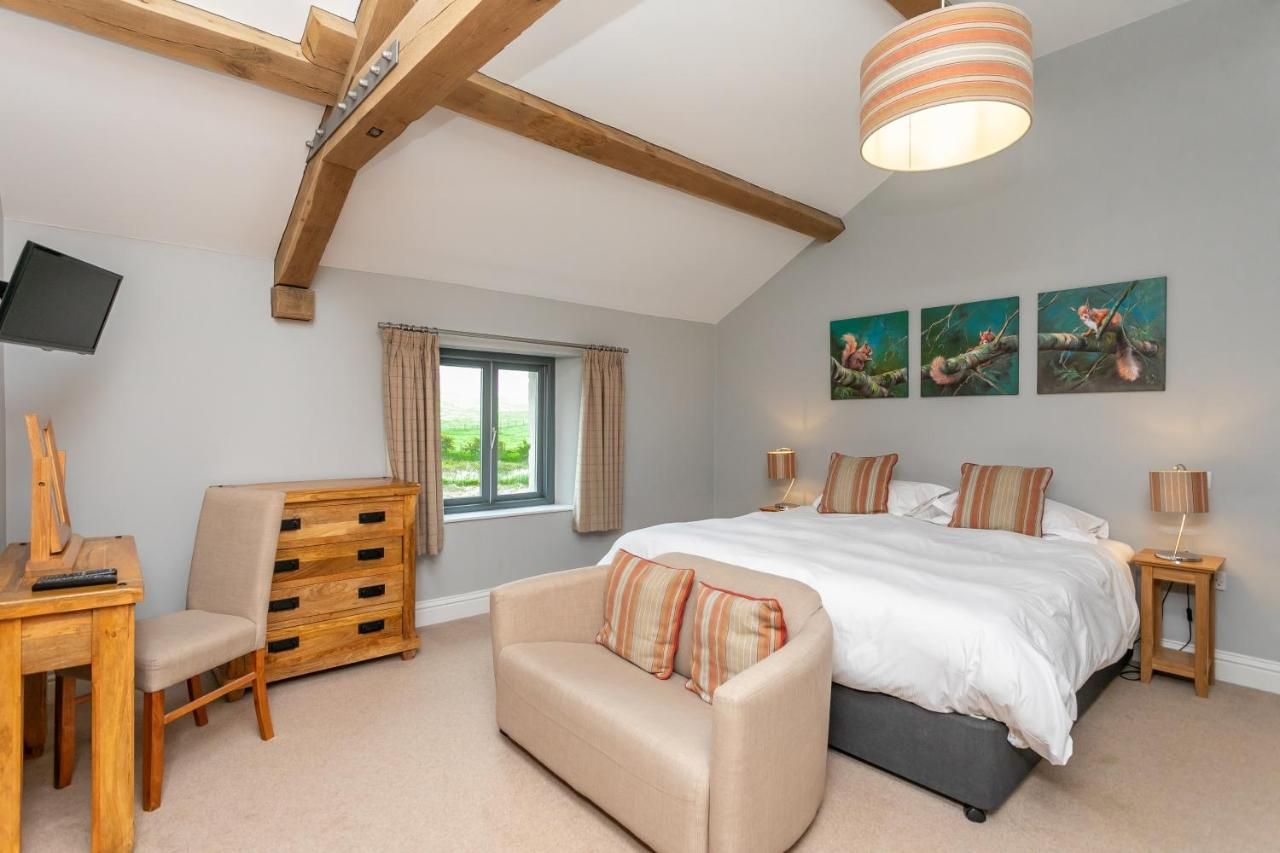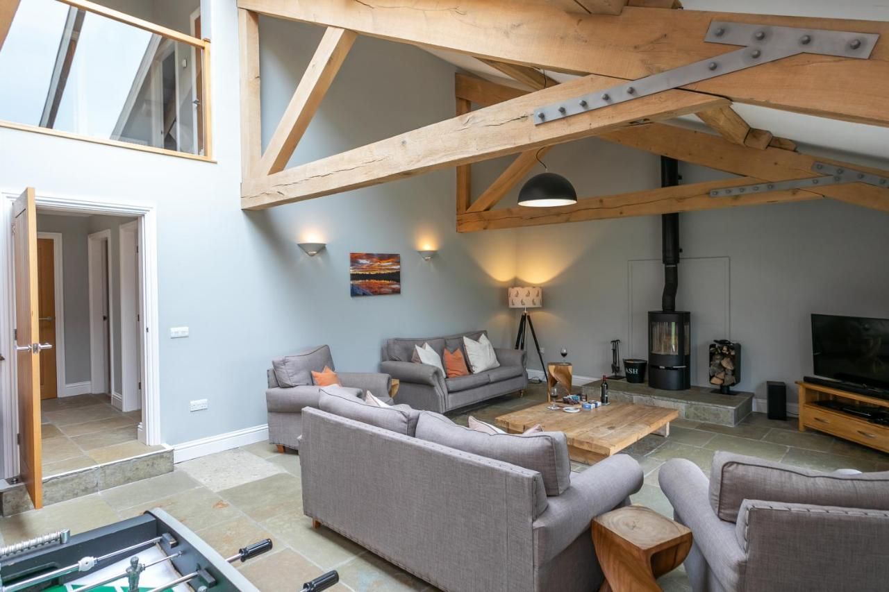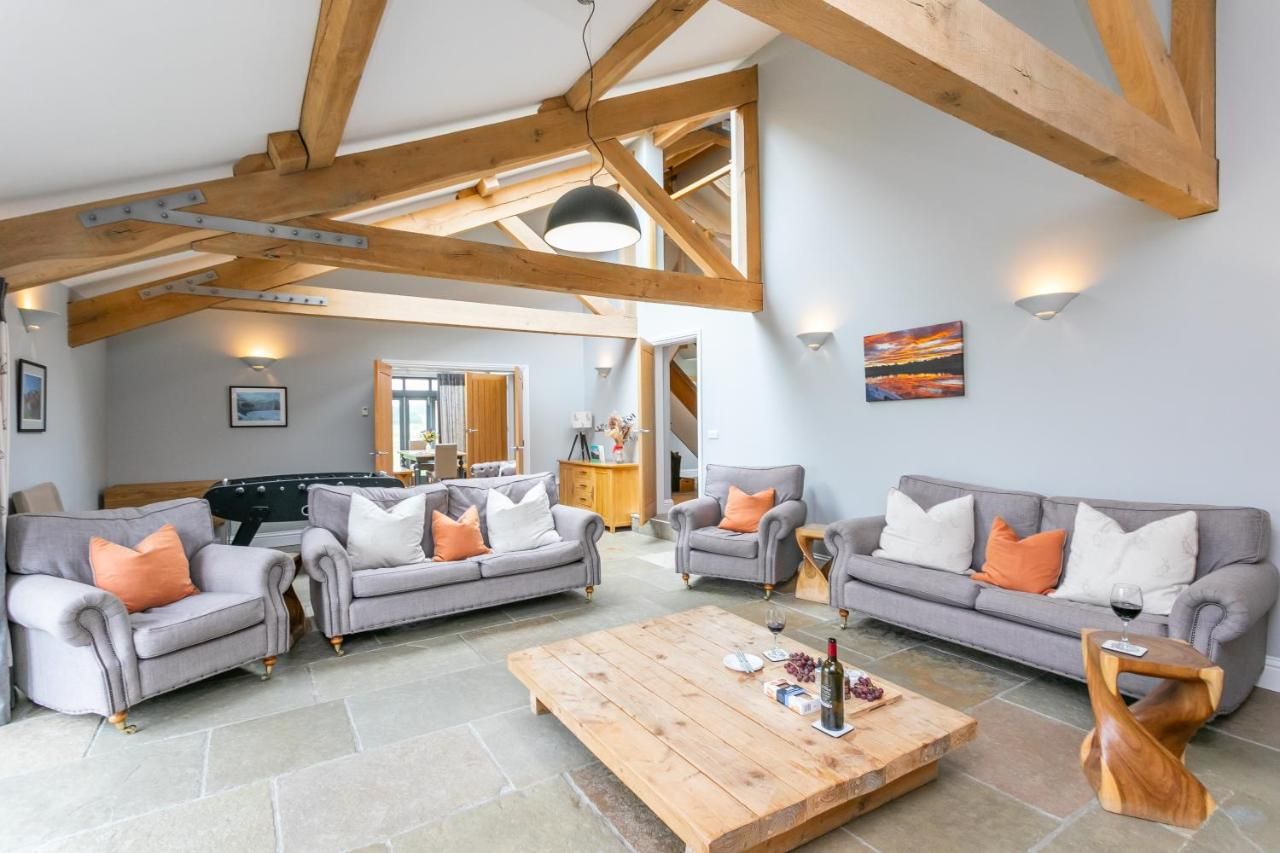 What's better than a stay in a luxurious Plum-worthy home? A stay in two luxurious Plum-worthy homes – of course. This twin listing combines two of our homes – Brockram Barn & Keld Barn – totalling eight bedrooms which can accommodate up to sixteen guests. The sprawling outdoor space and the fact that it's set over two properties means that there's plenty of room to catch a moment for yourself, even during a large family get-together or a company offsite. But, of course, if you want to come together, there's ample space for that too. The interiors are decorated in a modern country style, with soaring ceilings, beautiful exposed beams and stunning stone floors. Both homes have huge common areas and large connected gardens where you can sit back with a glass of something special and watch the sun sink over the Cumbrian countryside. If the urge to explore should hit, then you've got the Yorkshire Dales, North Pennines and Lake District within a thirty-minute drive, while the port town of Middlesbrough is a little over an hour away.