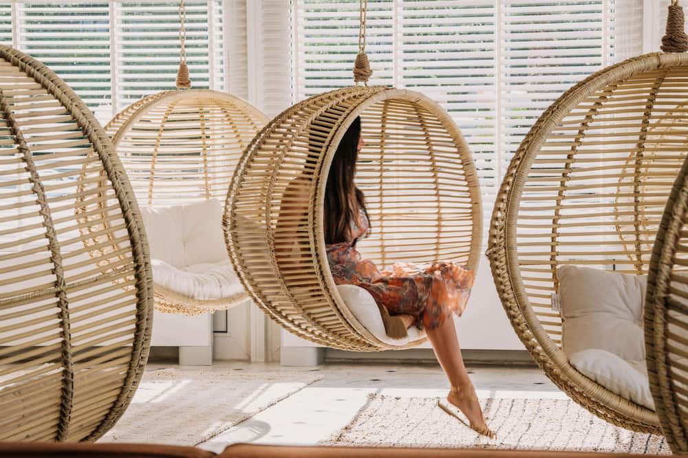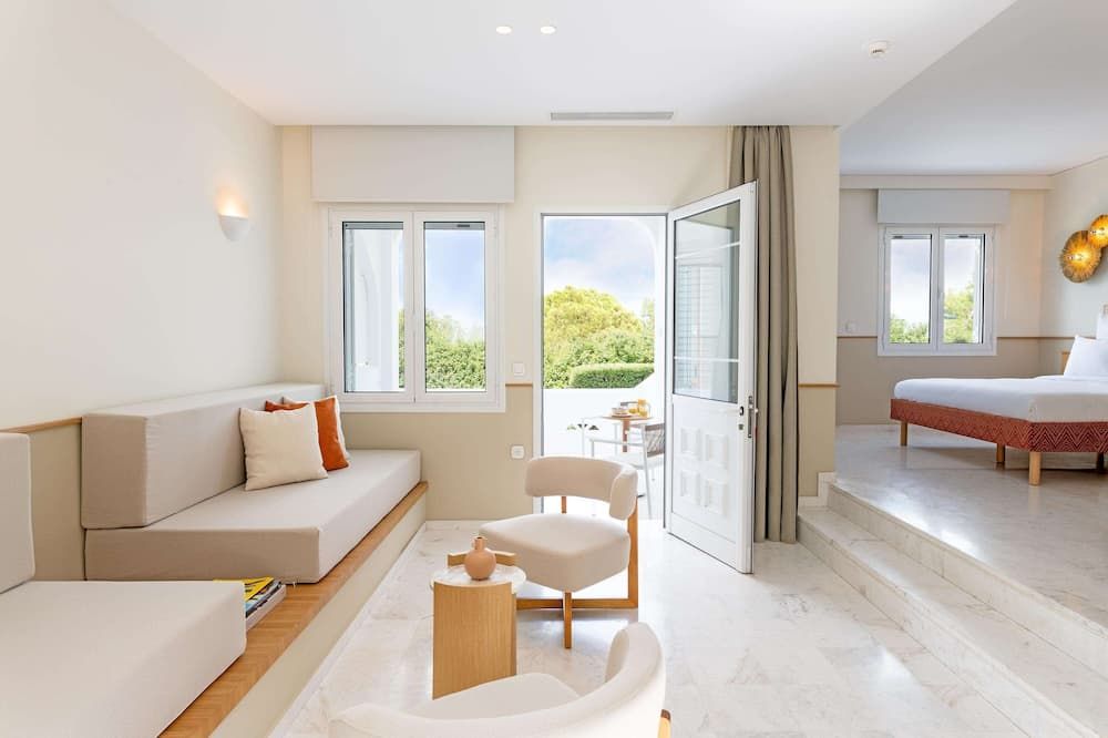 The rooms and the suites are cool and speakeasy with a touch of the Cycladic aesthetic. All rooms are air conditioned and come with a satellite 55' smart TV, tea/coffee maker, private bathroom with shower and free toiletries.