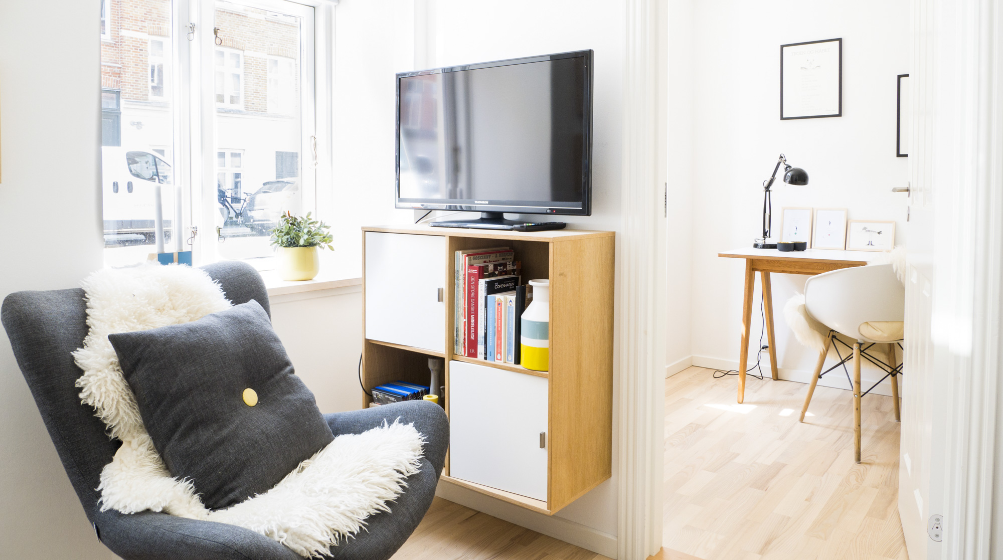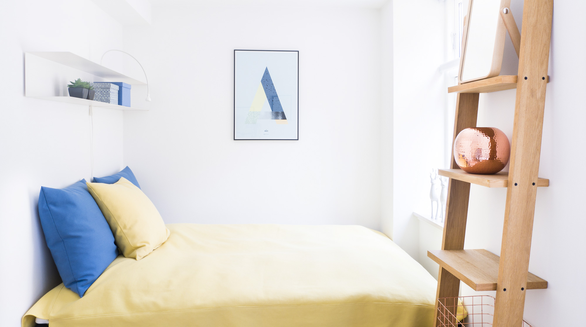 With its yellow and blue theme, Bumblebee & Sapphire definitely has a lively side. Yes, it’s small, but the space is used in a nice way that makes it seem a lot bigger than it actually is. The Vissevasse posters and decorative HAY pillows add a playful touch to the home, which we really enjoy. Amagerbro is calm and it's a short metro ride from Amager Strandpark and Amager Fælled, some of Copenhagen's most beloved nature spots.