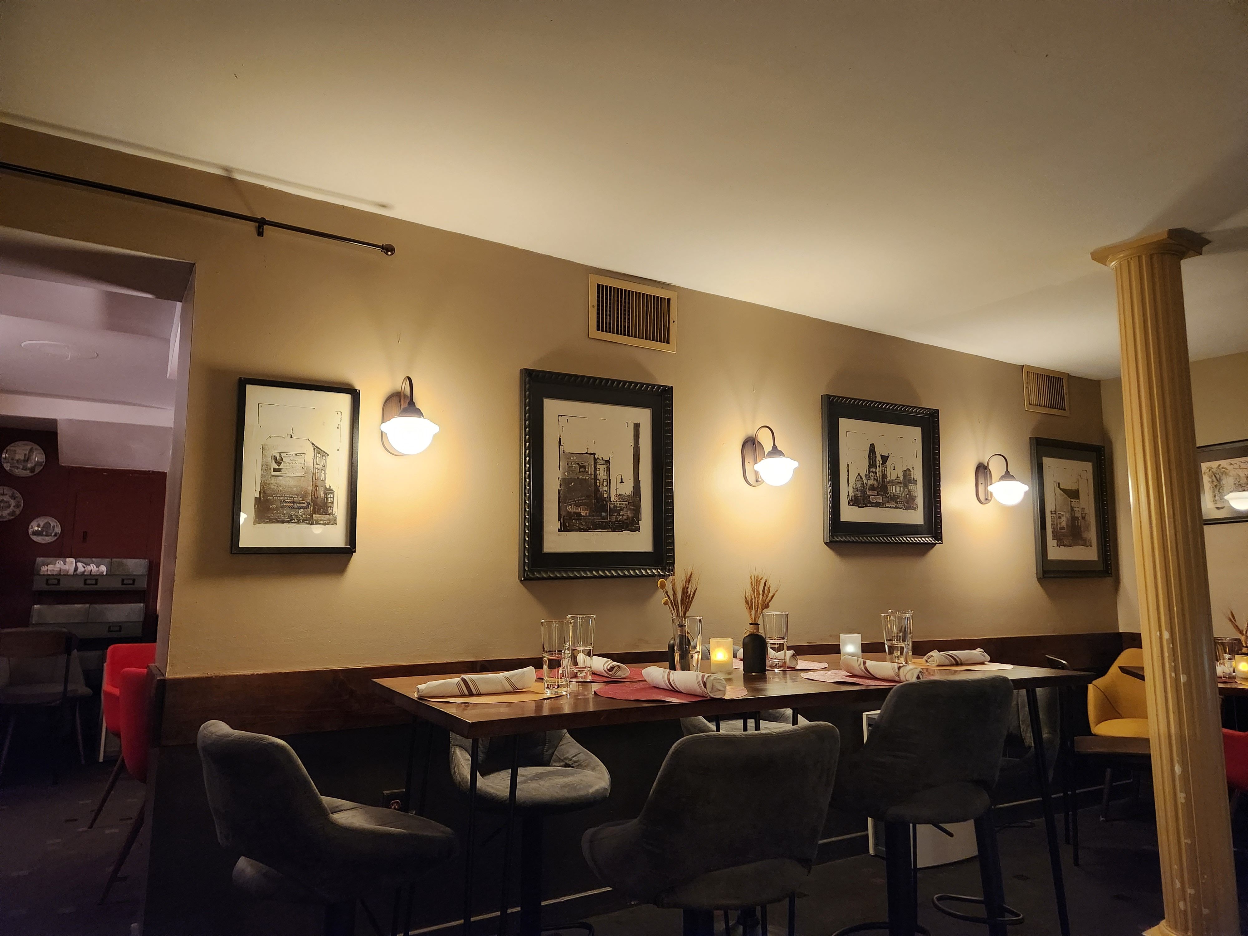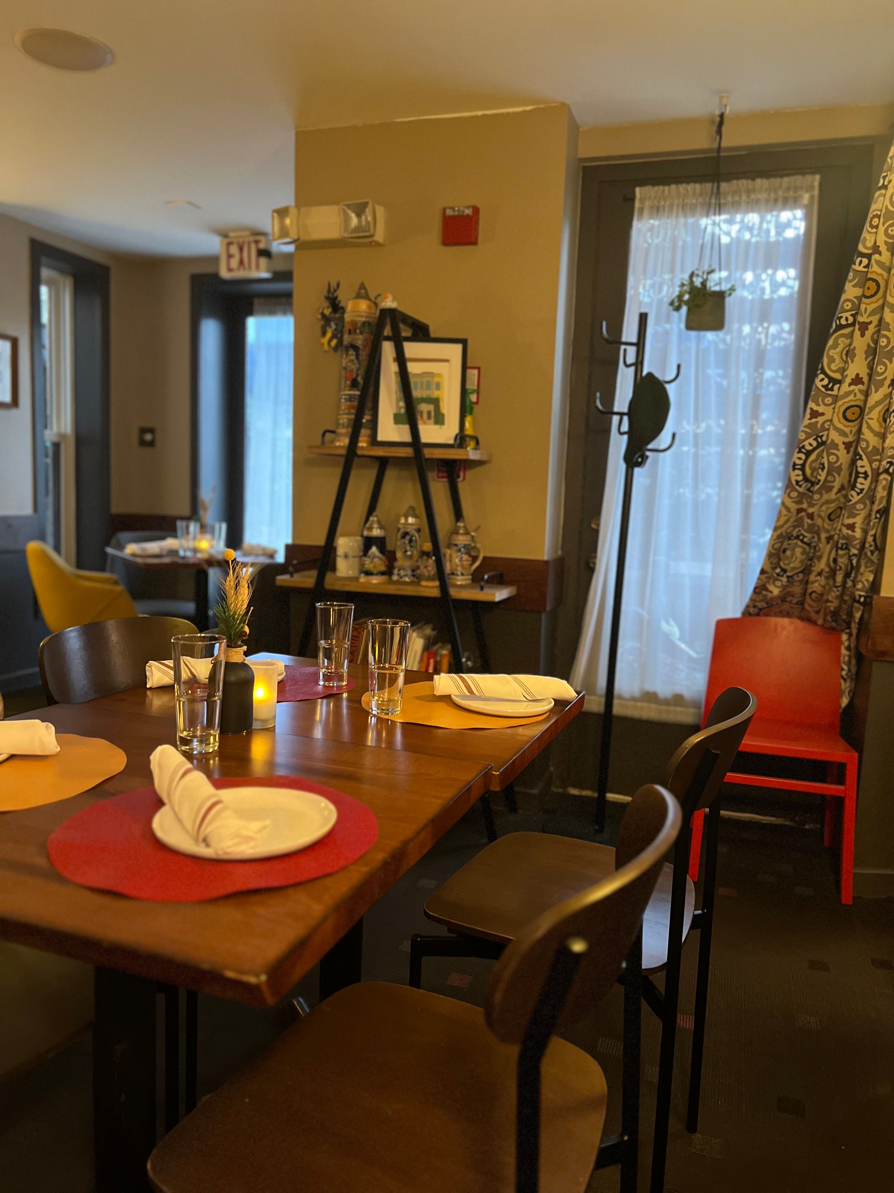 Café Berlin has been serving authentic German cuisine on Capitol Hill since 1985. It occupies the ground floor of three townhouses whose front yards serve as Biergarten for outdoor dining. The interior features a small bar and two cozy dining rooms. The restaurant is located within a short walking distance of Union Station and the U.S. Capitol. It draws politicians, congressional staffer, and tourists as well a loyal following of neighborhood residents. The traditional dishes are authentically prepared with lighter touch by chefs with extensive experience in German cuisine. In addition to the regular menu, the restaurant offer seasonally changing menus that feature fresh asparagus in the spring, salads and light fares in the summer, Bavarian dishes during Oktoberfest in the fall, and wild game in the winter. Desserts which are freshly made in-house include apple strudel, black forest cake, and luscious cream tortes. The bar offers a selection of imported German beers and wines.