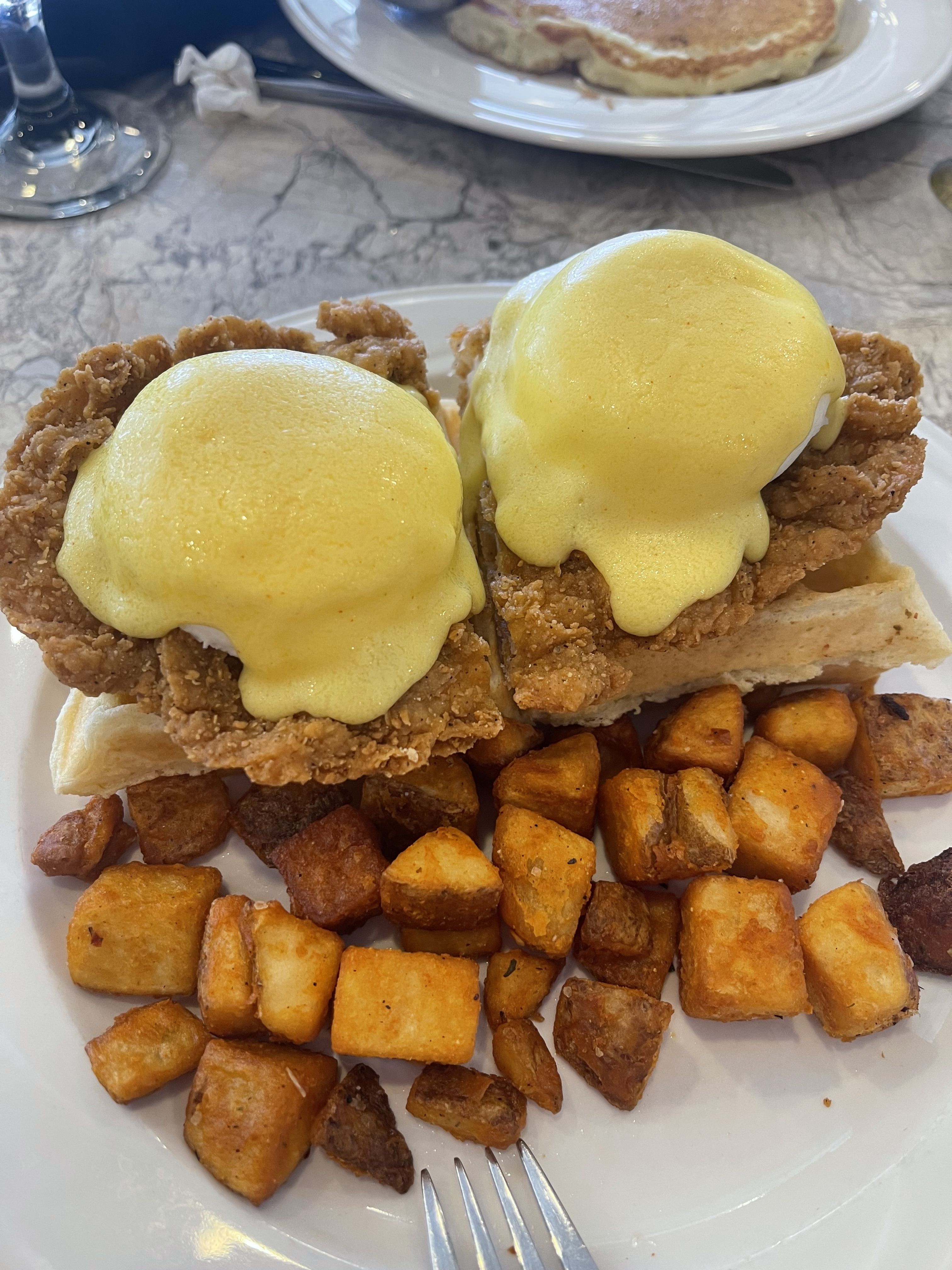 A contemporary and lively spot to dig into your favorite brunch staples. With chef Hesston Swenn's wonderful twists on Benedicts, Chicken and Waffles as well as a revival of the Monte Cristo, Café Volare aims to offer you a big city brunch experience in the small town of Enid, Oklahoma.Located in the base of the historic Independence Tower, Café Volare is a delightful blend of old and new as it harks to the Art Deco period. With many Instagram worthy dishes and drinks, the décor adds the final touch to the ultimate share-worthy brunch experience. General manager Kaycee Parry has ensured that every aspect of your experience will keep you coming back for more. It should be noted that the kitchen is a "scratch" kitchen in which it is the aim to make as much of the menu items from scratch as possible. Therefor this restaurant is best booked when you have the time to enjoy drinks and wait for your meal to arrive.