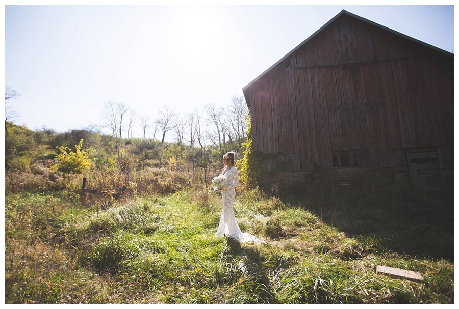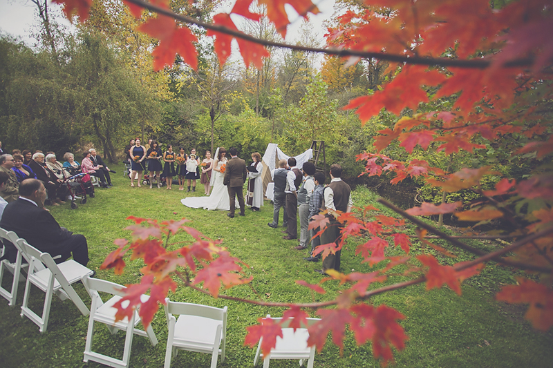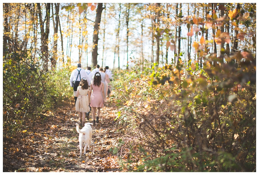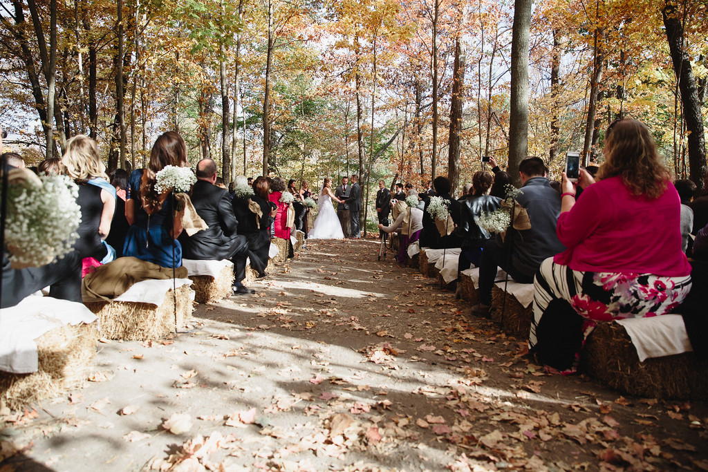 To get to the ceremony site in the woods, guests following the lane heading up a hill and take a grass path flanked on both sides with 10 acres of colorful native Ohio wildflowers, home to songbirds, butterflies and wild honeybees.