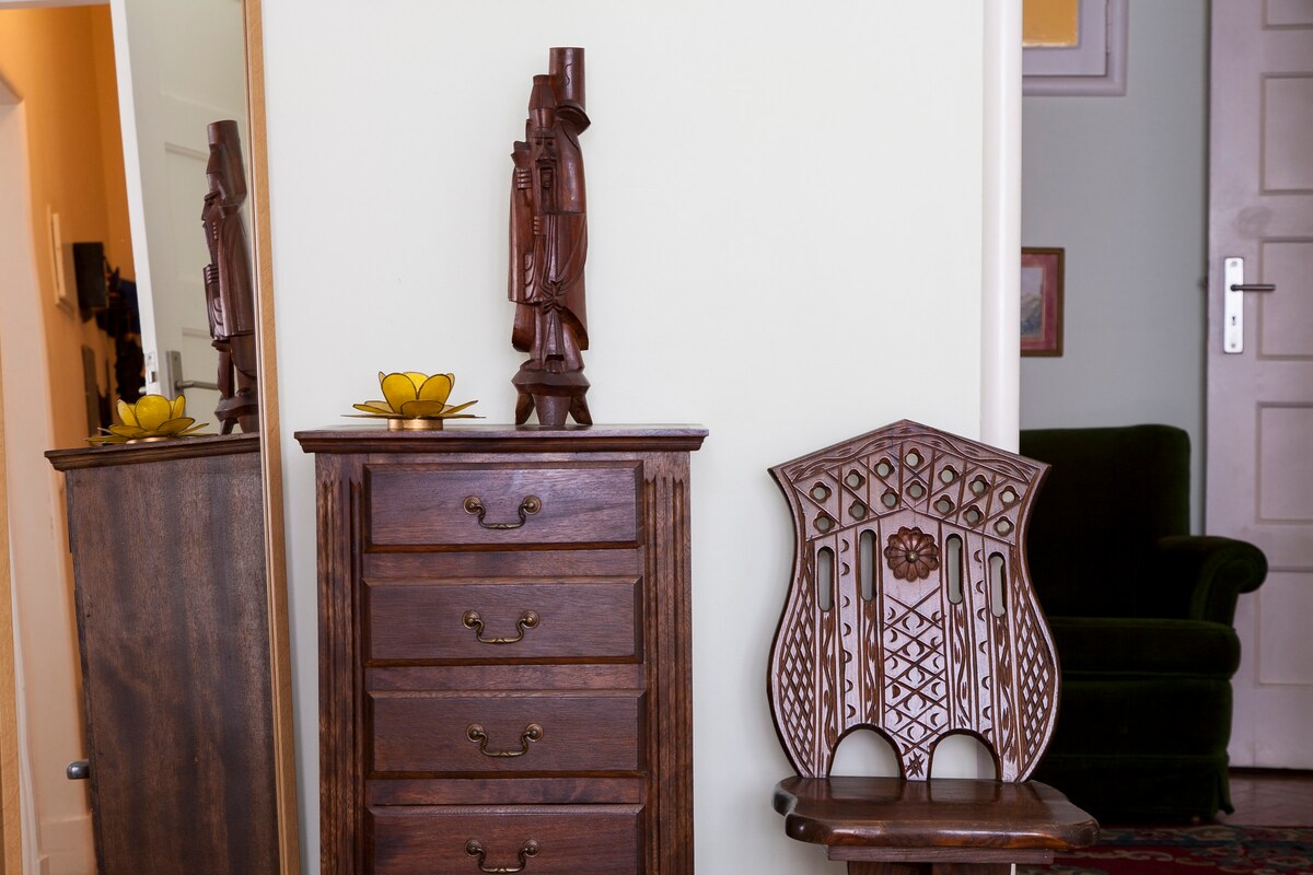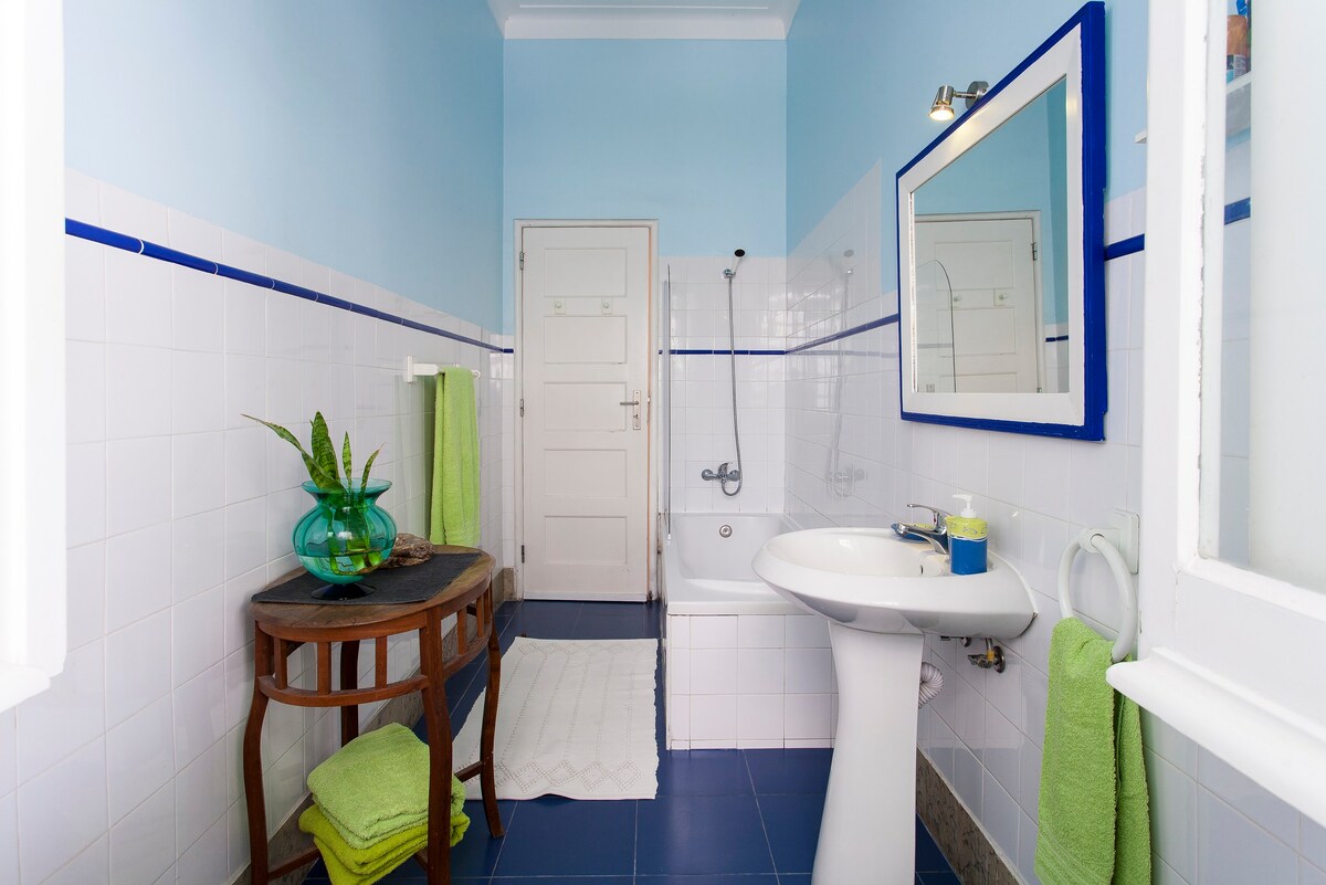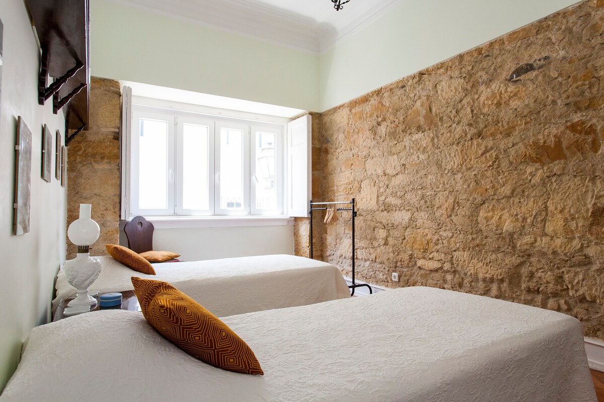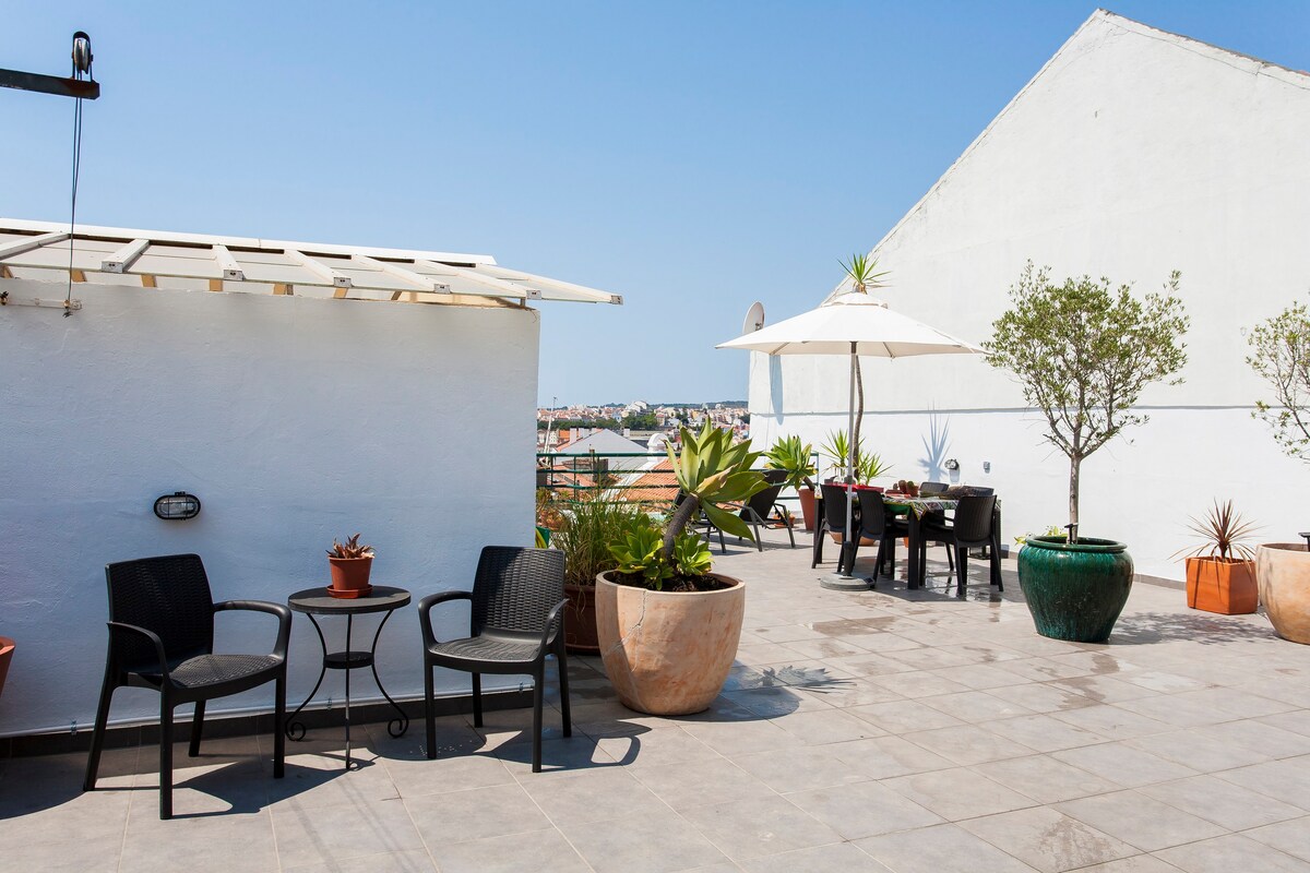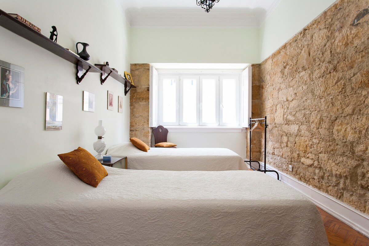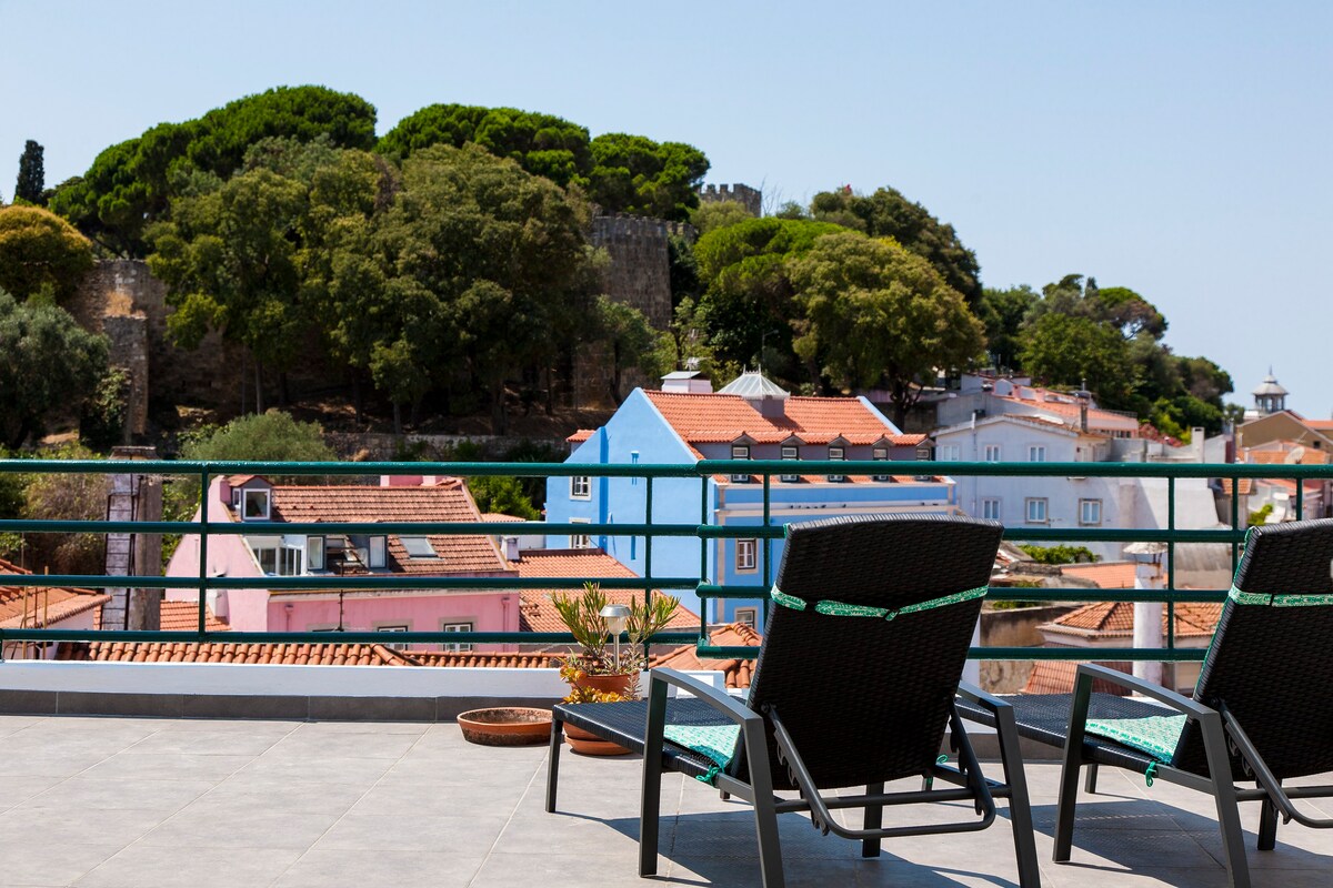 From the crotchet tablecloth to the wicker chairs and exposed stone walls, there's a lot of lovely traditional charm in this home. Set in the Graça neighbourhood, it feels quintessentially Portuguese, with antique furniture and an eclectic interior. The cosy kitchen is strung with pots, pans and old branches, while two living spaces host velvet sofas, towering bookcases and intimate writing desks. The bedrooms are similarly retro, with parquet flooring, maps on the walls and heavy wooden shutters to keep out the hustle and bustle from the cobbled streets below. The charms of the capital are in easy reach, though you can get a taste of the atmosphere just as well from the roof area. Overlooking terracotta roofs and out towards the ocean, the terrace has loungers and a dining set, perfect for alfresco drinks come evening.