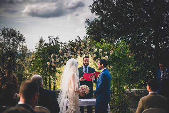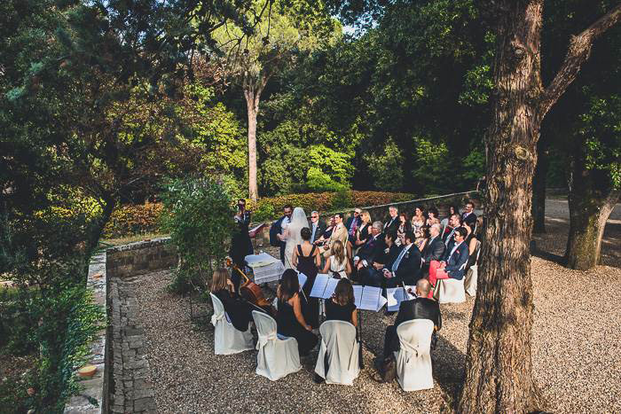 The Castle Il Palagio, a medieval castle of the 13th century, historic home, with extensive gardens, Italian gardens and a consecrated Chapel is located in the Chianti countryside, among vineyards, olive groves and ancient churches. The Castle Il Palagio, located in San Casciano Val di Pesa, near Mercatale, is the ideal place for parties, banquets and weddings, just 17 km from Florence. Space and capacity The castle, a real military fortress, and the scene of countless battles between Florence and Siena, in 1600 was used as a mansion by restorations that have made more hospitable its environment, refined with details of great elegance. Plants that have now hundred of years were placed around ancient walls. In early 1900, a new restoration in neo-Gothic style by the architect Castellucci, led to the decoration of the Chapel and the layout of the park and Italian garden. The interior rooms on the ground floor can accommodate up to 180 guests in one room. The rooms on the first floor can also be used for the preparation of the bride and the groom and beautiful pictures. The beautiful central courtyard and the adjacent gallery, beside of the medieval tower, can accommodate up to 180 people with table service. In the gallery space can be settled for live music, a dj set or a string quartet. The nights are all particularly impressive because innumerable candles and lanterns can be placed on the battlements and balconies. Upon request, the court may be closed with transparent marquees that are well suited to the spaces surrounding the courtyard and make a unique environment with rooms that overlook it. The beautiful Gothic chapel, with access directly from the court, may be used for a beautiful ceremony in a religious rite. The Italian garden and the park with central fountain, overlooking the beautiful Chianti countryside, are ideal for any type of event. They can be used for an aperitif, to diversify environments, or for the reception. On the small tower in the garden, can be made the cut of the cake with fireworks and bouquet throwing. These spaces can accommodate over 300 guests. In the garden symbolic marriages can also be held under an arch made of wrought iron, covered with climbing roses and flowers overlooking the vineyards and the hills of Chianti.
