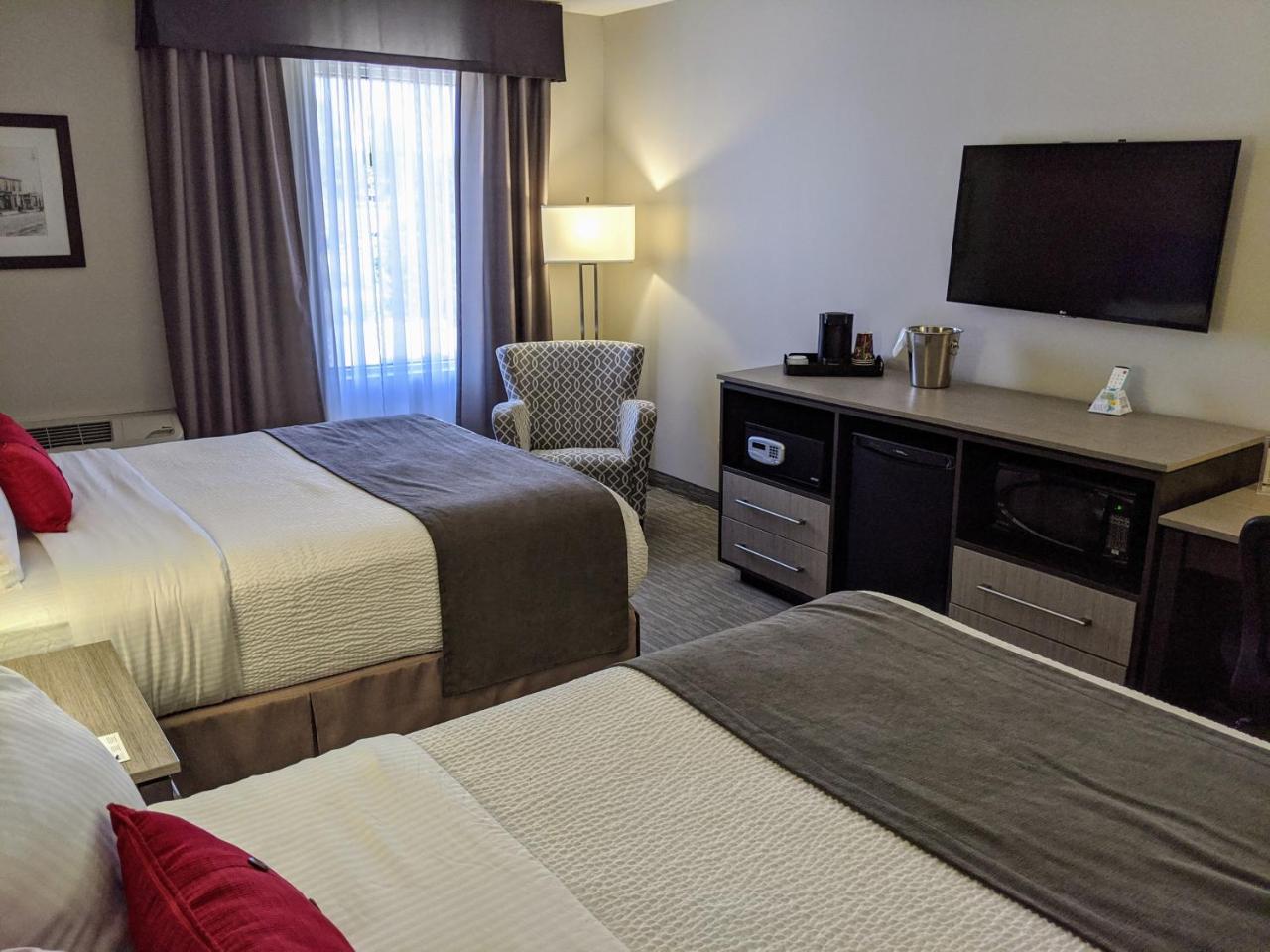 The guestrooms at Chateau Bedford are equipped with pillow-top mattresses and cozy duvets. Guests can make a cup of coffee with the in-room coffeemaker or take advantage of the room's mini-refrigerator.