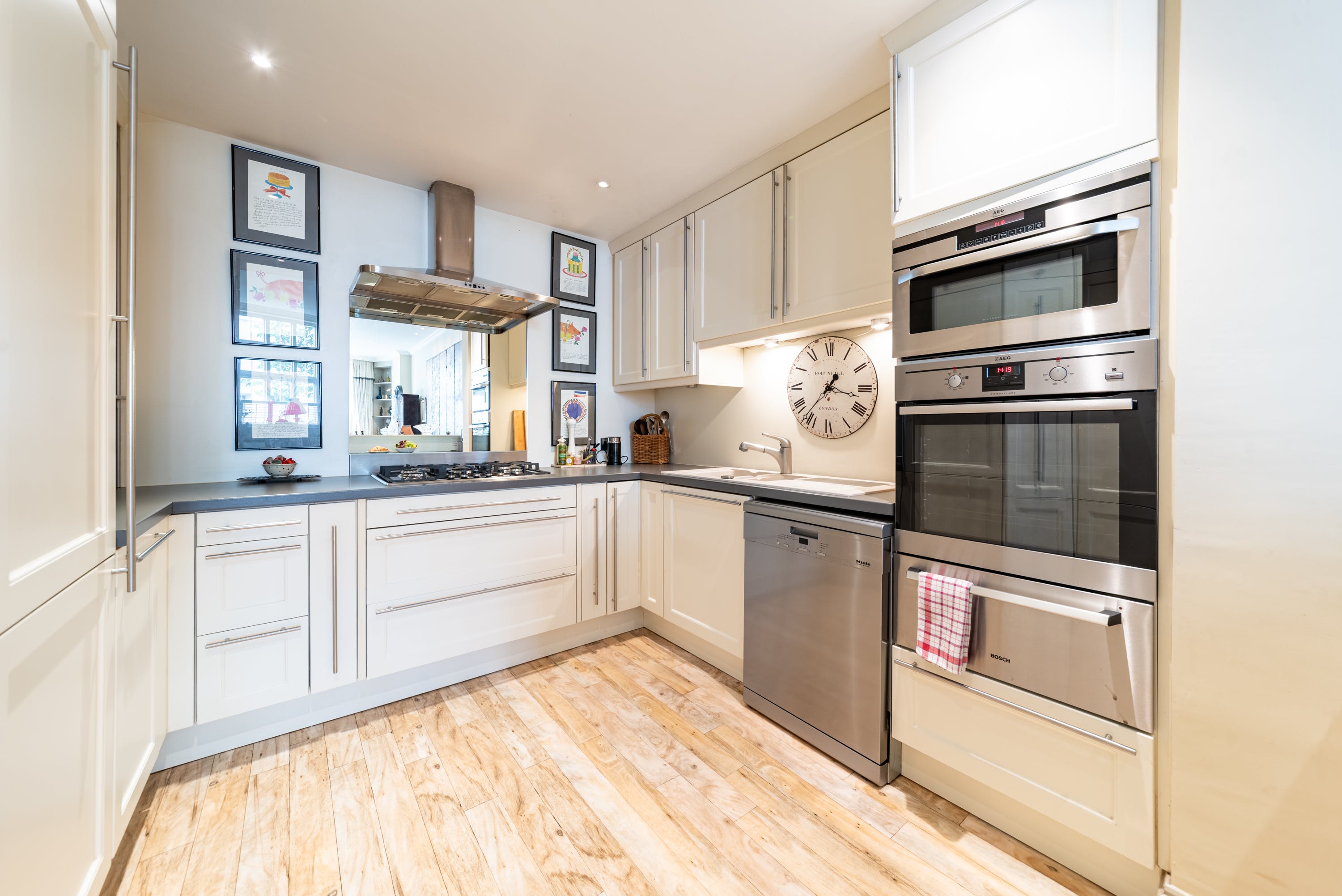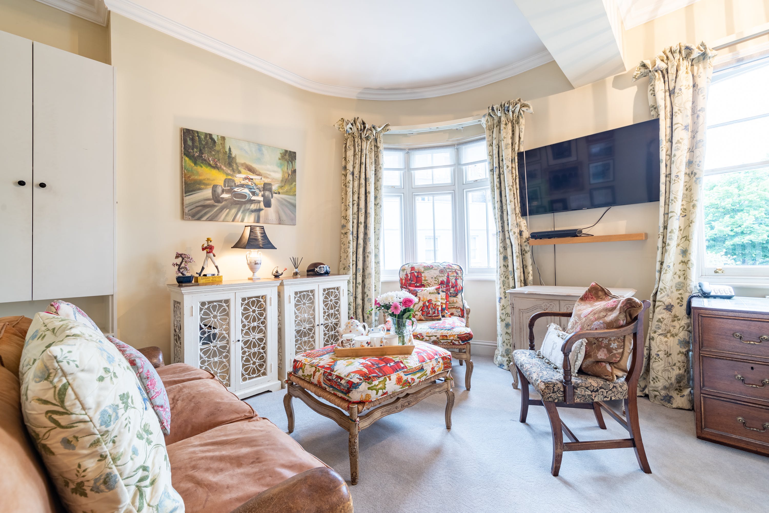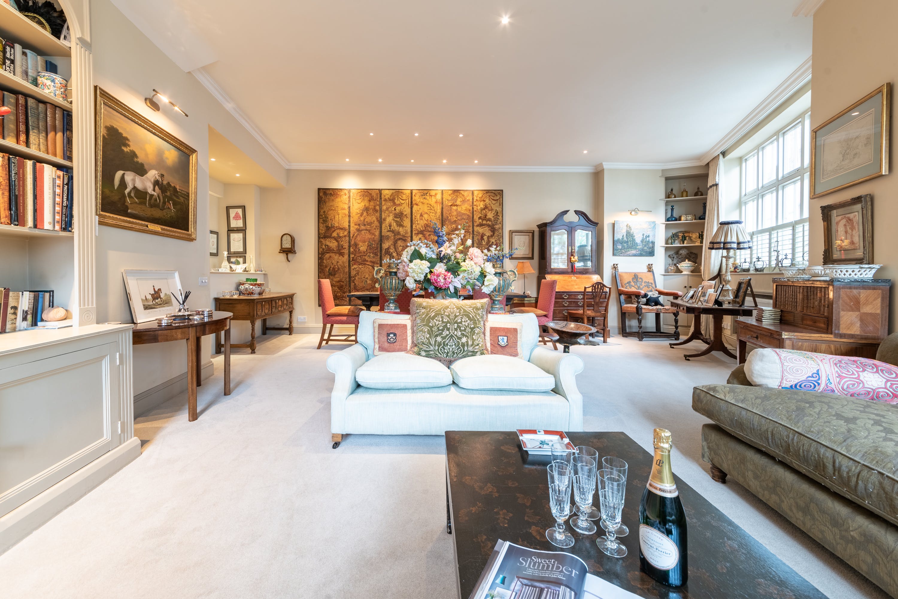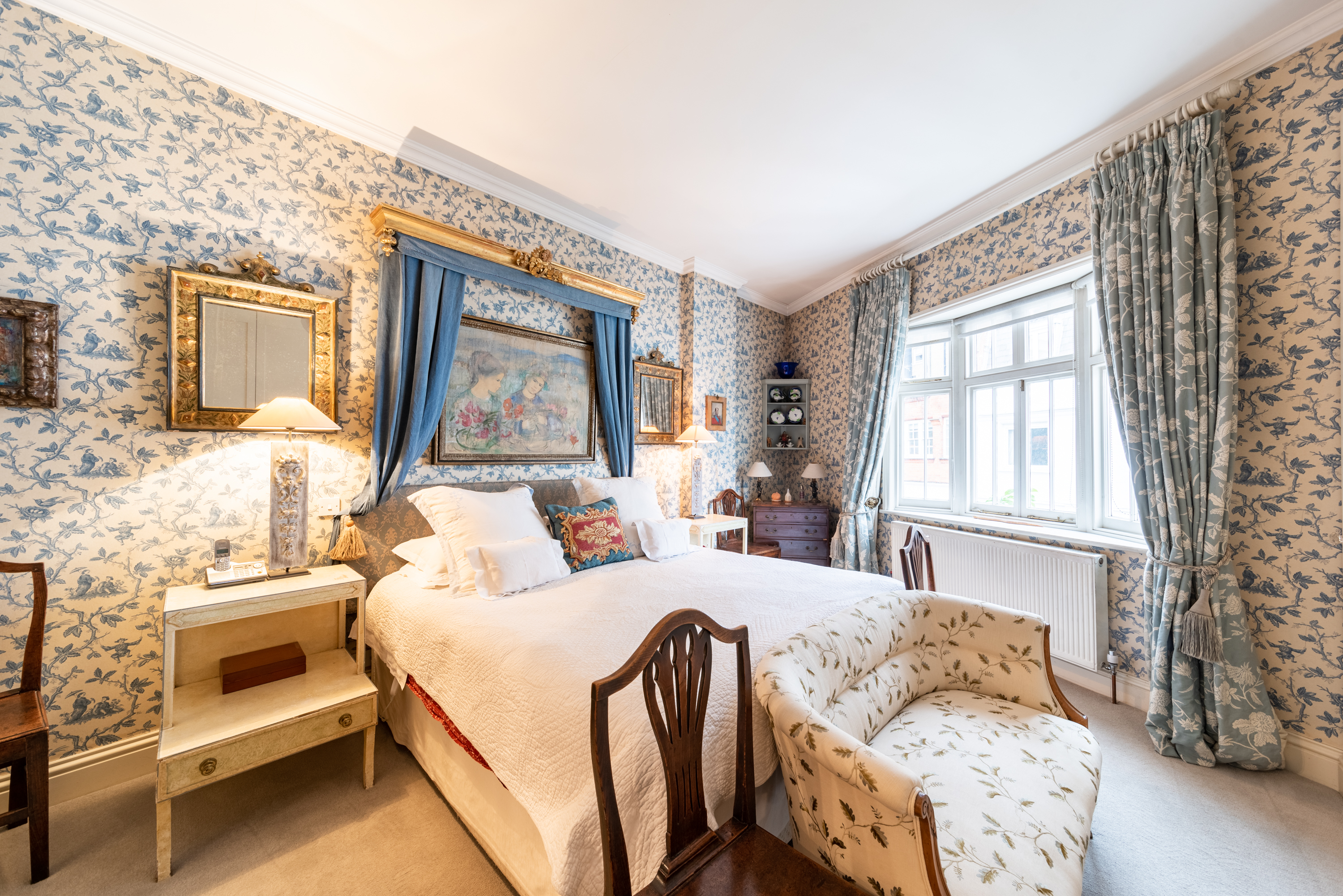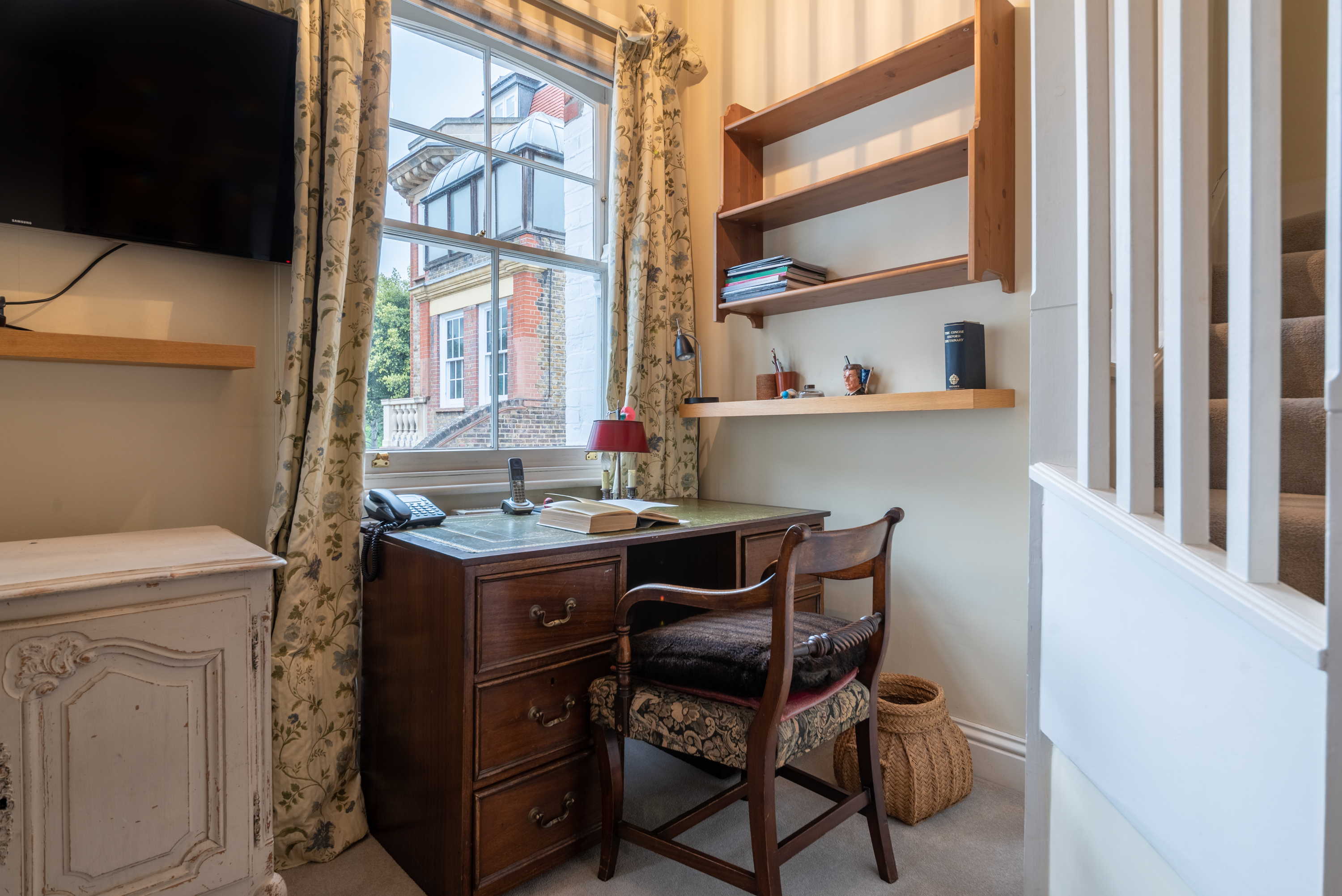 This mews home in Chelsea is charming inside and out. Despite its popular London location, it offers peace and quiet, making it a lovely choice for those after a relaxing stay. The main living area boasts a grand open space with various seating options and a dining area. The decor is traditional and welcoming, although it might not be to everyone's taste. The second sitting room is located on the landing and provides a snug area with another sofa for relaxing – there's also a desk for remoter workers. The home is laid out over three floors, so it might not be suitable for those with limited mobility. A private parking space is provided at the house, offering rare convenience in this part of London. You've got plenty of nearby attractions here, including Battersea Park, King's Road, Chelsea Physic Garden, and the Saatchi Gallery.