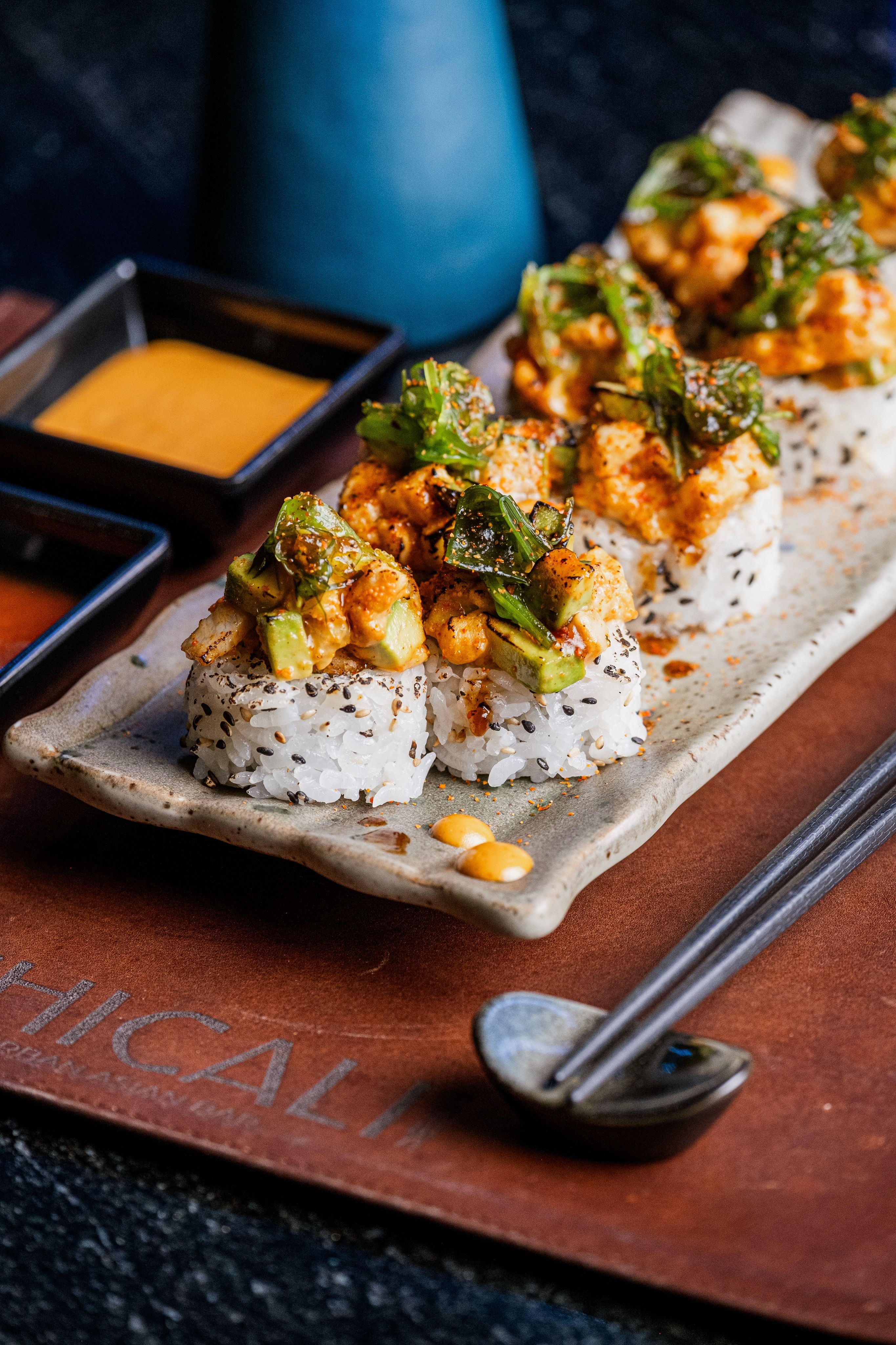 Ubicados en plaza Cantabria Chicali Town es el primer Bar Restaurante de Hermosillo con decoración inteligente, disfruta una verdadera experiencia sensorial tras cruzar la puerta, inspirados en asian bar fusionamos lo mejor de México con lo mejor de la comida asiática. Nuestros alimentos totalmente naturales libres de aditivos y colorantes hacen que cada bocado sea un verdadero deleite, guiados y acompañados del Chef Mike de la Mora, destacado por su famoso Tonkotsu Ramen cuya técnica e historia no te la puedes perder; visítanos y prueba de la mejor comida asiática en Hermosillo.