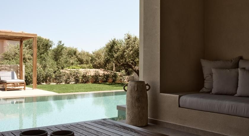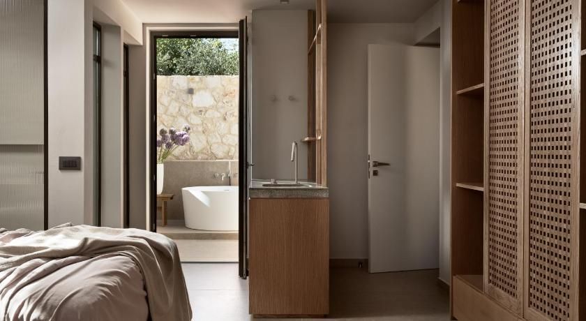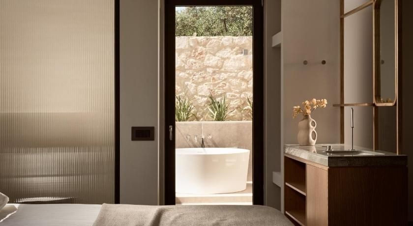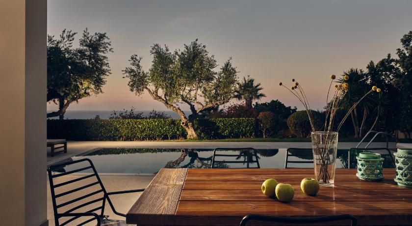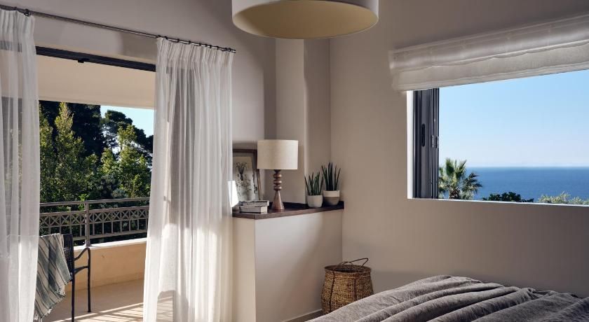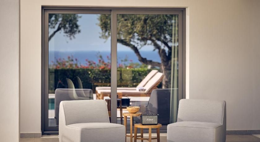 Overlooking the sea from its balcony, the luxurious, air-conditioned villas include marble floors, modern design and bright colours. They have a seating area with a fireplace, sofas and flat-screen TV. The kitchens are equipped with a stove, oven and dishwasher. The bathrooms come with a spa bath and shower.