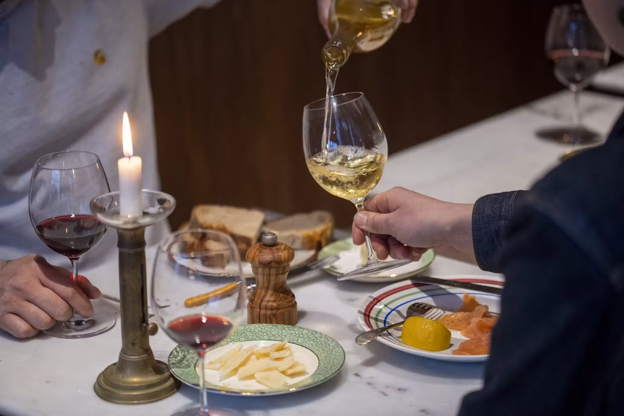 Having spent years supplying London’s top restaurants through their separate wine businesses, Joe Haynes and Benedict Butterworth have joined forces with Tom Hurst, who has worked at Brawn, The Marksman, Levan, and most recently as Head Chef at Lasdun, to launch the trio’s first restaurant together.Located in a Grade II listed building on Cloth Fair, Cloth Restaurant is part of a historic row of buildings in the City of London that survived the Great Fire of 1666. Down this atmospheric alley opposite St Bartholomew church, Cloth is taking over a double fronted corner site that’s beneath the former home of poet John Betjeman and next door to the two oldest residential buildings in London. Inside, low ceilings, wood floorboards with antique wall lights and artwork create a cosy, intimate atmosphere, while marble tables, long dark wood banquettes, antique crockery and cutlery will create the feel of a classic bistro.