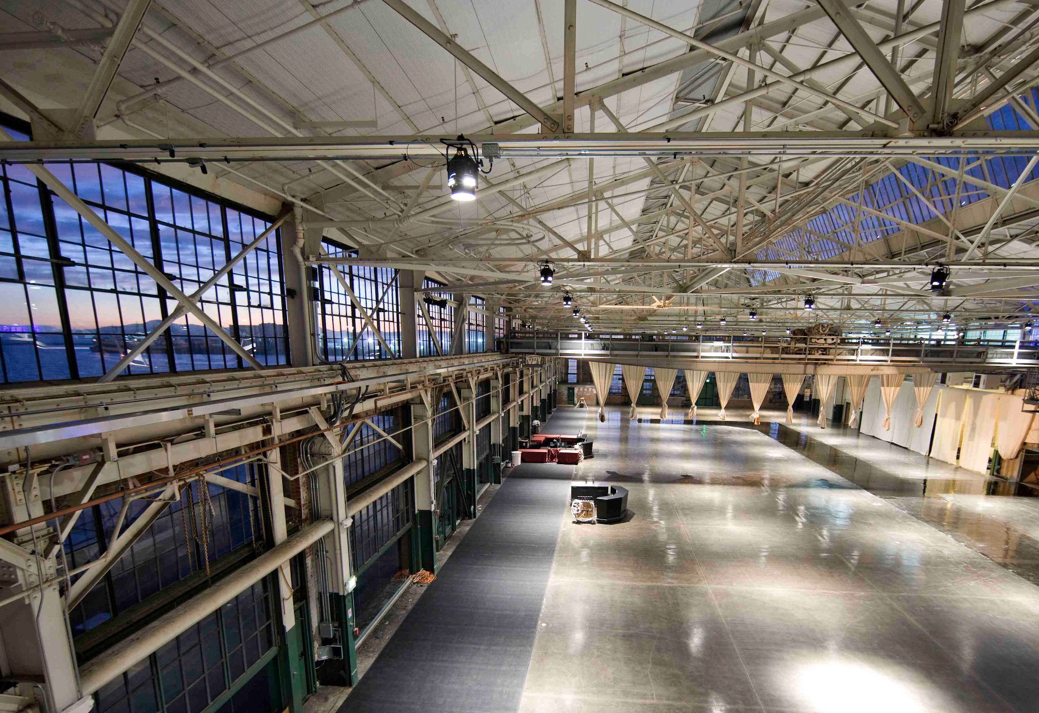 Set on 25 waterfront acres, Craneway Pavilion delivers an awe-inspiring panorama of the Bay, the San Francisco skyline and surrounding environs—matched only by the inventive programming and infrastructure options available inside.