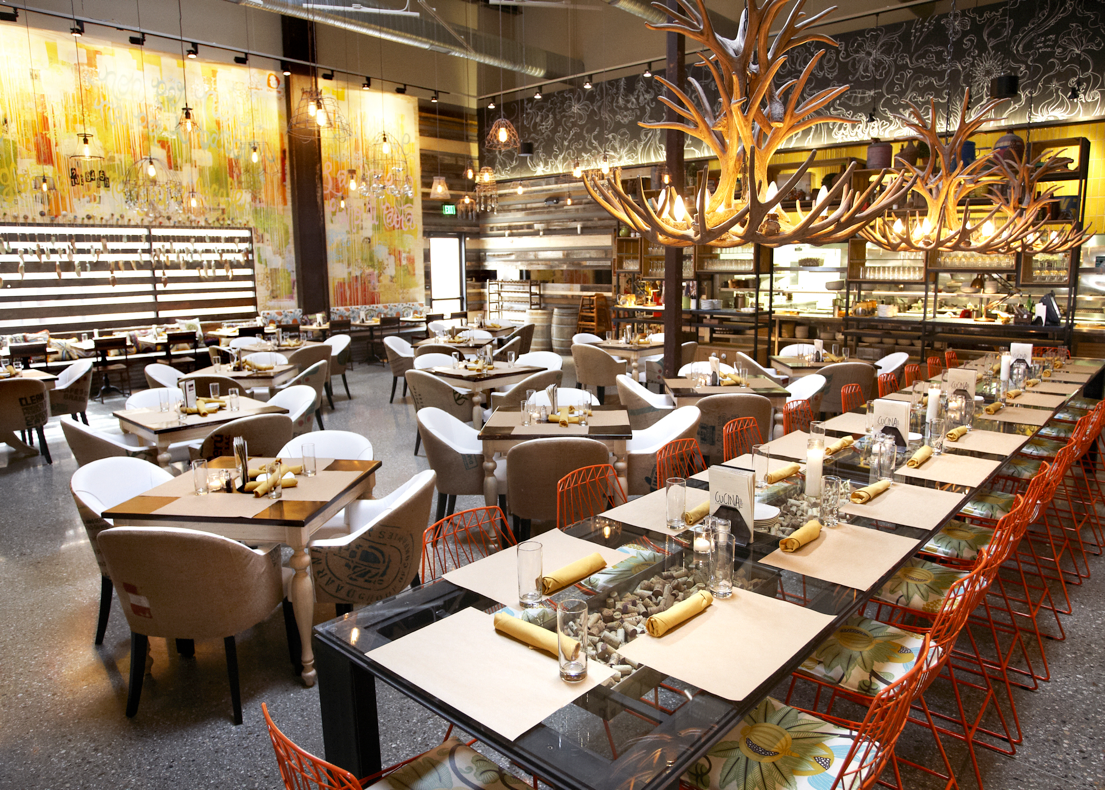 CUCINA enoteca is centrally located in the Irvine Spectrum! Owner Tracy Borkum's flair for combining great ambience, award-winning cuisine and unparalleled service are once again starring components in this latest Urban Kitchen Group creation. Executive Chef Tim Kolanko and Chef de Cuisine Cesar Sarmiento bring their artistry to the table as guests enjoy an open kitchen. The menu features Italian classics with a modern twist, made with the freshest local, organic and sustainable ingredients. Along with a diverse selection of wines by the glass, guests may visit the restaurant's retail area to select from over 200 bottles for dinner (corkage fee of $10 applies) or purchase wine to go. The energetic space features contemporary elements and vintage artifacts creating the feel of a modern Italian kitchen combined with the comfort of an old rustic farmhouse.