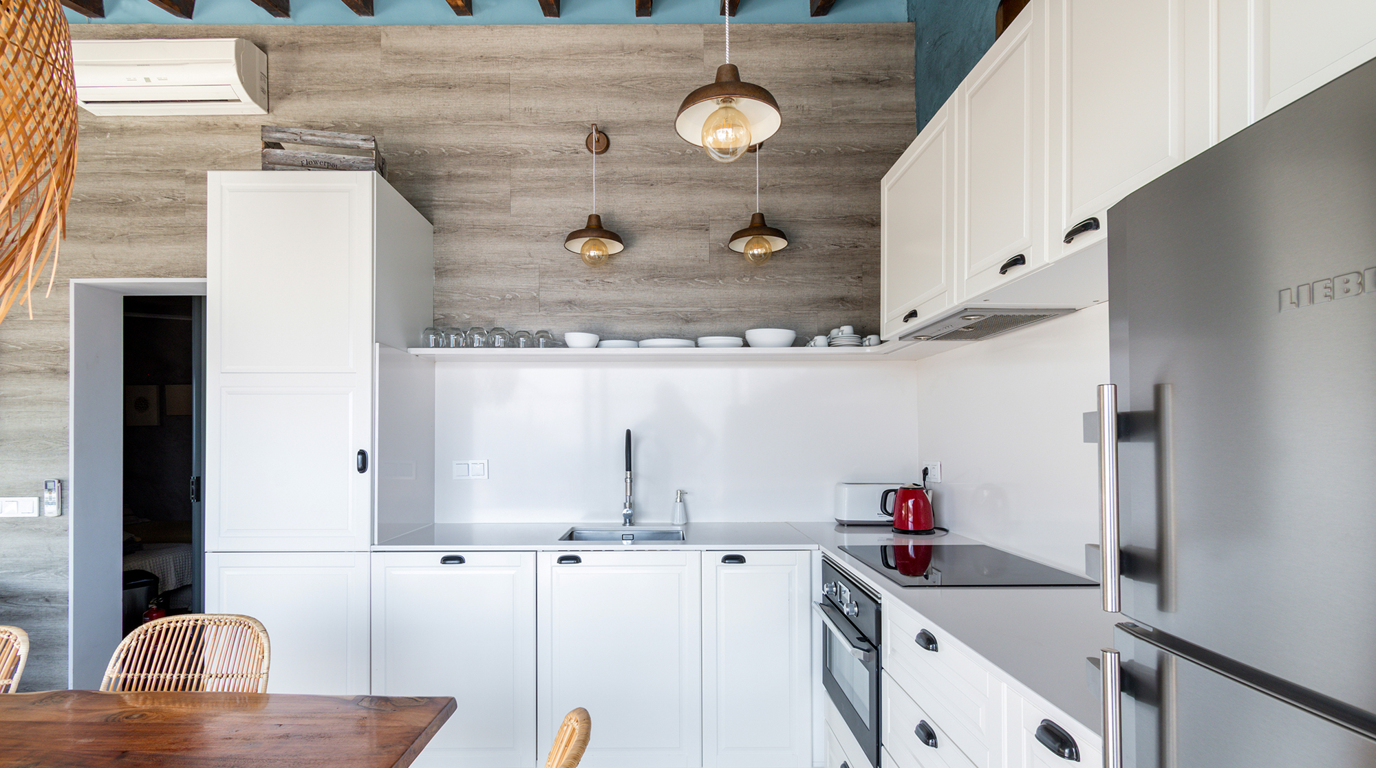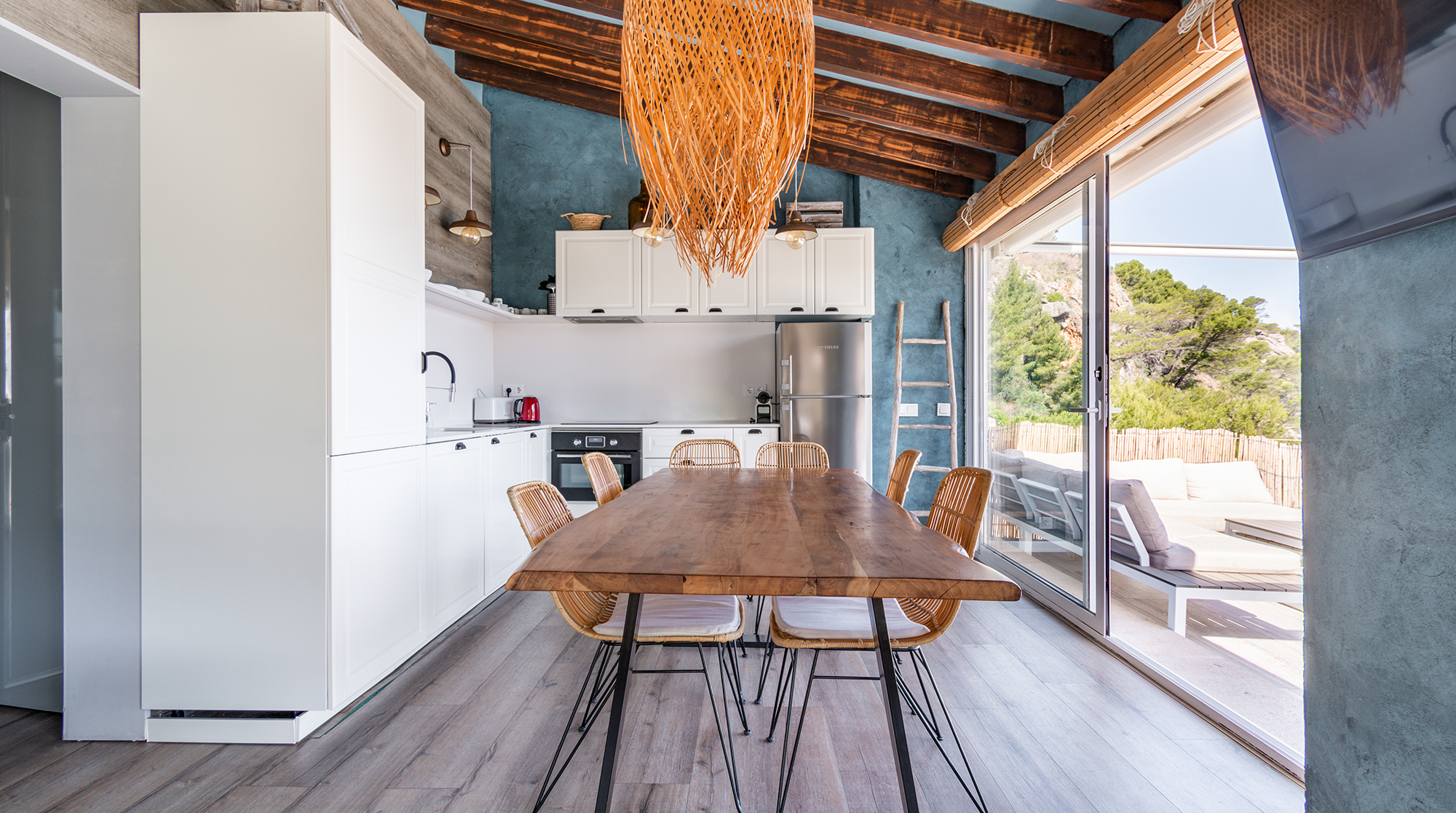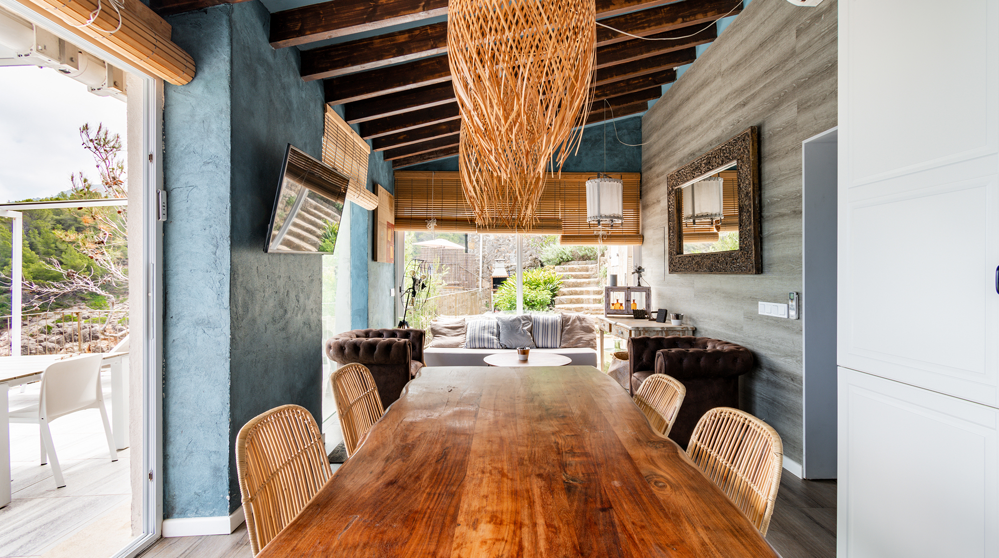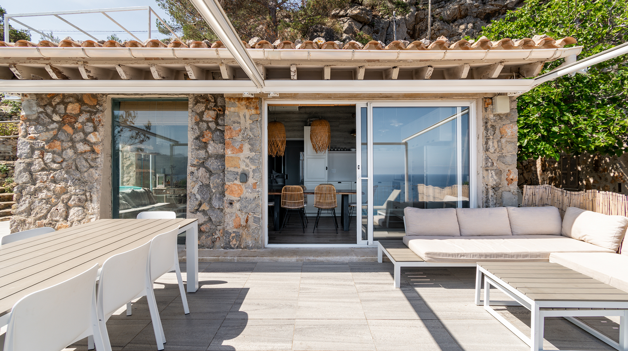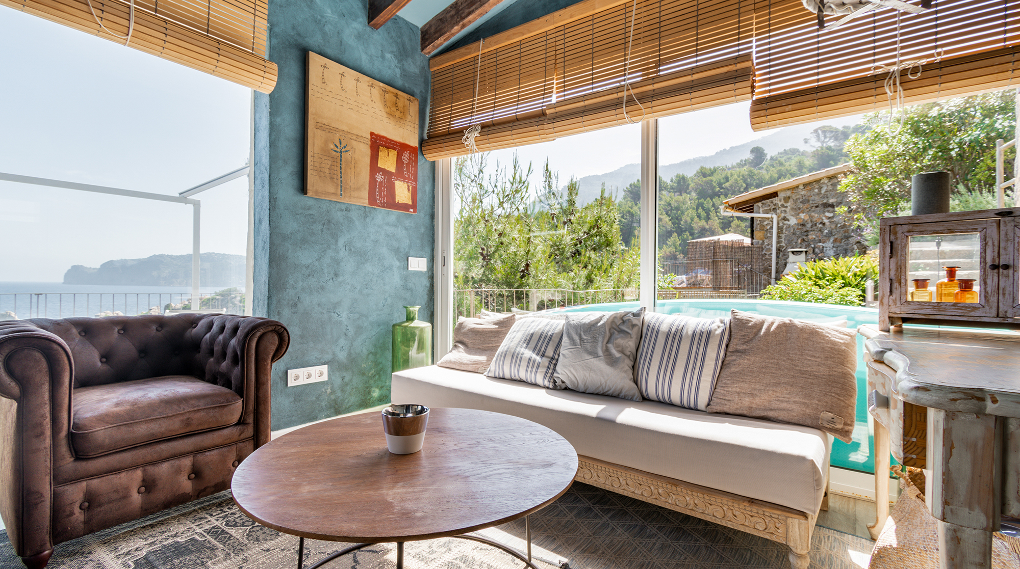 With a privileged setting right on Cala Deià, this home has breathtaking sea and mountain vistas. Walk down the private path to the beach 50 metres away, relax by the crystal clear waters, and then head for a sublime seafood lunch at one of two restaurants. Or let your host, Jordi, charter a yacht or organise helicopter flights to see more of the island.Back at this gorgeous home, sip some Cava in the jacuzzi – we adore the views. Inside, there's a boho-chic vibe with Chesterfield armchairs and raffia light shades. The place consists of two separate homes with private entrances, so it's perfect for a family or friends wanting more privacy. Jordi's family built this house when there were no roads here, and they had to use boats and donkeys to carry everything over. Without a shadow of a doubt, we can say their efforts were more than worth it – it's a truly magical place.