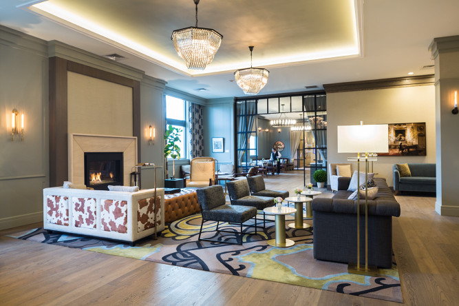 DELAMAR West Hartford seamlessly integrates into this dynamic city by energizing your senses and enabling you to discover whimsical intricacies throughout the property. Upon entry, our guests are welcomed into an open and airy space with soaring ceilings and interior elements influenced by the streamlining movement of the 1940’s. Standing out amongst a warm, comfortable palette of colors and textures are surprising items such as a bench made of quarters and a star made out of comic books that have been cut into tiny butterflies. Discover our inviting nooks and be lured into enjoying a coffee and your favorite book, or experience the rotating art exhibit curated by the New Britain Museum of American Art.