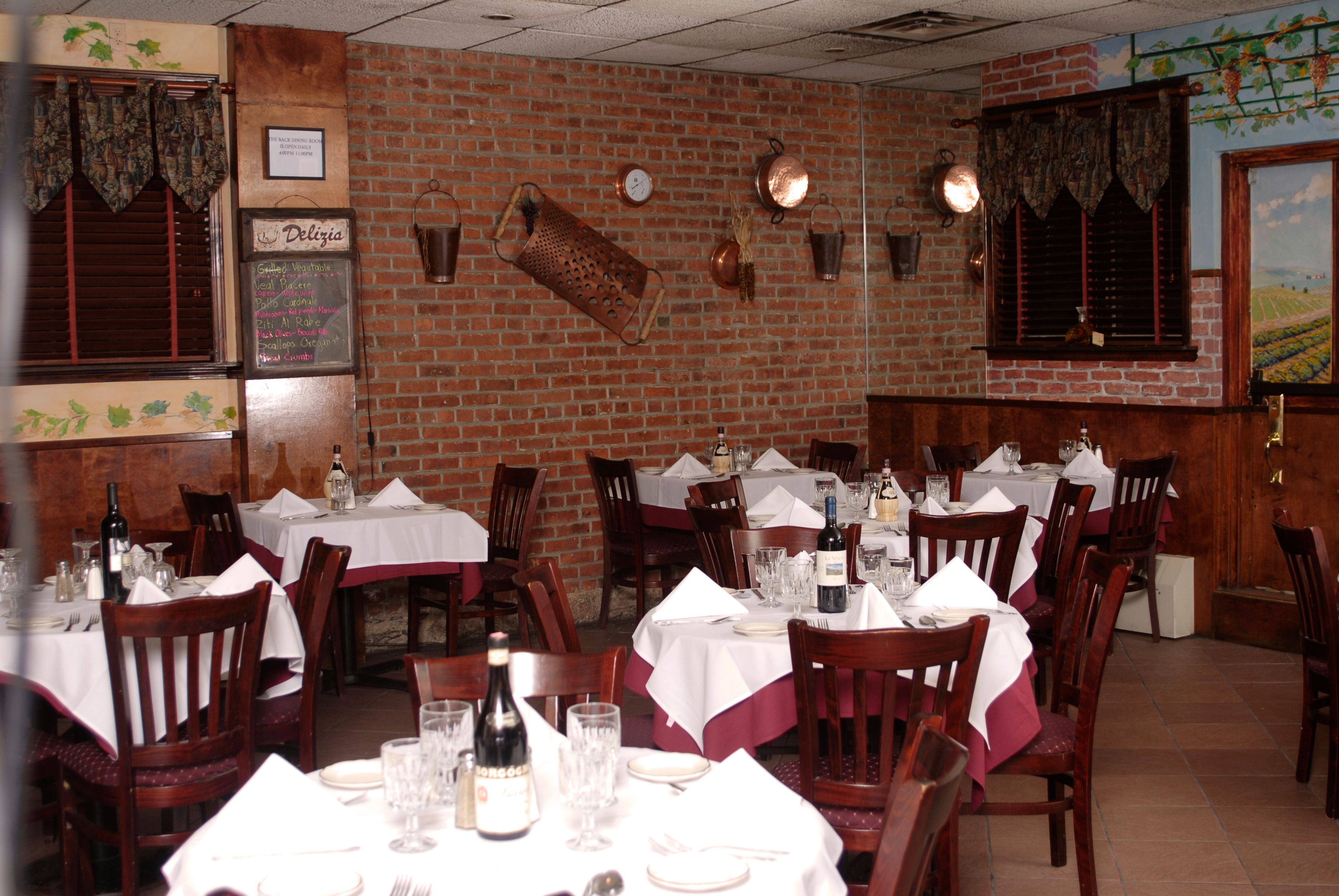 WELCOME TO DELIZIA 73Since 1983 we have had the honor of celebrating many joyful occasions with our guests, their friends, and families. -Our cozy back dining room has been a "neighborhood well-kept secret" for years. Come enjoy some fine Italian dining and remember to check out our wine list. -Front dining area is more casual and allows for a quick bite or have our waitstaff take your order and let us do the rest.