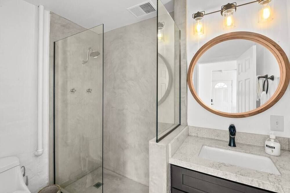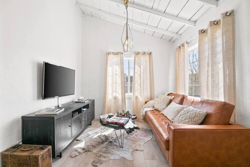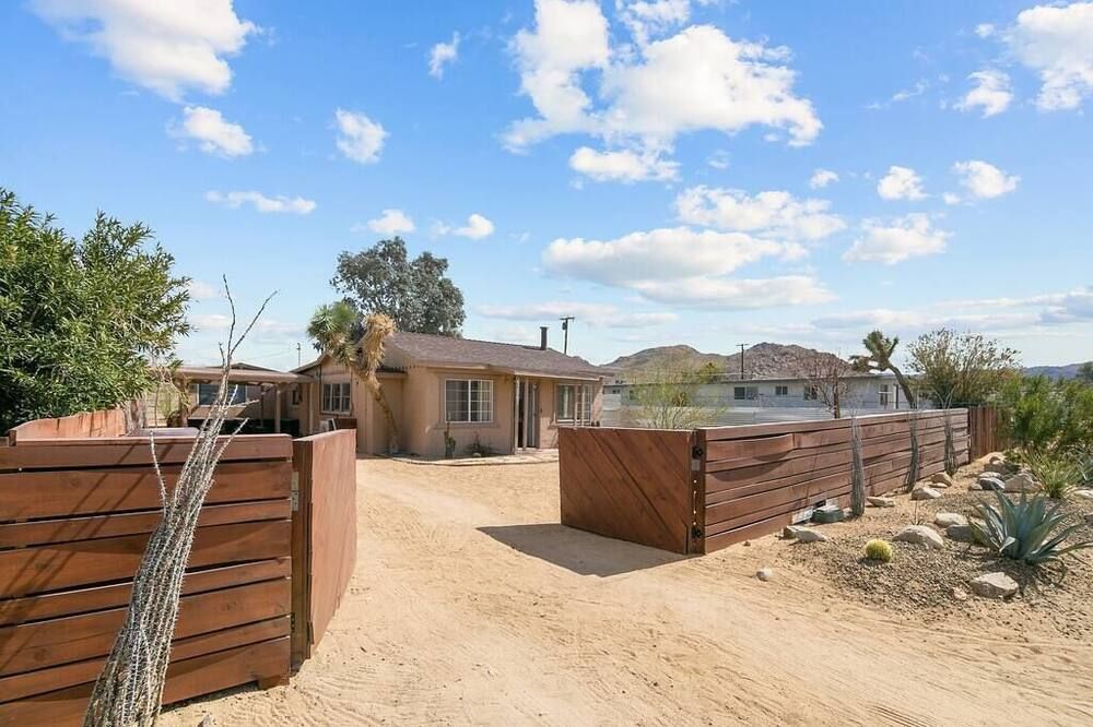 Kick off your shoes at the front door of this beautiful desert sanctuary and leave them off for the duration of your stay. Here’s a place to unplug your phone and completely relax. The traditional Mediterranean-style house sits on an acre of private land, with a dreamy backdrop of bright blue skies and Joshua trees. Come morning, grab a yoga mat for a stretch at sunrise, then cradle your coffee while overlooking the garden (keep your eyes peeled for the rabbits and chipmunks that come to visit). Days are spent lounging on day beds, cooling off in the deep end of the pool, and gazing at the ever-changing colours of the surrounding mountains. As the sun falls, fire up the barbecue, before taking a post-supper dip in the jacuzzi or breaking out the movie projector for a vintage cinema-style experience in the living room. If you can tear yourself away from your own personal oasis, the spectacular Joshua Tree National Park is less than a ten-minute drive away while Yucca Valley is just a short eleven-minute drive from home.