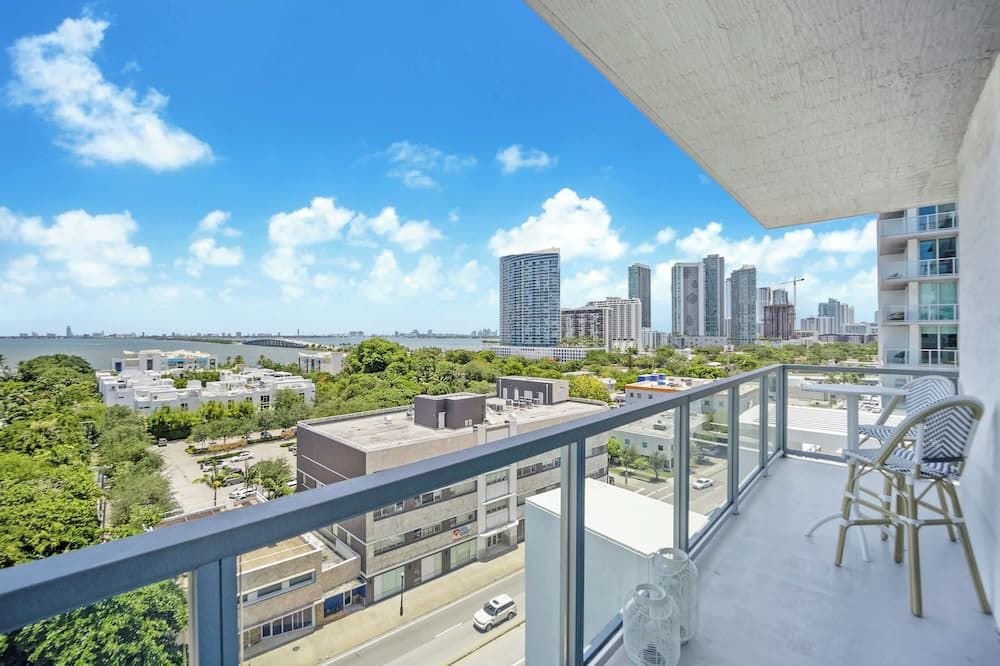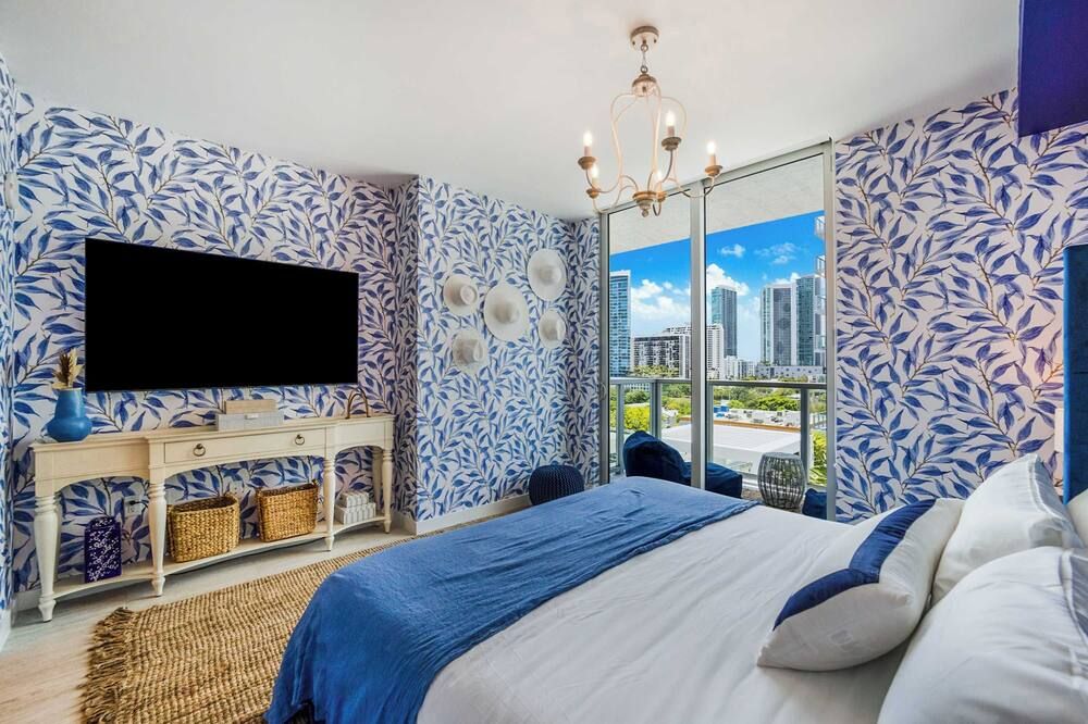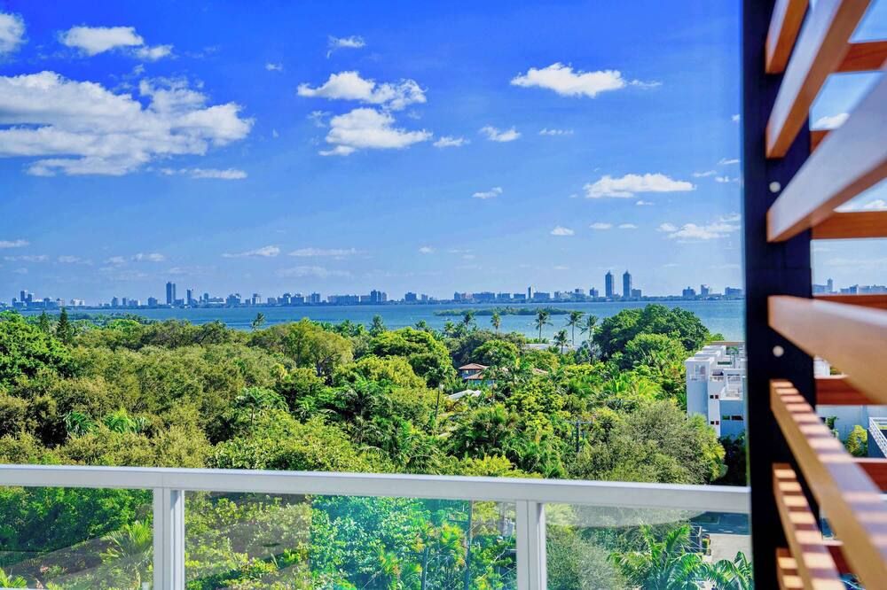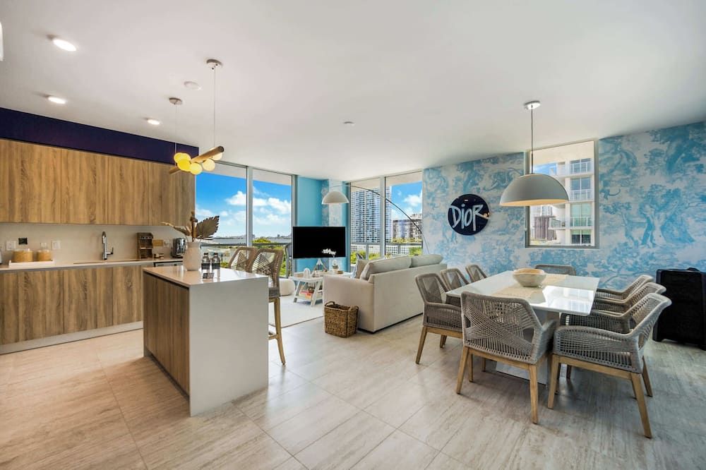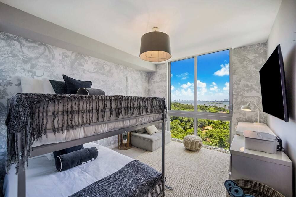 You may have to pinch yourself to make sure you're not dreaming when you see the wonderful vistas of Biscayne Bay from this exclusive North Bay Village condo. We love this elegant home, with its lofty living room with double-height windows, extracting every last bit of those incredible views. Thanks to the open-concept space, you can even see the fabulous outlook from the kitchen area when you're rustling up a Floridian feast. There are plenty of opportunities to relax in the fresh salty air here. Relax with a Mojito in the egg seat on your private balcony, or head up to the communal roof terrace and bag a sun lounger by the pool. With a bar, barbecue and more, we're sure you'll be spending plenty of time up on the roof. If you can tear yourself away, you'll be rewarded with some fantastic attractions nearby. It's just a ten-minute drive to Miami Beach if you want to feel the white sand between your toes (take the beach towels provided). Or, browse the interior design stores and art galleries of the Miami Design District – we could spend all day in this chic neighbourhood.