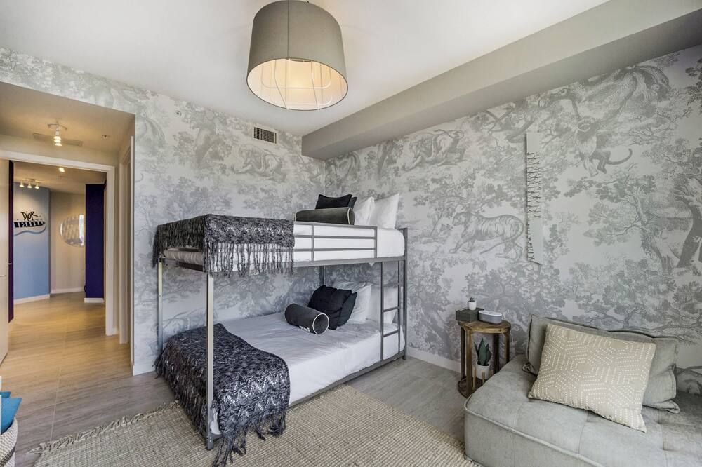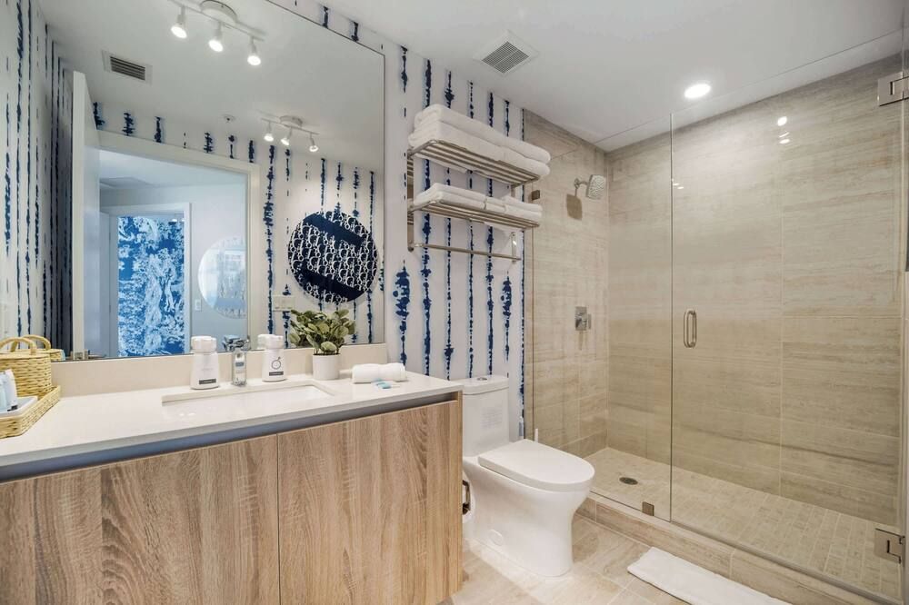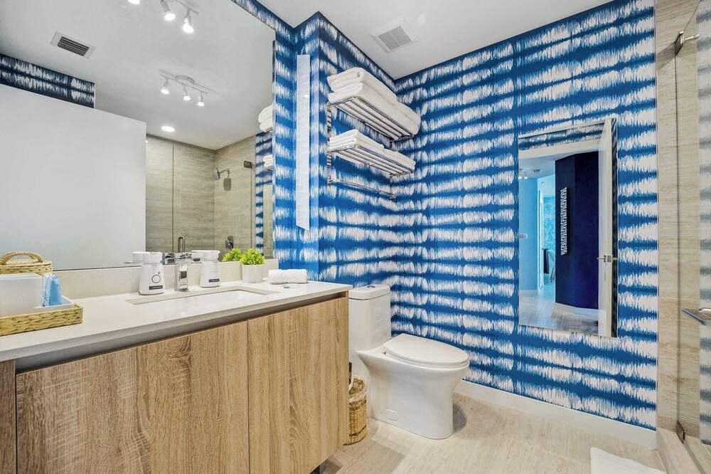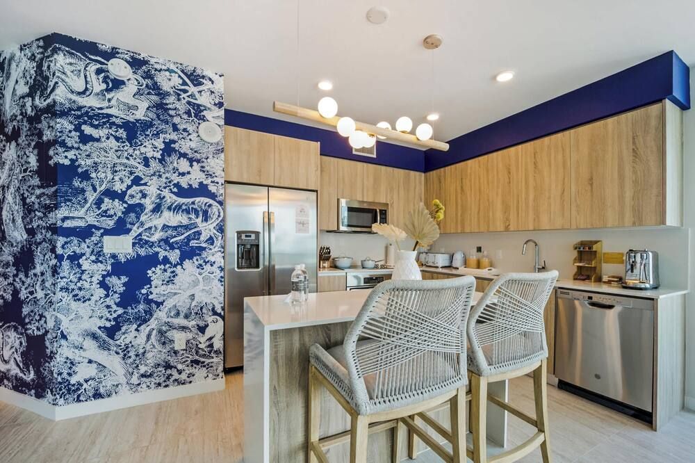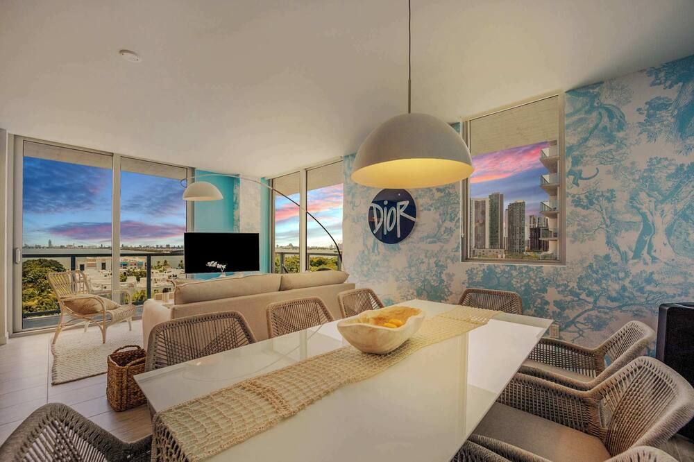 You may have to pinch yourself to make sure you're not dreaming when you see the wonderful vistas of Biscayne Bay from this exclusive North Bay Village condo. We love this elegant home, with its lofty living room with double-height windows, extracting every last bit of those incredible views. Thanks to the open-concept space, you can even see the fabulous outlook from the kitchen area when you're rustling up a Floridian feast. There are plenty of opportunities to relax in the fresh salty air here. Relax with a Mojito in the egg seat on your private balcony, or head up to the communal roof terrace and bag a sun lounger by the pool. With a bar, barbecue and more, we're sure you'll be spending plenty of time up on the roof. If you can tear yourself away, you'll be rewarded with some fantastic attractions nearby. It's just a ten-minute drive to Miami Beach if you want to feel the white sand between your toes (take the beach towels provided). Or, browse the interior design stores and art galleries of the Miami Design District – we could spend all day in this chic neighbourhood.