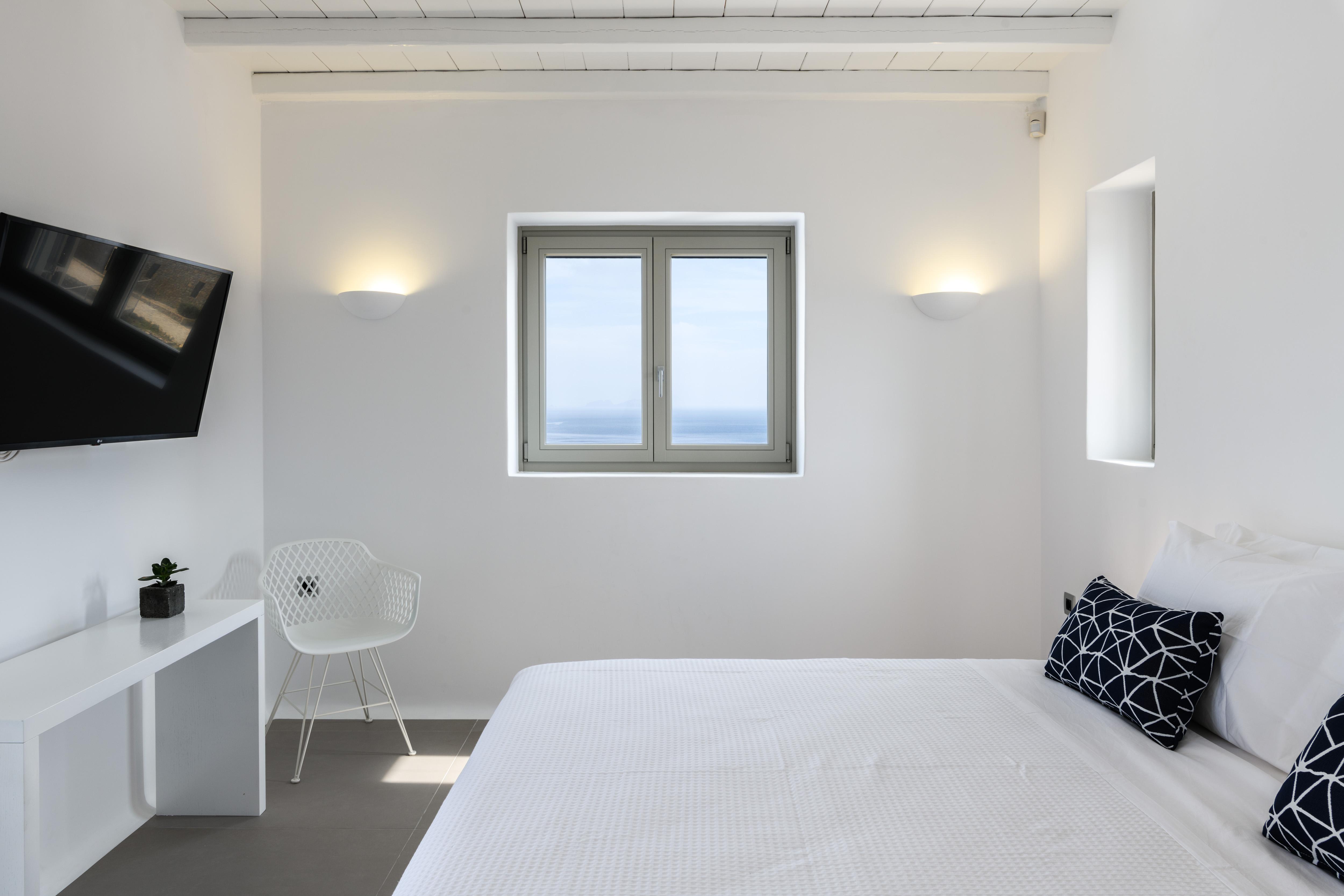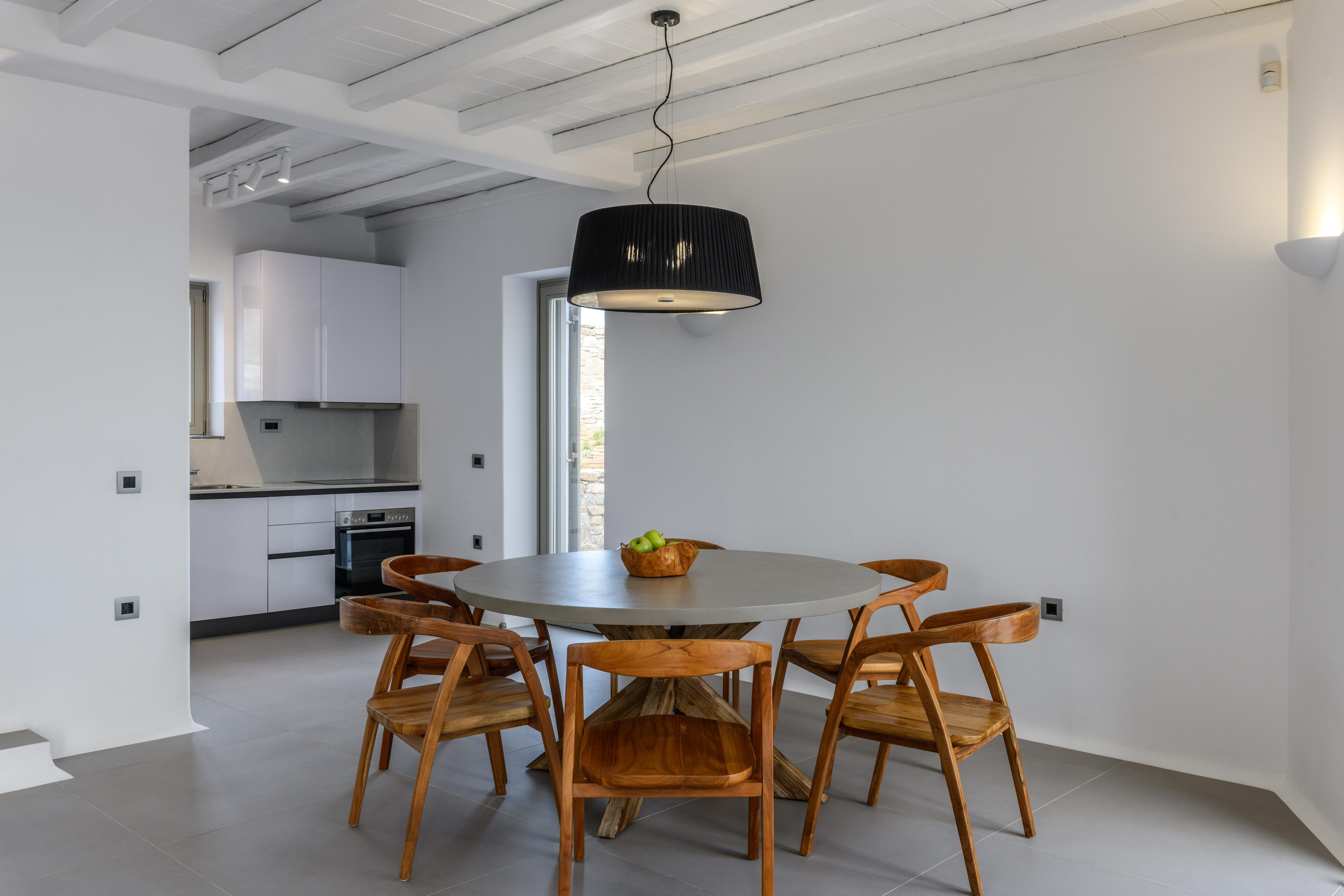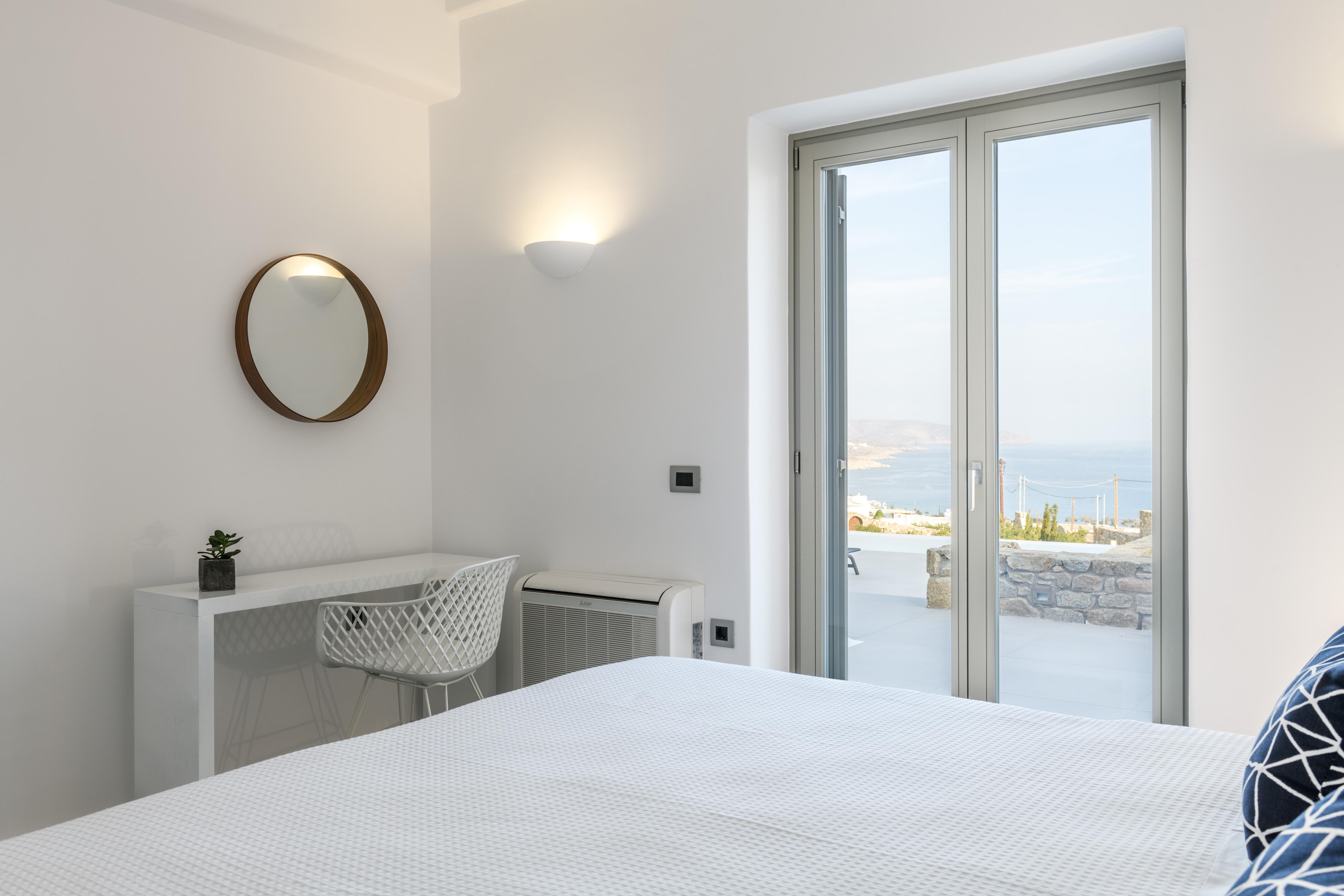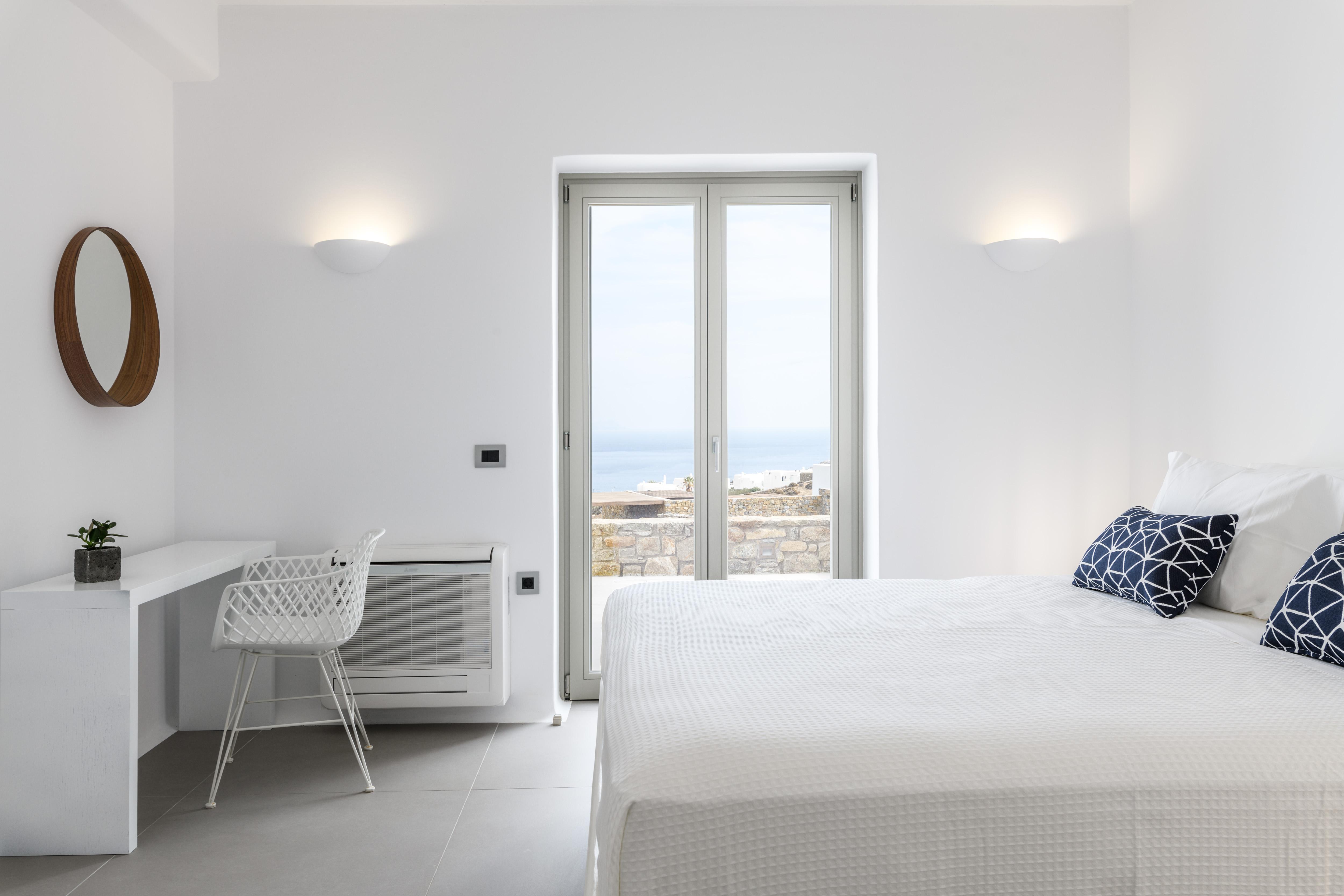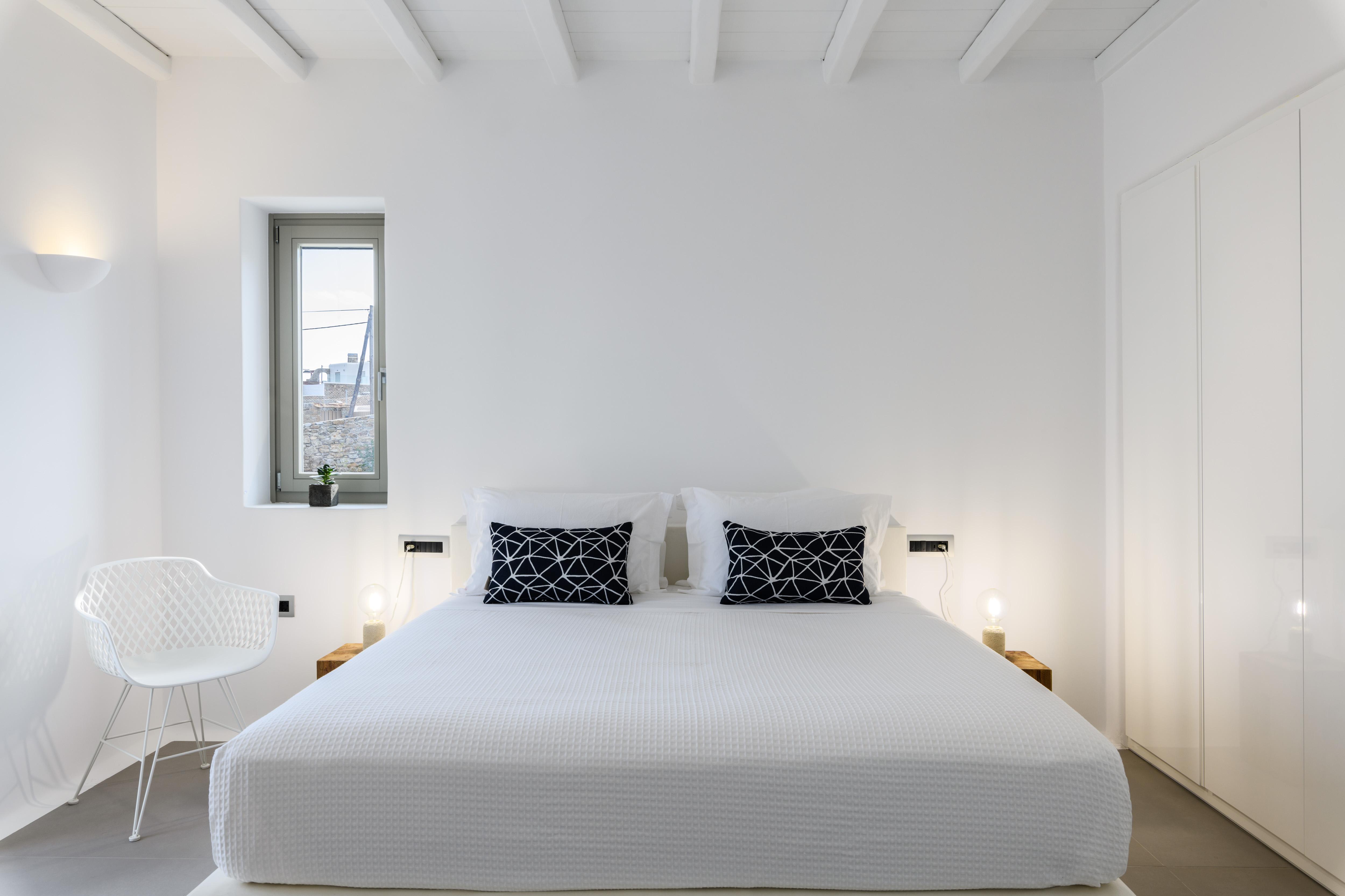 Comprising two sugar cube-style villas, this sprawling estate is perfect for large friendly reunions and multigenerational family get-togethers. From the pools flanked with sunbeds to the Cycladic-inspired interiors, effortless Greek island living is the way here. Mornings begin with breakfast on the terraces, catching up over freshly strained yoghurt and honey, before finding a spot to while away the hours in the sunshine. Should you need to take a break from the heat, the minimalist living spaces are the perfect place to unwind with an ice-cold beverage. And if a midday snooze sounds tempting, retreat to quiet bedrooms and fall back into sumptuous beds. In the afternoon, slip on your sandals and take the fifteen-minute stroll to Kalafati Beach for golden sands and crystal clear waters. Explore a little further afield with a seventeen-minute car ride to Mykonos town – famous for its windmills, labyrinthine streets and white-washed buildings.