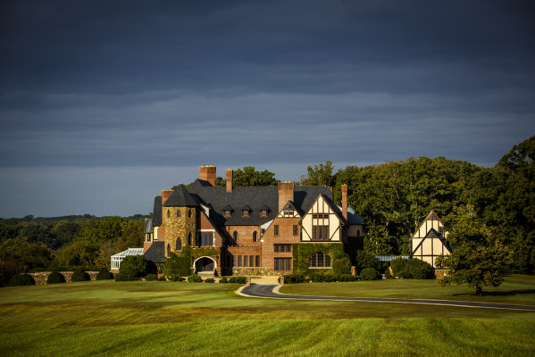 Nestled amidst the rolling hills of Manakin-Sabot, Virginia, Dover Hall stands as a refined, English Tudor-inspired estate. This extraordinary 38,000-square-foot castle emanates grandeur and tranquility on its sprawling 55-acre grounds, tucked away in the equestrian country of Goochland County.