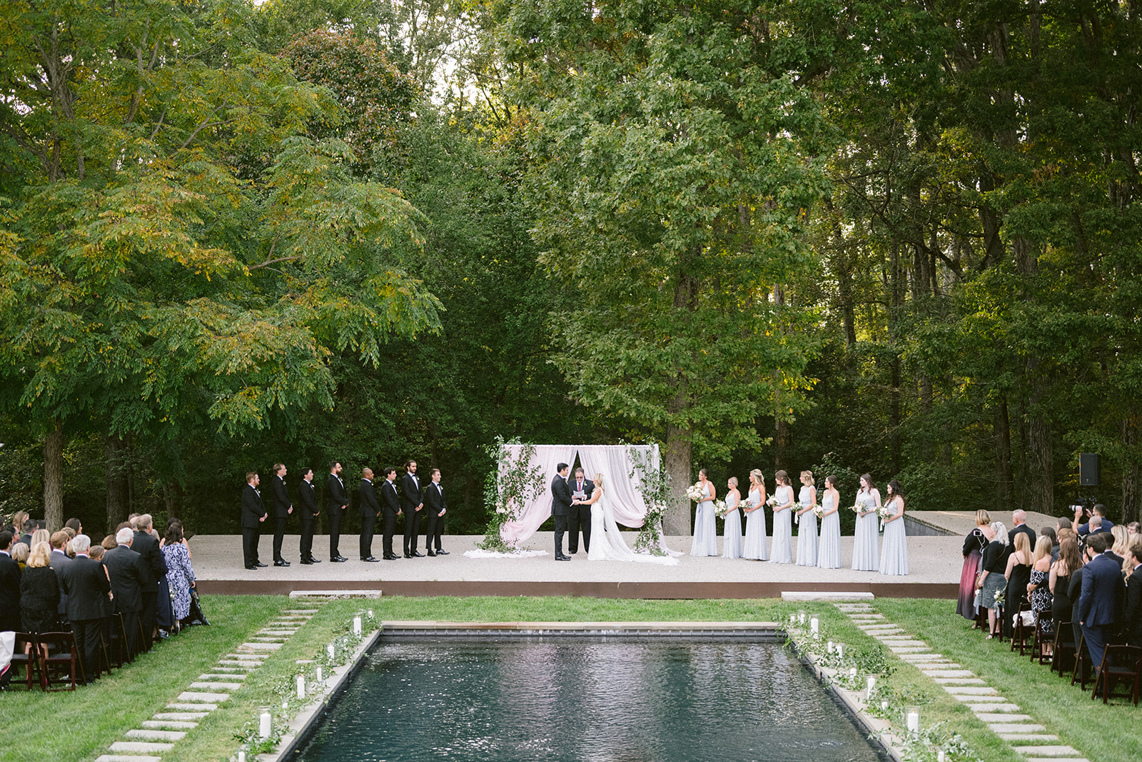 “Our luxurious getting-ready suites create a perfect environment as you prepare for your special day. Explore our cherished ceremony sites, including our reflection pool, luxurious ballroom, two-tiered garden, or blue stone terrace.”