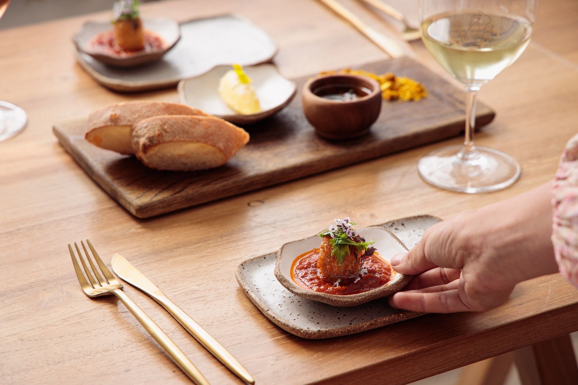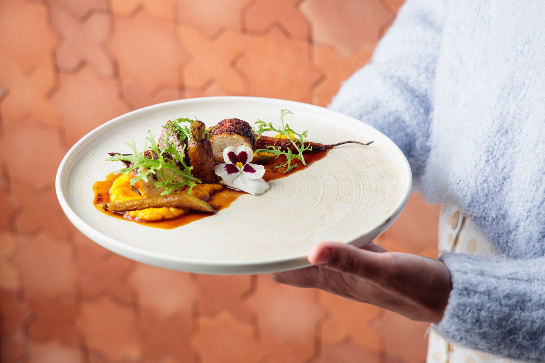 An unforgettable lunch by Executive Chef Nick Tadija has been crafted to be enjoyed leisurely over two hours. We will take you on an experience of culinary indulgence, filling your table with an abundance of food to share. We are passionate about using the best local, seasonal, and organic produce we can get our hands on. This is a set menu.We cater to dietary requirements and preferences, including gluten free, vegetarian and vegan. For any dietaries that may be specific to you or your guest, please feel free to contact us if you have any questions.Please be aware this is designed as an adult restaurant experience. There is no children’s menu available in the restaurant. All seated guests, including children, must be booked and will be charged at the full fee.Please note our restaurant is inside and pets are not permitted unless of service.Mangiamo | Let's Eat $95 per personDolce | Dessert $18 per person Alora! lascia che ti diamo da mangiare. Now! Let us feed you.
