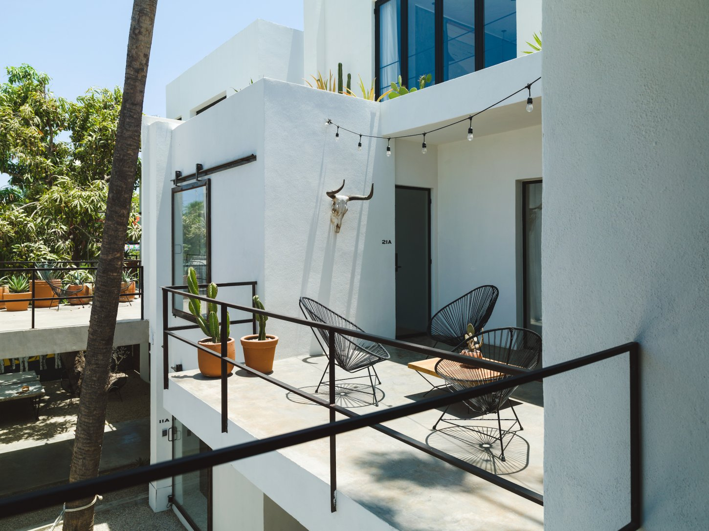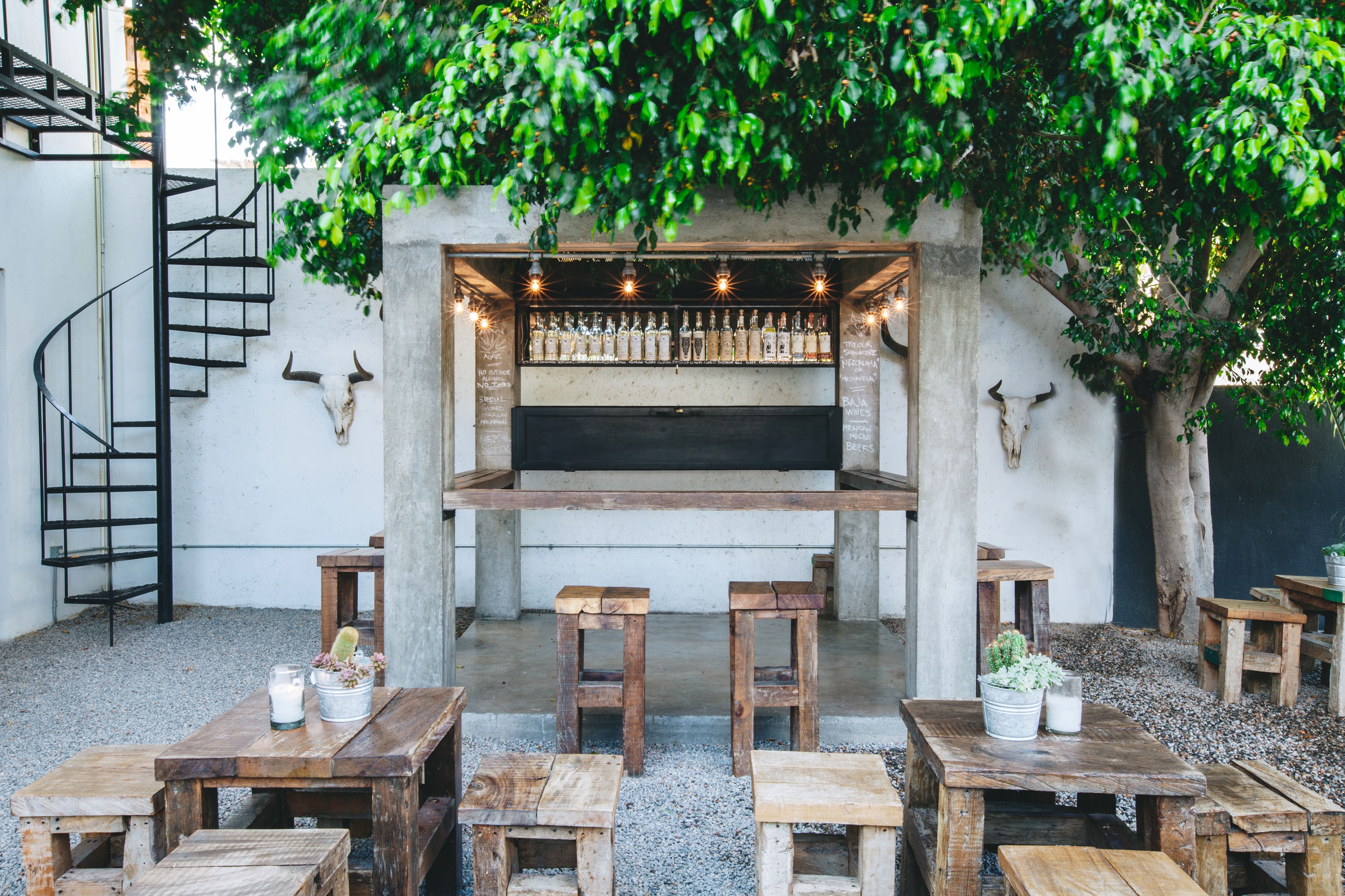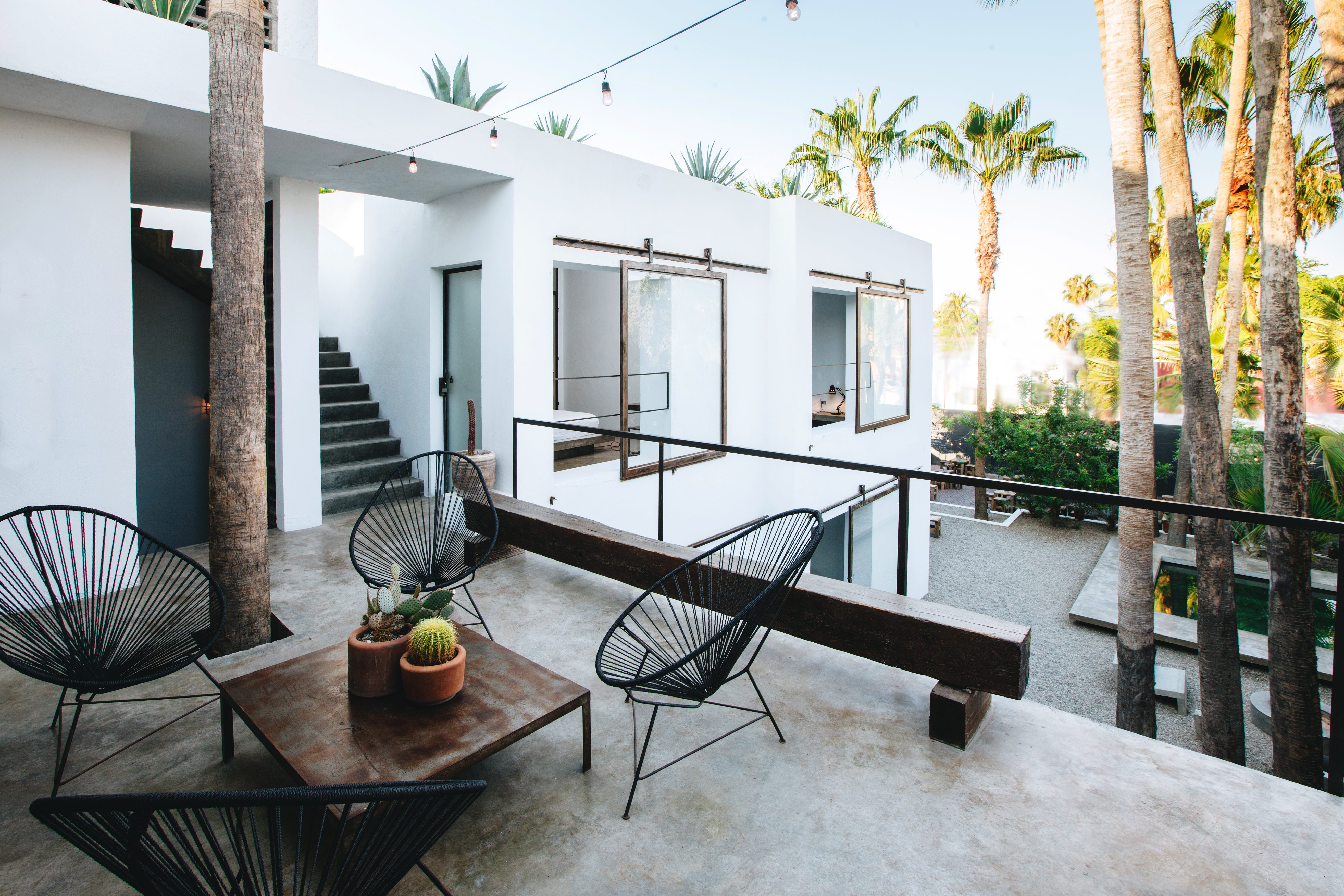 A design hotel inspired by modern Baja ranch life - guest rooms have rustic concrete finishes and industrial style windows that open onto a palm filled courtyard. The Mezcal Tasting Bar features a large selection of rare artisanal mezcal, Mexican micro beers and Baja wines. Located on Hidalgo, between Obregon and Comonfort. Adults only.