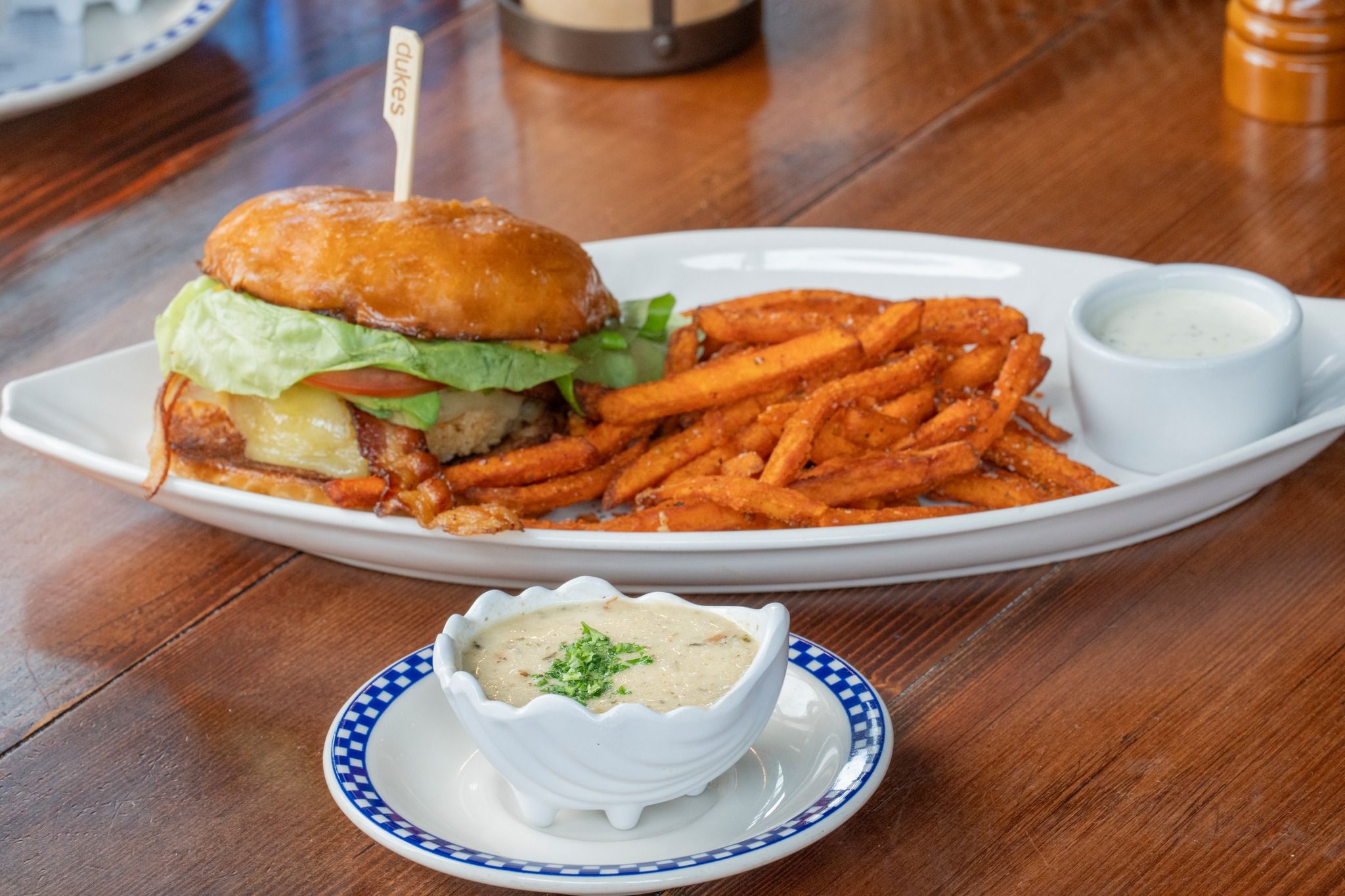 Duke's Greenlake Restaurant is an upscale casual Pacific Northwest seafood restaurant & bar offering signature, flavorful, 100% sustainable wild seafood, Award Winning Chowder and grass-fed burgers in a gathering place that is friendly, comfortable, unpretentious and filled with personality. We only source all-natural, healthful ingredients. Duke's food is free of hormones, antibiotics and free of harmful chemicals. Guests sum up their favorable assessment of what Duke's Seafood has to offer with three words: It’s so good!