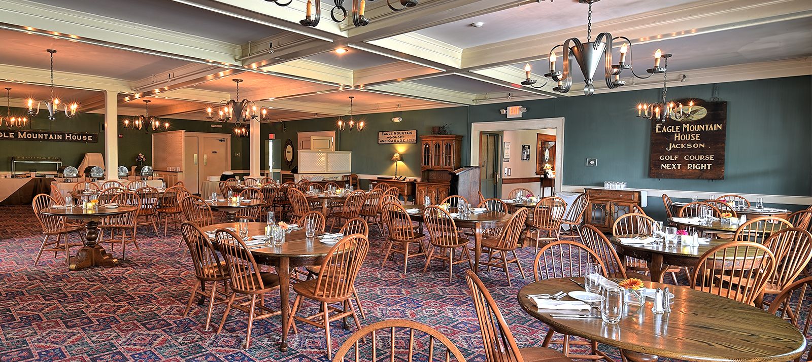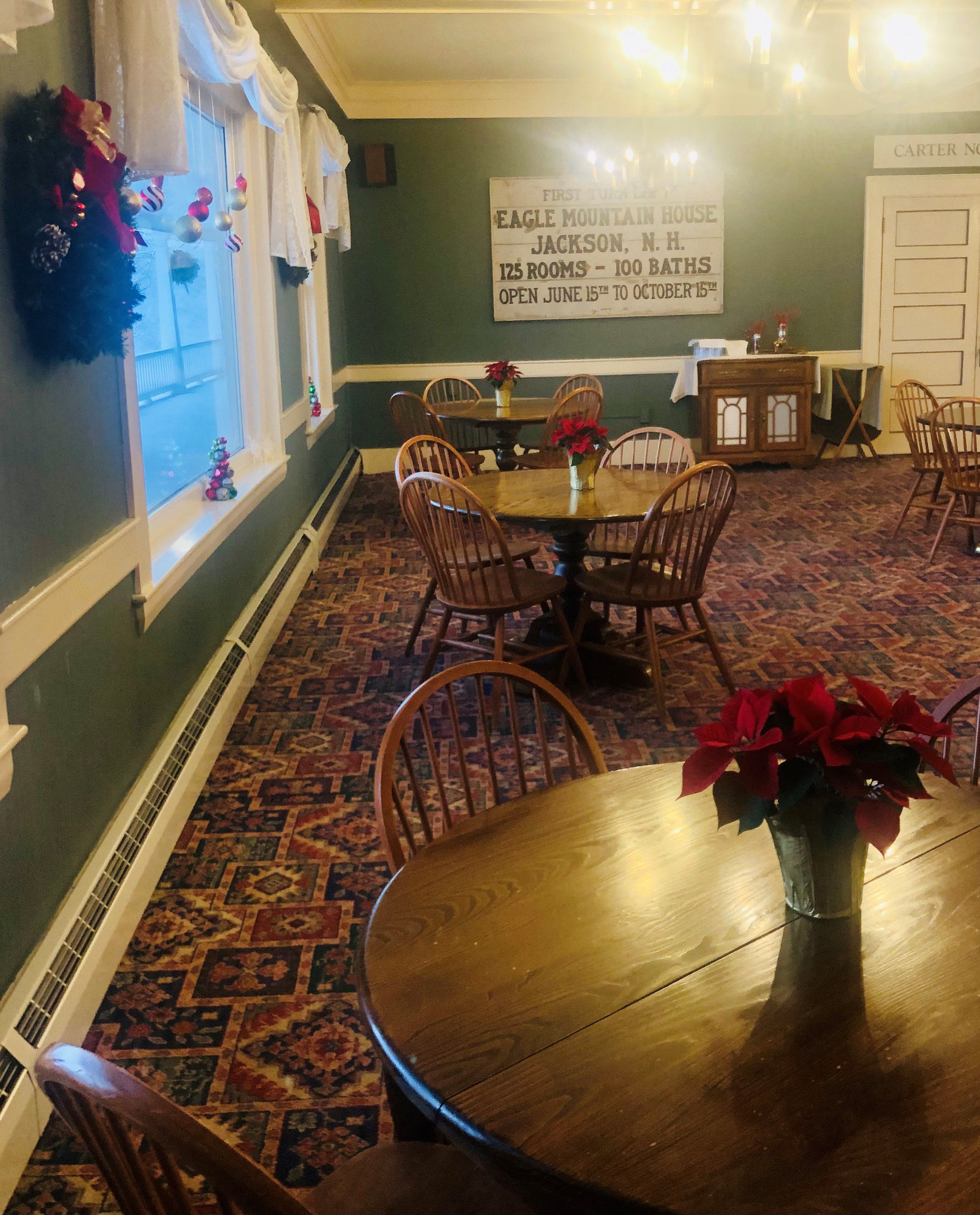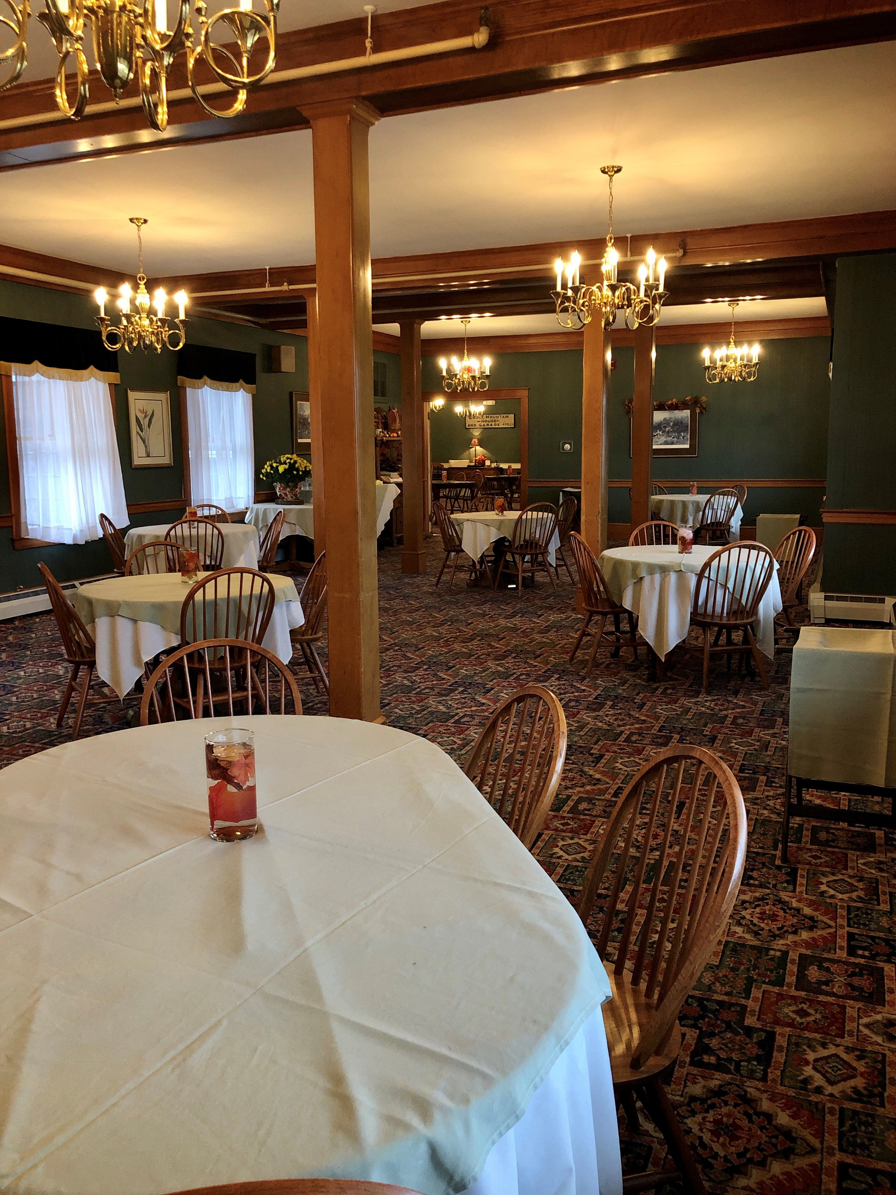 Eagle Landing Tavern & Restaurant is located within the Eagle Mountain House Hotel & Golf Club. Dinner is available Thursday thru Monday nights starting at 5:00pm, with the Tavern open for drinks at 4:00pm. Enjoy our twist on classic comfort cuisine and craft cocktails with nostalgic views of the White Mountains, and the Wildcat River in our family-friendly restaurant. Reserve a table in our historic Highfields Dining Room, or the Tavern. We cannot wait for you to be our guest!