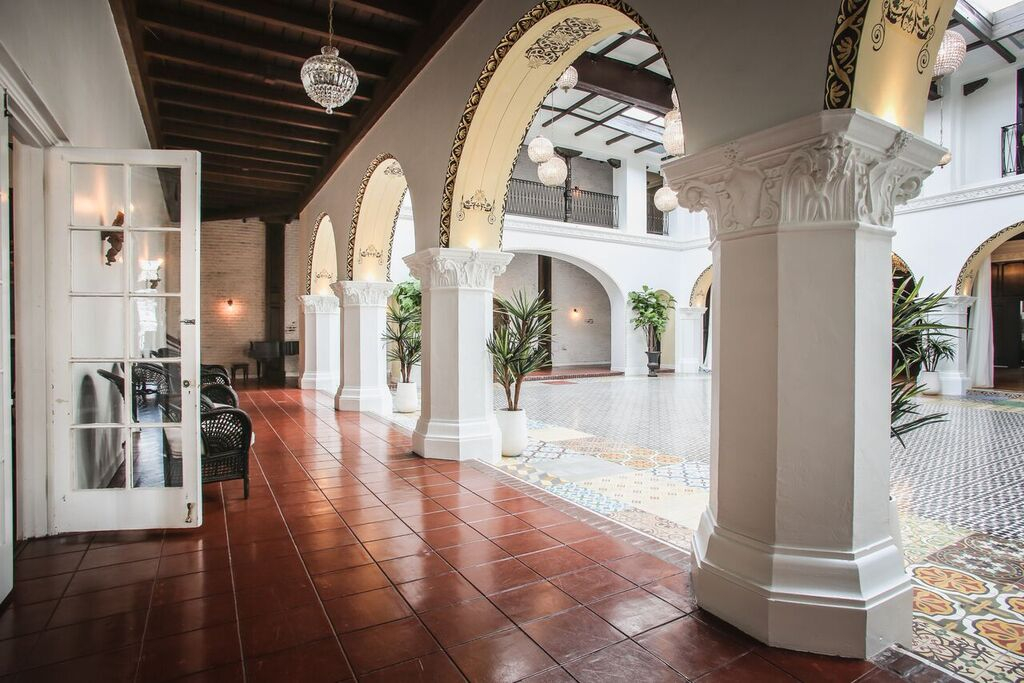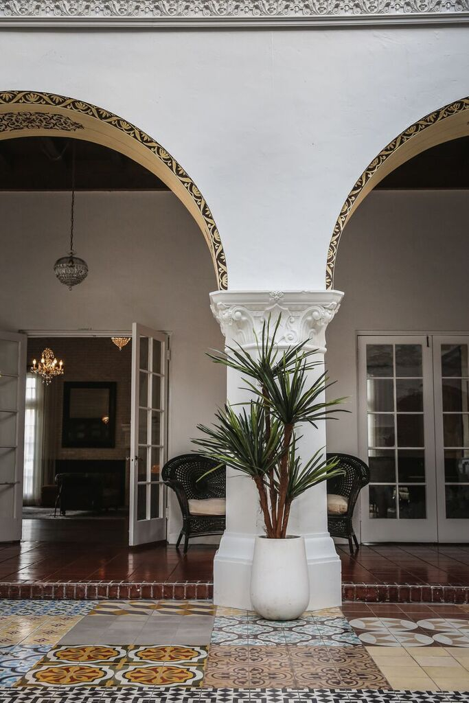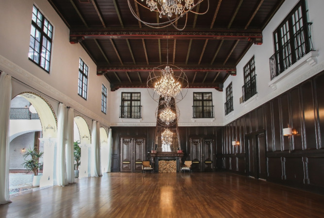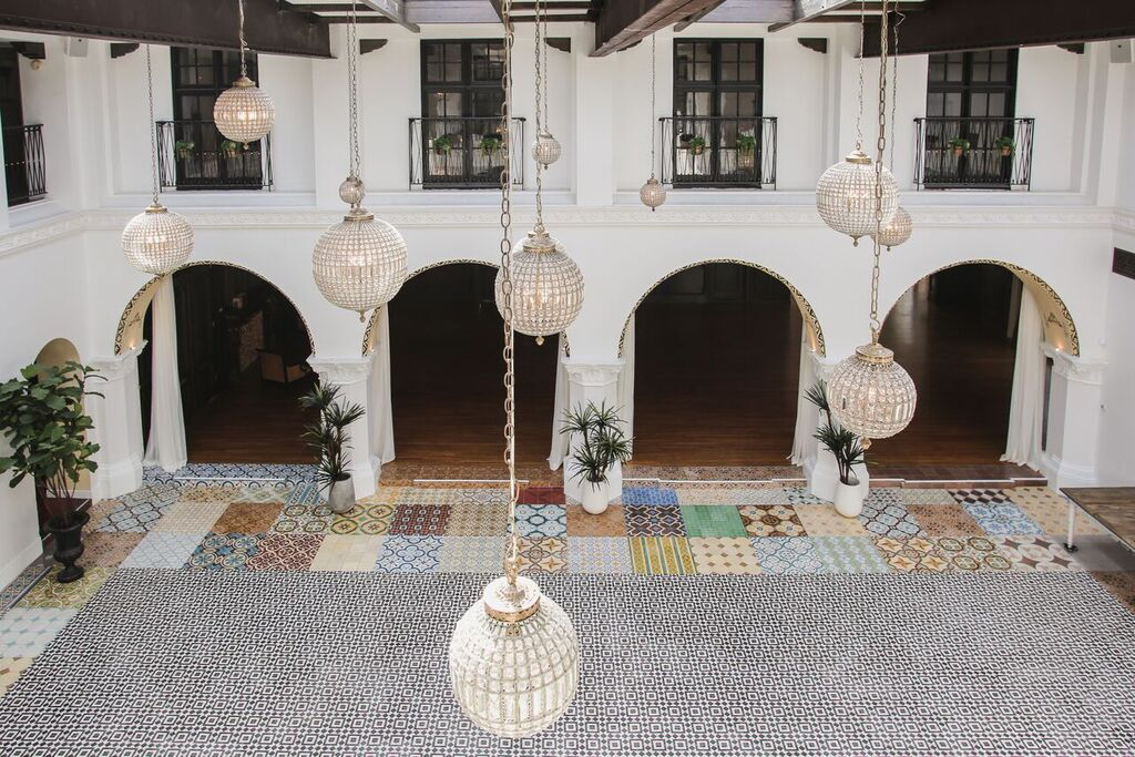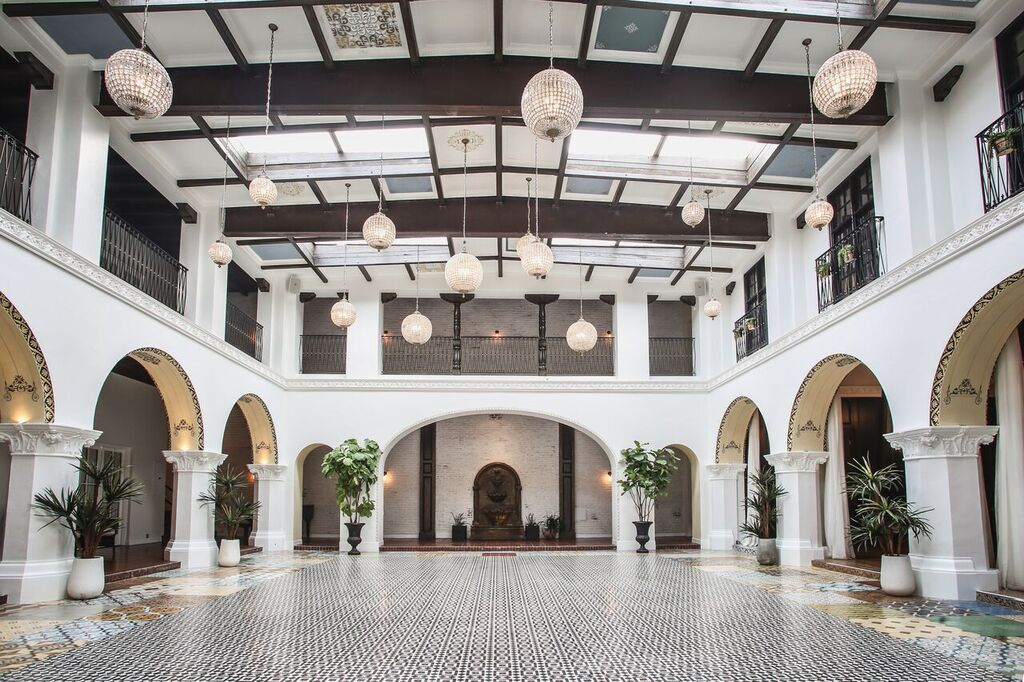 Of gorgeous 1920's Spanish Revival design, this former women’s club has been carefully restored to become a stylish 17,200-square-foot event space. Exposed brick, detailed archways, hand-stenciled ceilings, ornate fountains, and a sky-lit covered courtyard.