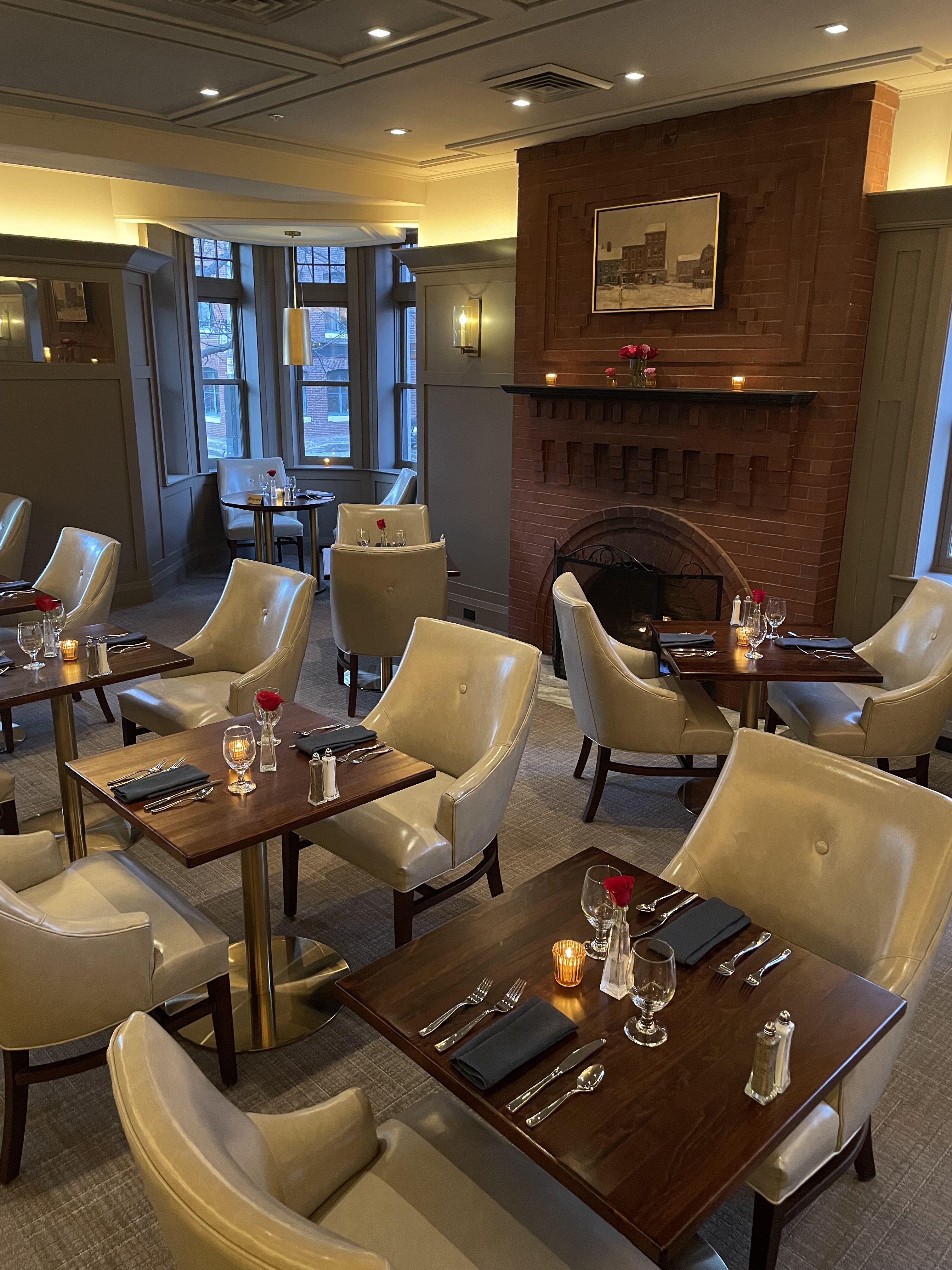 eighteen95 offers warm, intimate décor, punctuated by softly lit chandeliers and a lovely brick fireplace. Located on the Lobby level of the Portland Regency Hotel and Spa. Complimentary Valet Parking is available.Currently serving breakfast or brunch 7 days a week. eighteen95 serves special menus on most holidays, check our website for details.