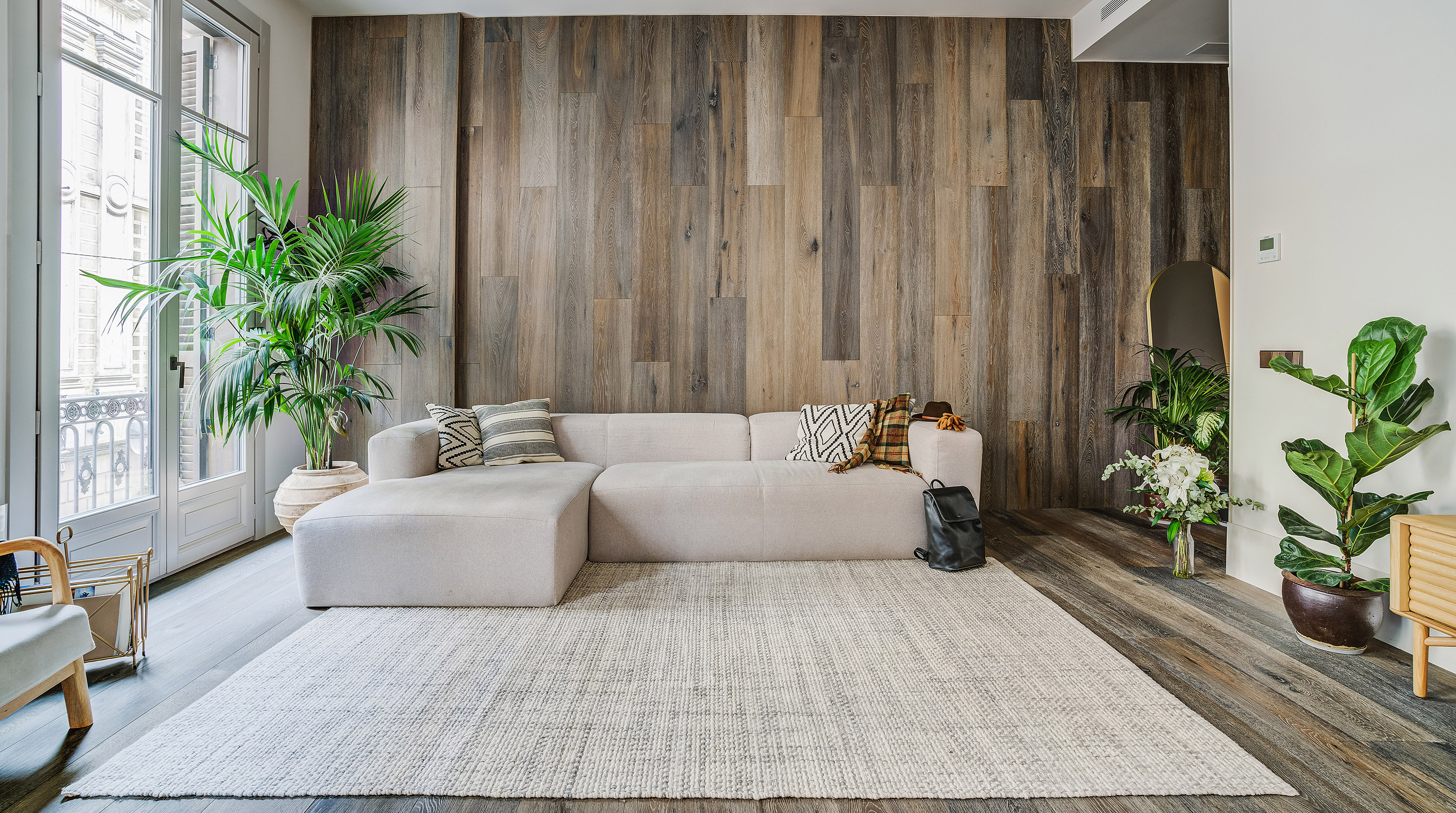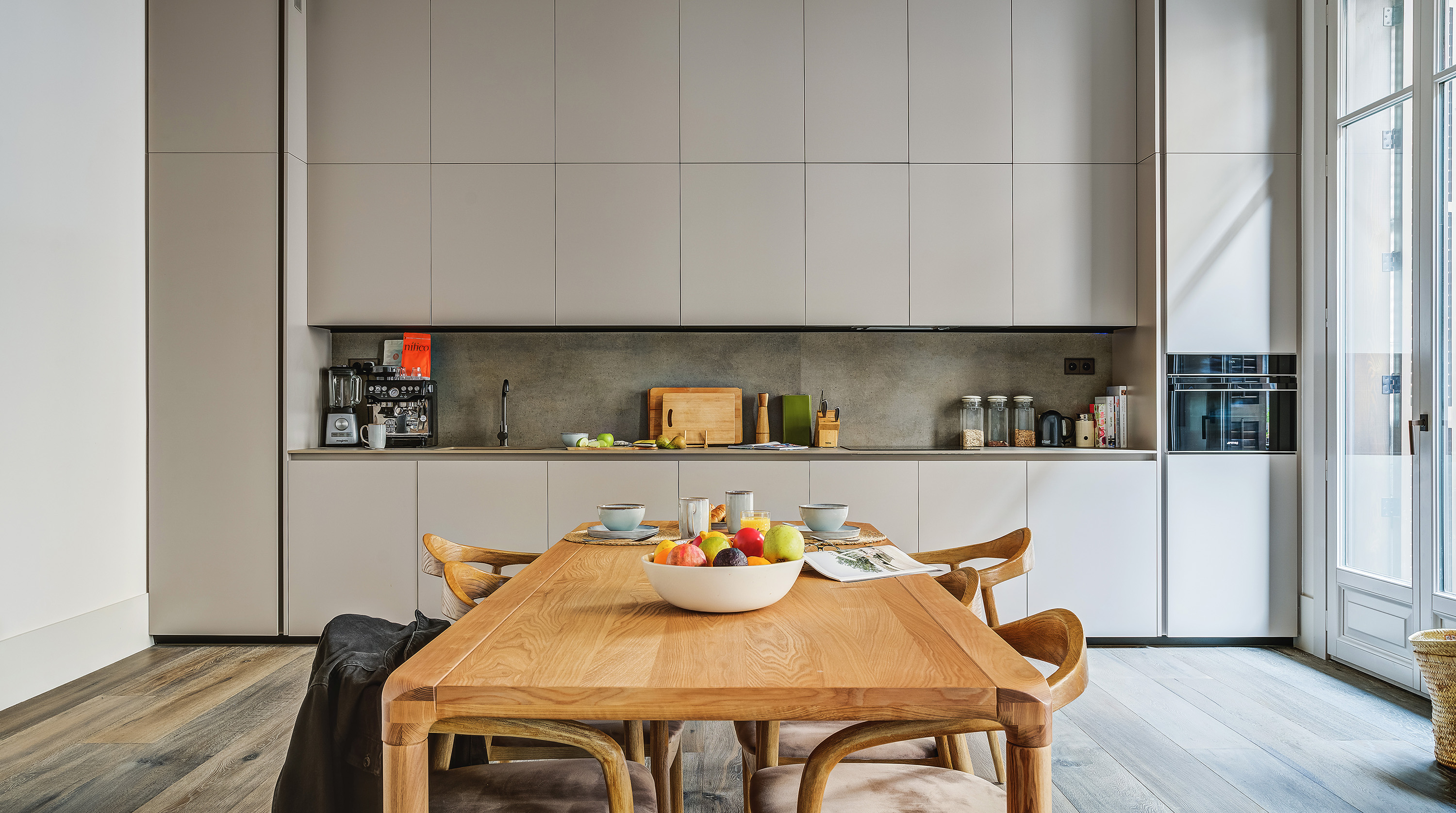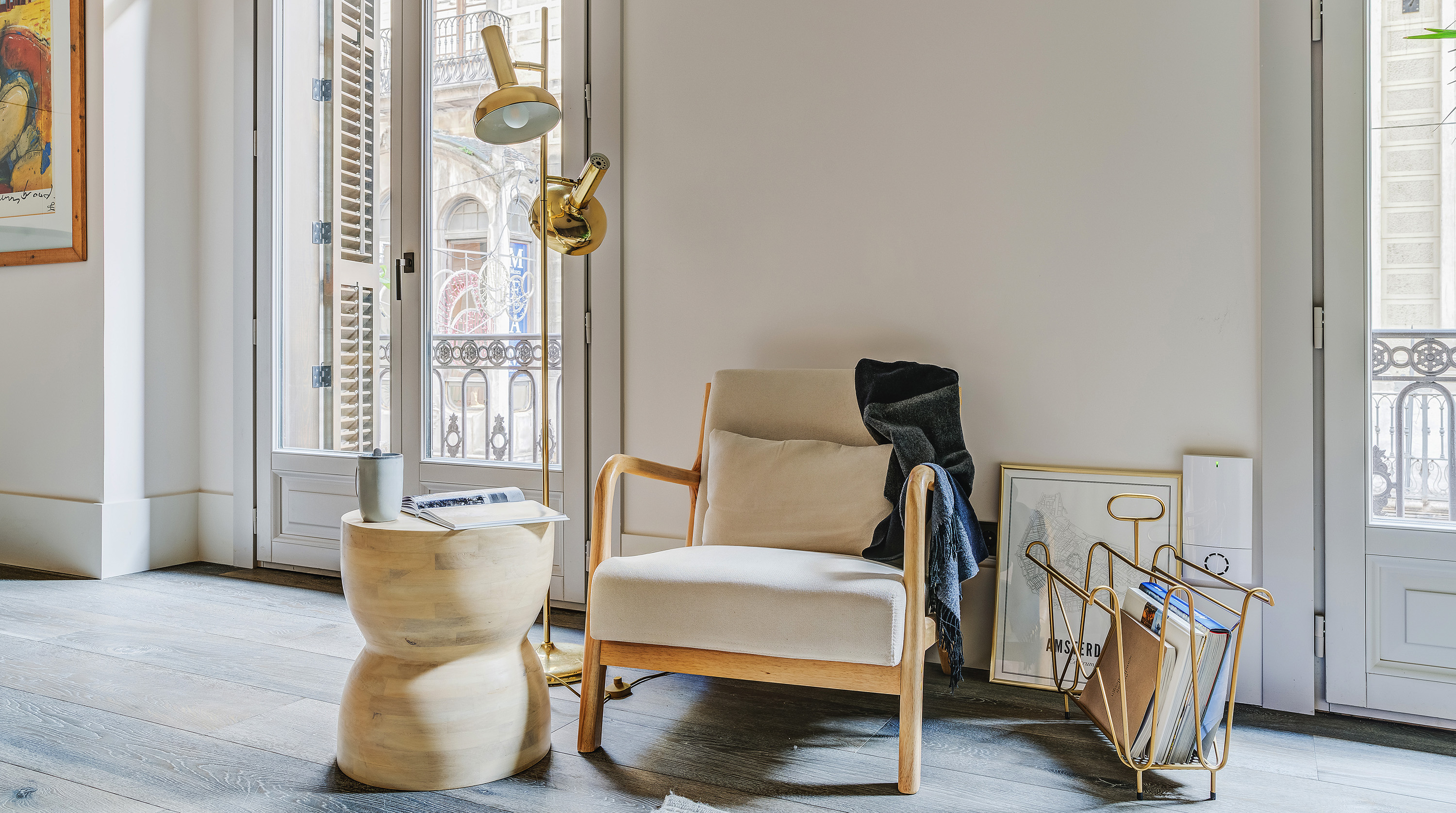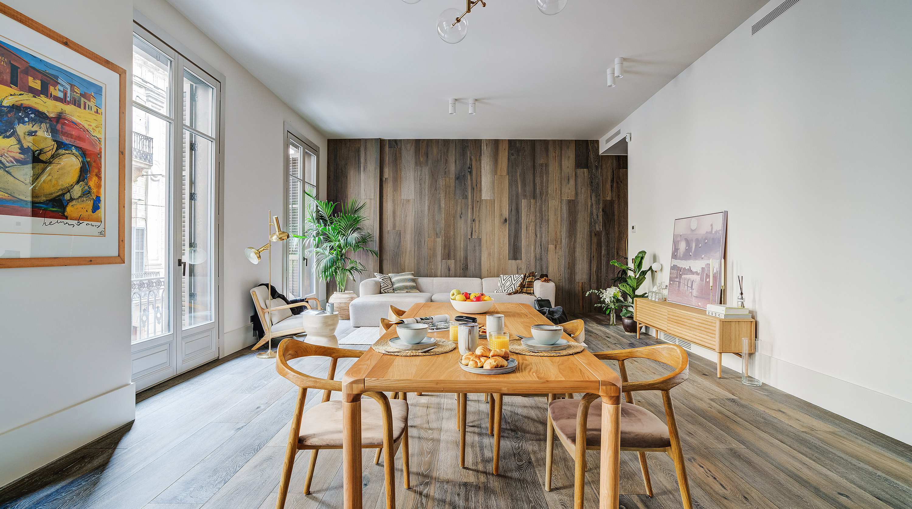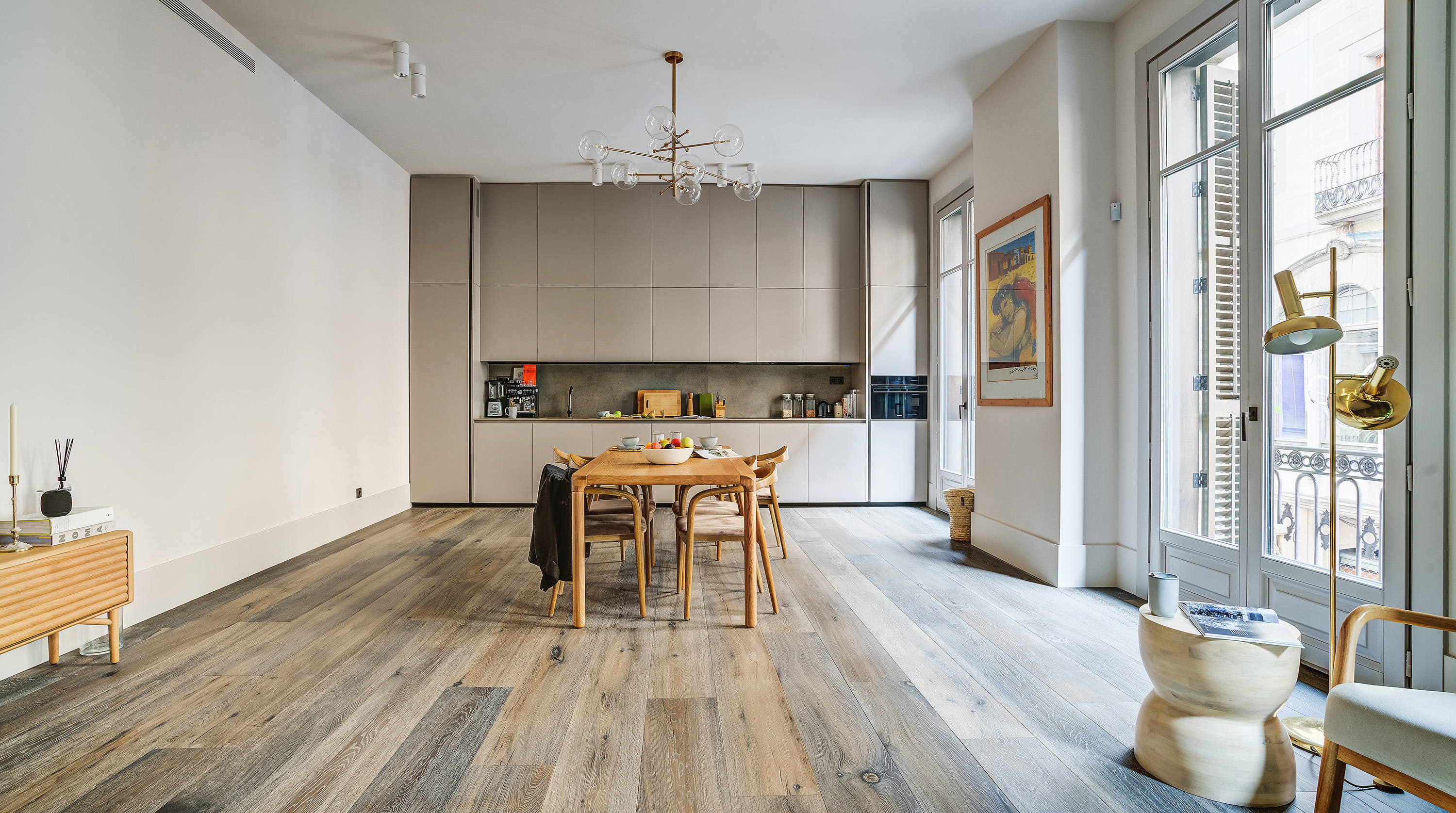 Set within a historic building in the heart of Barcelona's El Born neighbourhood, this recently refurbed loft-style apartment brings the interior bang up to date. The open plan living room and kitchen is absolutely stunning, with plenty of natural light thanks to French doors that open out onto a private balcony. At one end, there's a comfortable corner sofa unit with a sleek, minimalist kitchen at the other, and in the middle, you'll find a gorgeous mid-century-inspired dining table and chairs. Head through to the bedrooms, and you're in for a treat, with dried flowers, live plants and a lovely neutral colour scheme that adds to the zen feeling. The direct balcony access is the cherry on top. Step out onto the street, and you're well located to explore the best of the Catalan capital. Seek out some culture at the Picasso Museum is just around the corner, followed by a visit to the bars of Passeig del Born just a few minutes away, and make the most of sunny days with a visit to the iconic urban beach Playa Barceloneta, a twenty-minute stroll from your front door.