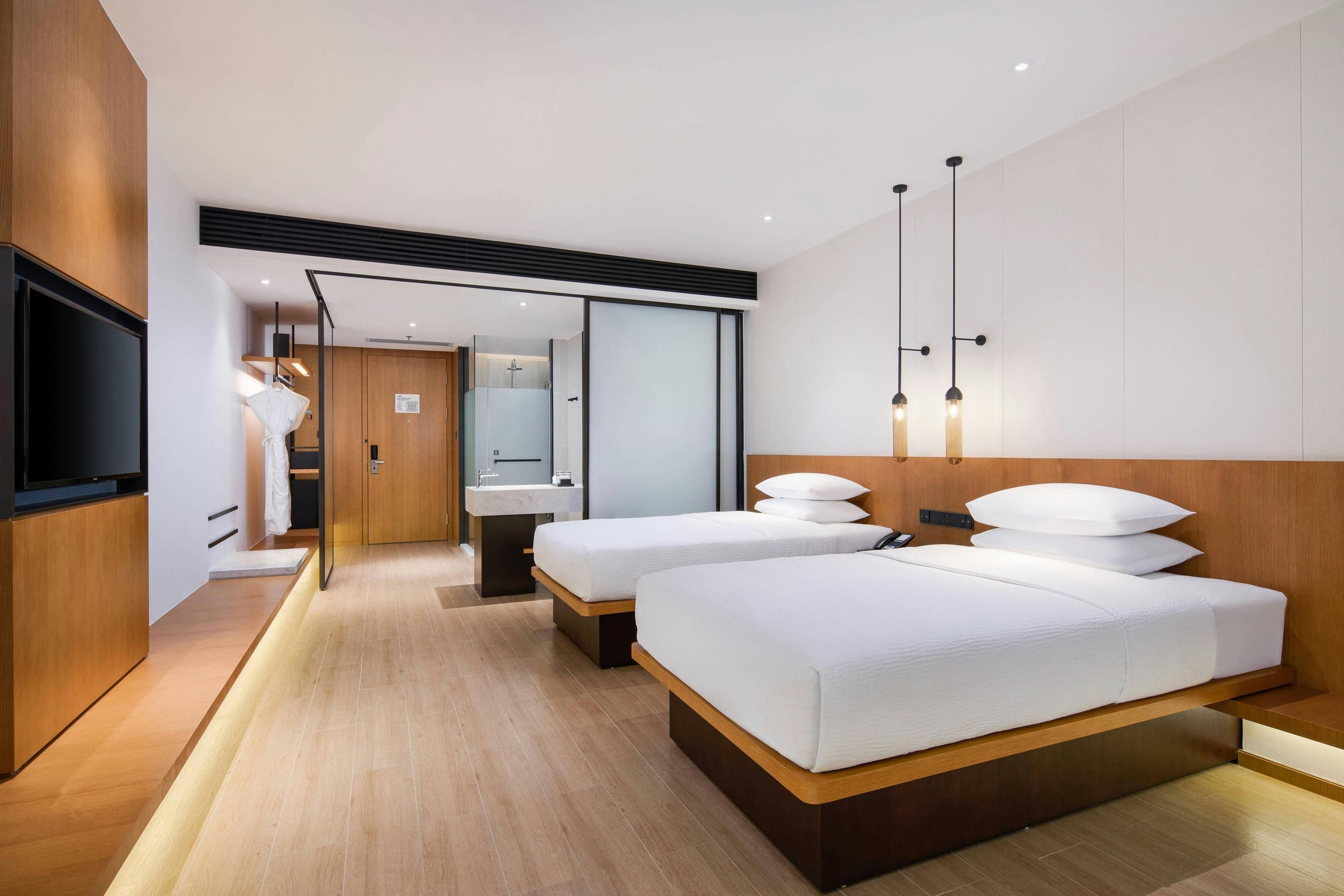 Guest rooms at the hotel are equipped with a TV and a safety deposit box. At Fairfield by Marriott Foshan Nanhai each room is fitted with a private bathroom with free toiletries and a hairdryer.