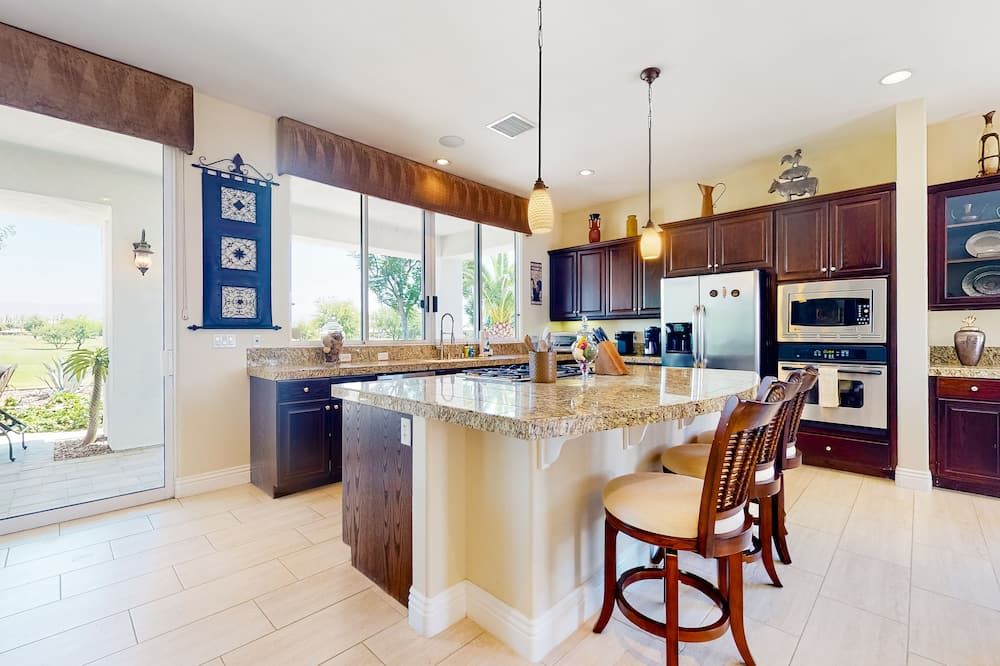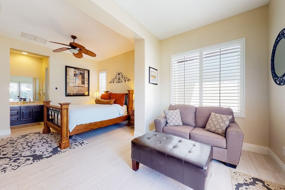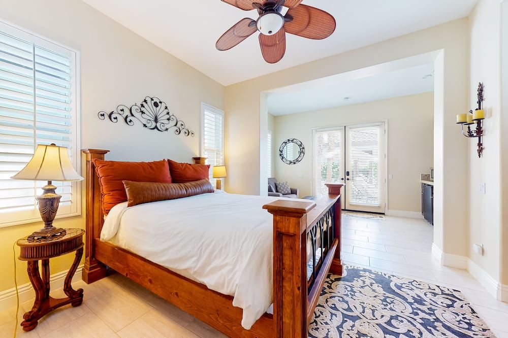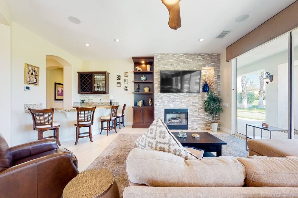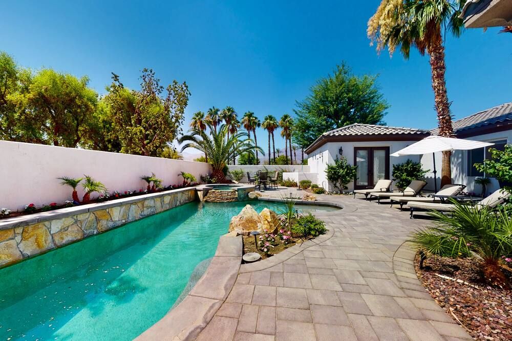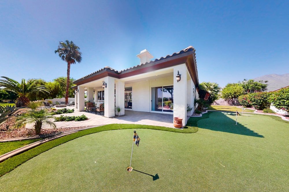 Perched right on the edge of the golf course, Fairways is the perfect spot if you’re coming to La Quinta to practice your swing. It’s right on the Jack Nicklaus Private Course (part of the legendary PGA West complex) while the slightly smaller (but no less lovely) Palms Golf Club is at the end of the street. The home itself is clearly a labour of love for the host, Karen, and she’s kitted it out with everything you could need. As well as the obligatory pool and fire pit, there’s also a BBQ island, a pool table, and an enormous outside TV, so you can enjoy the game from the water.