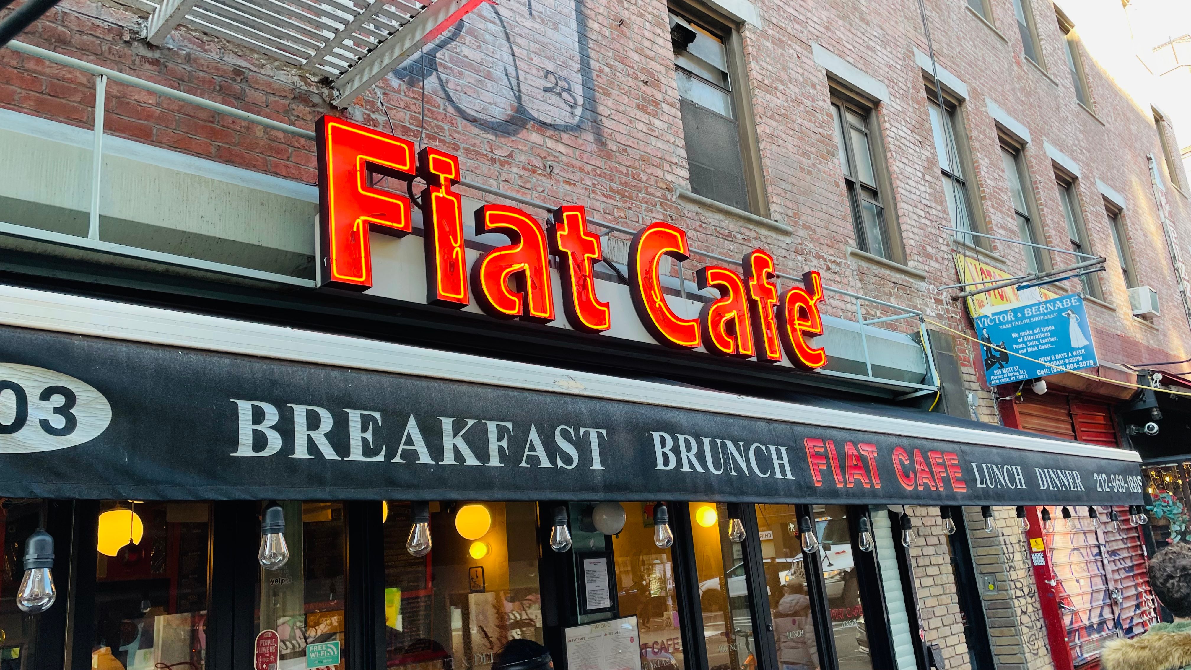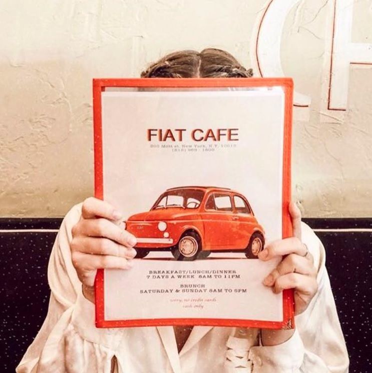 Fiat cafe is not only a cozy cafe in the heart of Nolita but also a warm and welcoming restaurant that will transport you right to Italy. The inside contains a colorful surrounding as fiat 500 cars of variant types are fixed on the wall emphasizing its simple but original theme. We serve breakfast, weekend brunch, lunch, and dinner. We have outdoor seating with heaters.