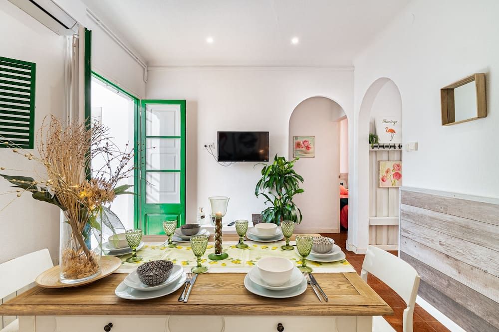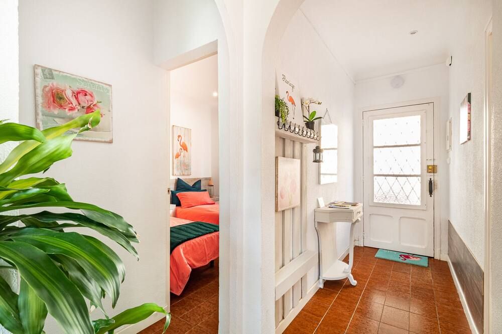 Live like a local in this smart Barcelona apartment, located in the vibrant Eixample district. You'll love getting comfortable in the bright living room, perhaps opening a bottle of Spanish red wine, and planning your stay in the city. When you get hungry, you can whip up your favourite meal in the kitchen, before gathering around the chic glass table to enjoy your culinary creations – there are even a few flamingoes on the wall for company. However, we think the best part of this contemporary home has to be the balcony, a fantastic spot for people-watching and chilling out at all times of day. The surrounding area is famous for its modernist architecture, and you'll love wandering through the streets, dipping into local boutiques and cafés as you go. The breathtaking Parc Joan Miró is just a ten-minute walk away, where you'll find plenty of open space, while the Plaça d'Espanya is just a little further. And, with the nearest metro station just one block away, it's very straightforward to get around the city from here, should you want to travel further afield.