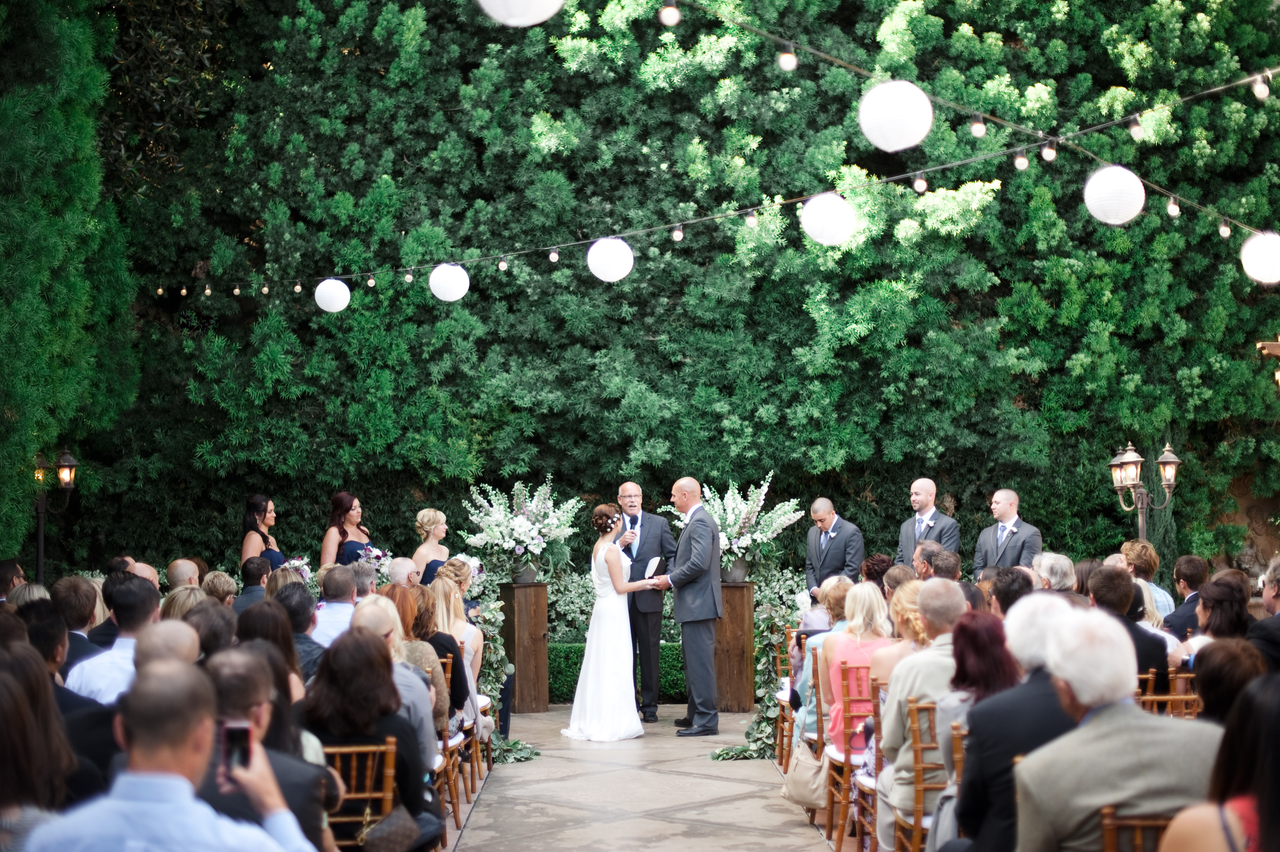 California is known for it’s cool waves, year-round summer sun, palm trees and Hollywood glitz. But the underlying cool of it’s beach cities are those steeped in Spanish history. Disembarking from the train and meandering softly through historic downtown San Juan Capistrano brings us to one of the city’s oldest buildings, The Provincial. Spanish terra cotta architecture and majestic, reclaimed wood castle-like doors open into a stunning, outdoor rose garden and the air changes. It is alive with secrets and pungent with varietals. Living, lush 18ft garden walls not only ensure complete and utter privacy and shade from the California sun, but lend an air of mystery and magic. At night, the venue comes alive with strings of white lights which in photos, seem to resemble fireflies.