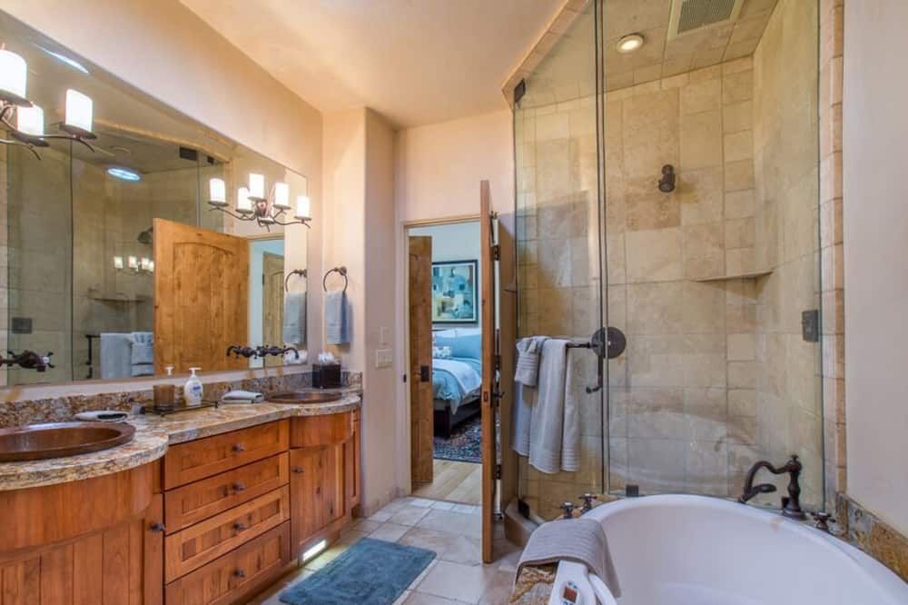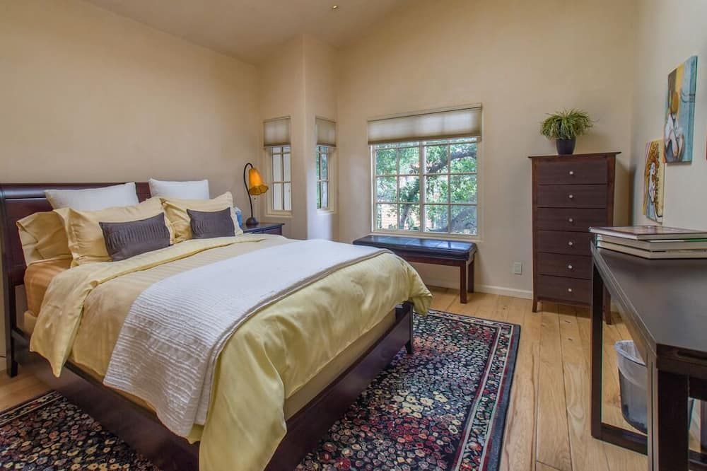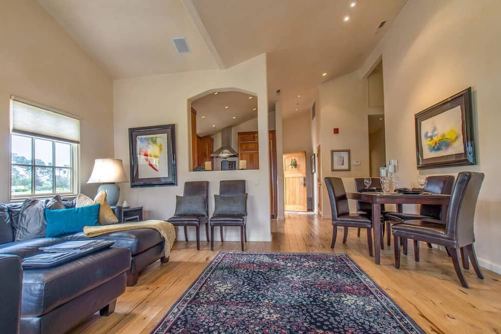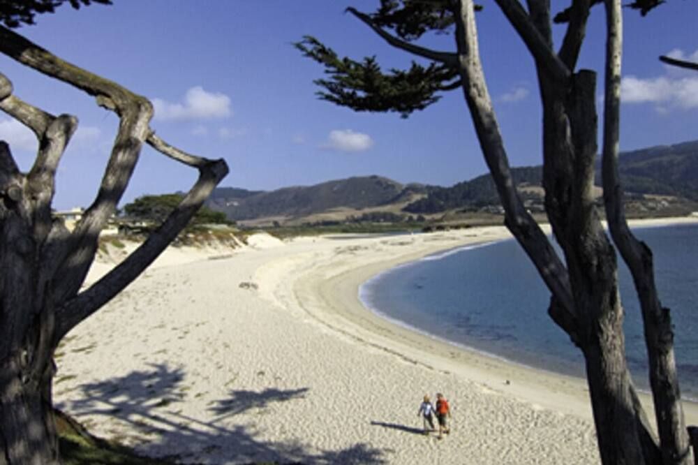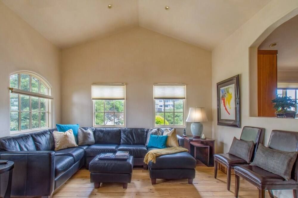 A twenty-minute walk inland from Carmel Beach, this rustic cottage feels surprisingly more like a woodland retreat than a seaside sanctuary. As you stroll up to the quaint front door, flanked by ferns and rhododendrons, stepping into the main living space is a delightful way to enter the home. Chunky wooden furnishings and plush, sand-coloured sofas are illuminated by a huge bay window in the day, and by a log-burning fireplace at night. As you dine under a deer-antler chandelier next to wooden beams, the home feels like a luxury version of a hunter’s cabin. We love the sliding doors leading out to the decked terrace in the middle of the home. This charming outdoor space continues the woodland theme with its warming firepit and traditional wooden loungers. We recommend getting some venison steak for the outside grill (from a nearby deli, not freshly hunted). Pair it with some fantastic local red wine – the host offers you complimentary tickets to a wine tasting downtown when you arrive, so you’ll already know about the best vintages. If you want to head into town, bustling Ocean Avenue is an easy thirteen-minute walk. Find cafés, restaurants, and plenty more wine tastings en route.